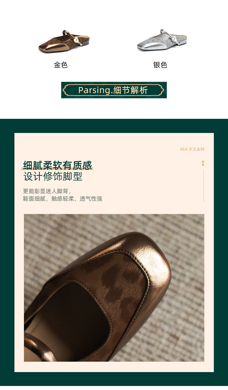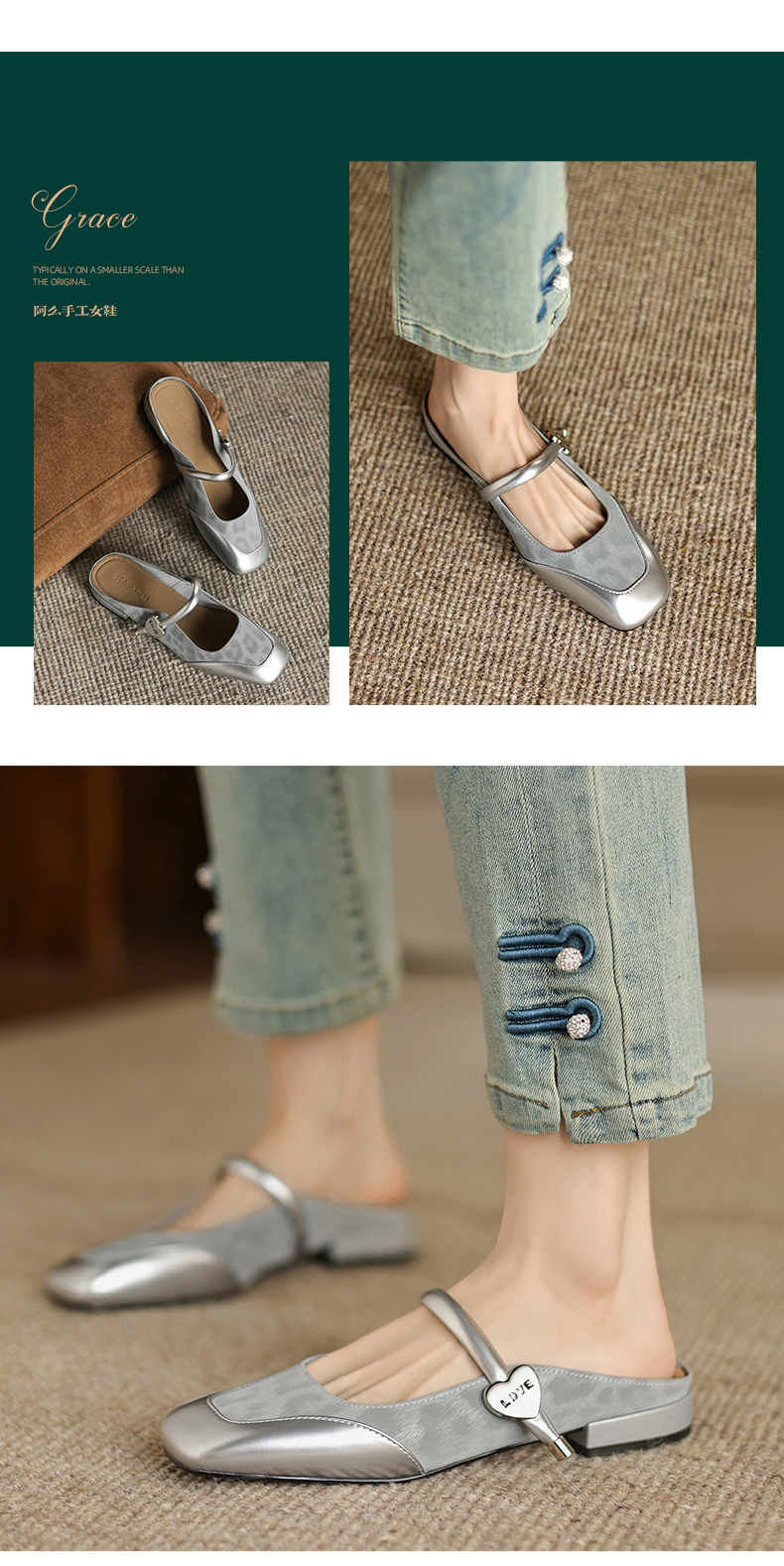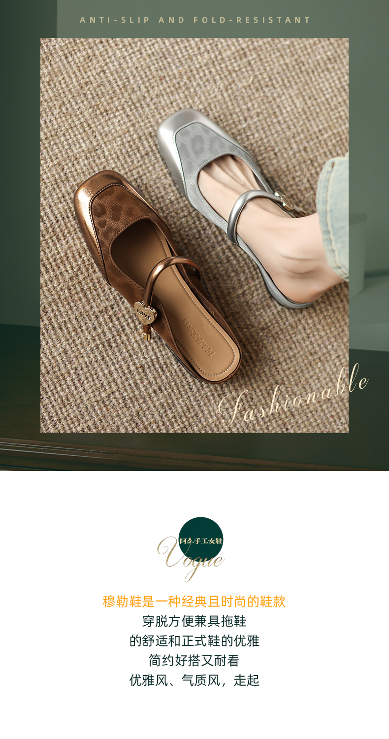 阿么手工女鞋羊皮包头半拖外穿2025新款百搭穆勒鞋夏季配裙子2CM