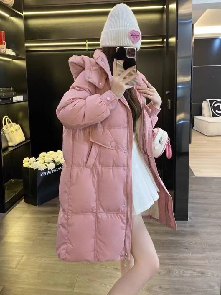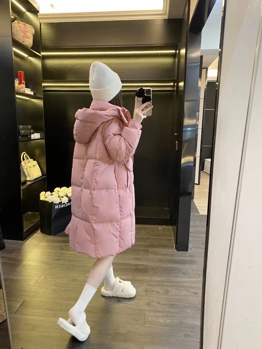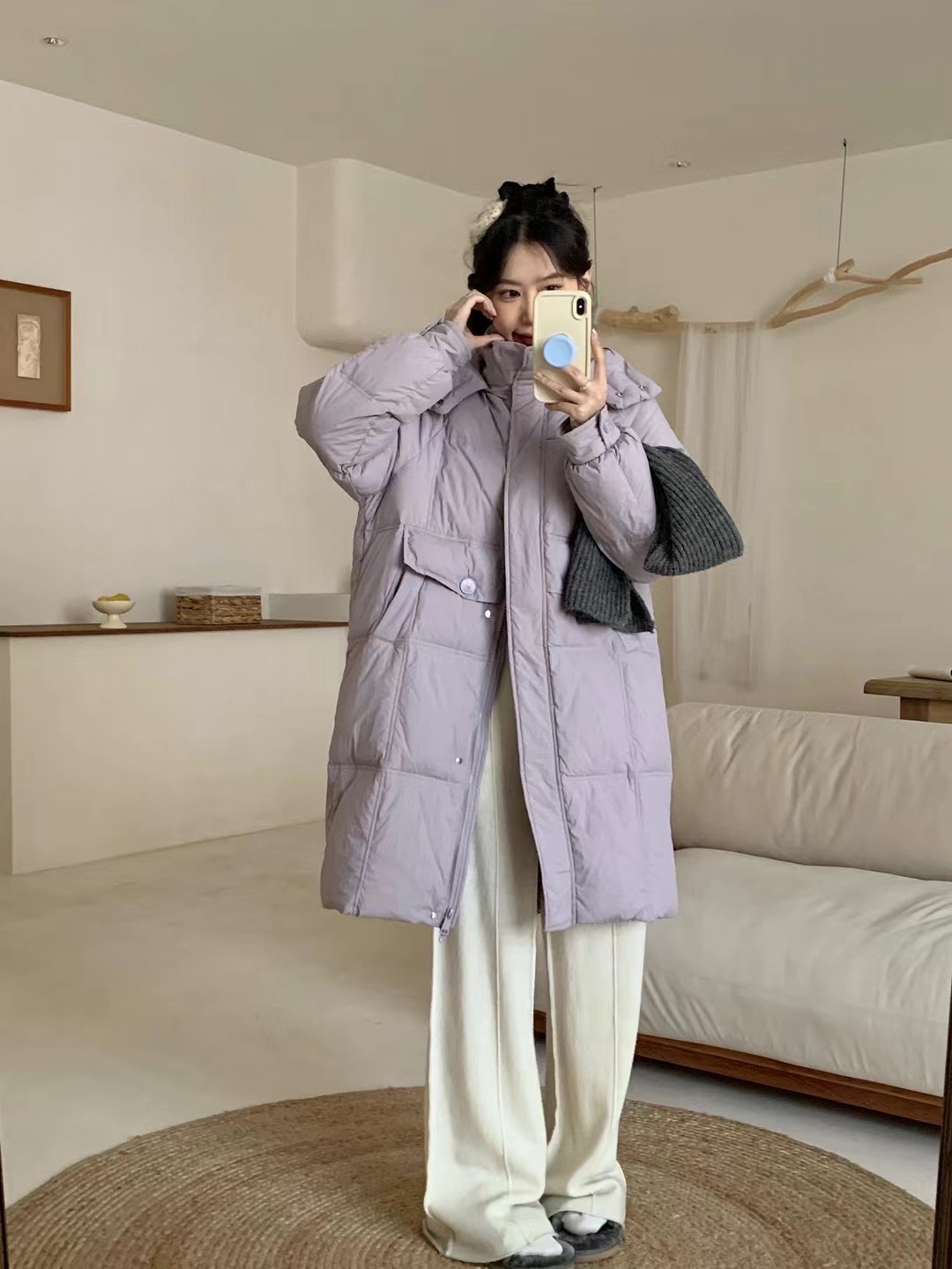 【YW】无忧购韩版宽松百搭连帽过膝长款大口袋羽绒服24023#