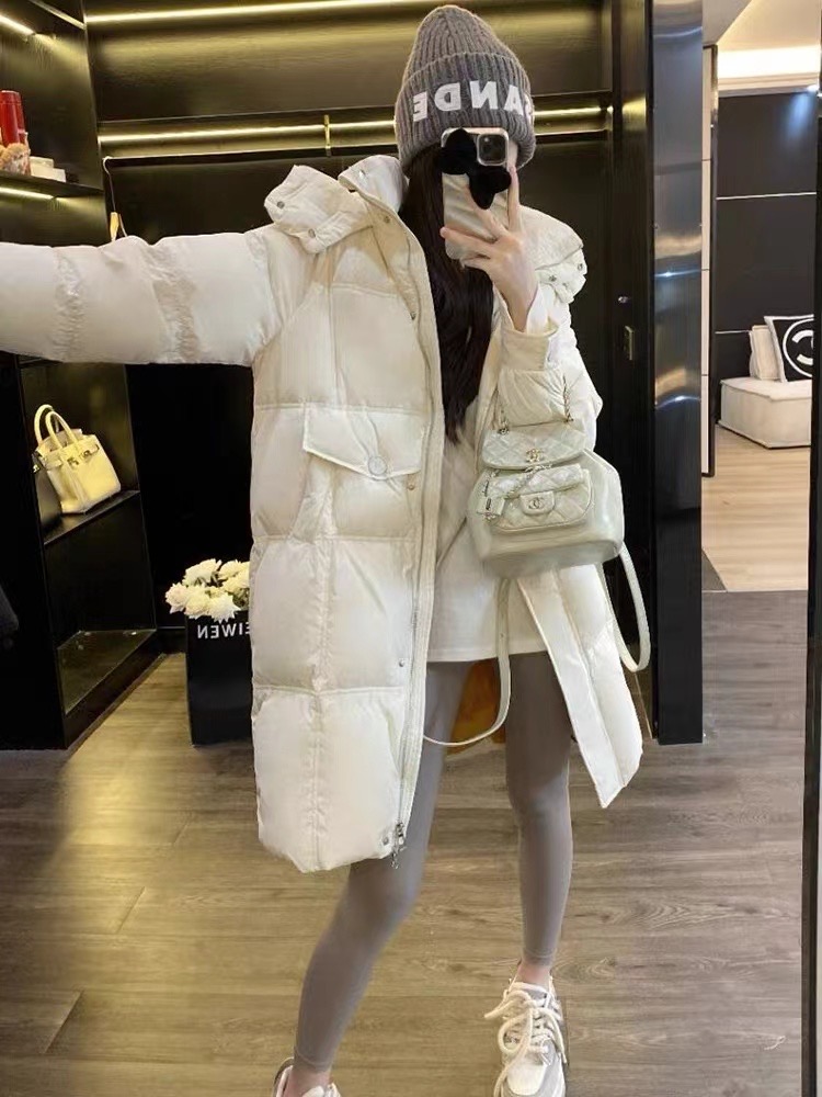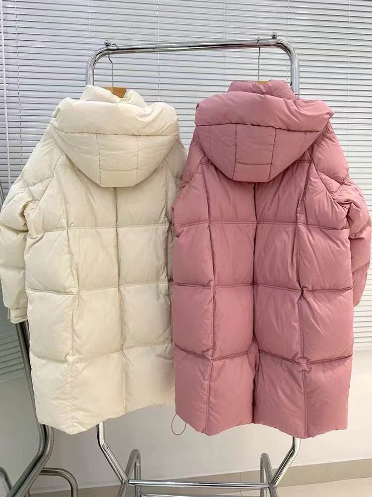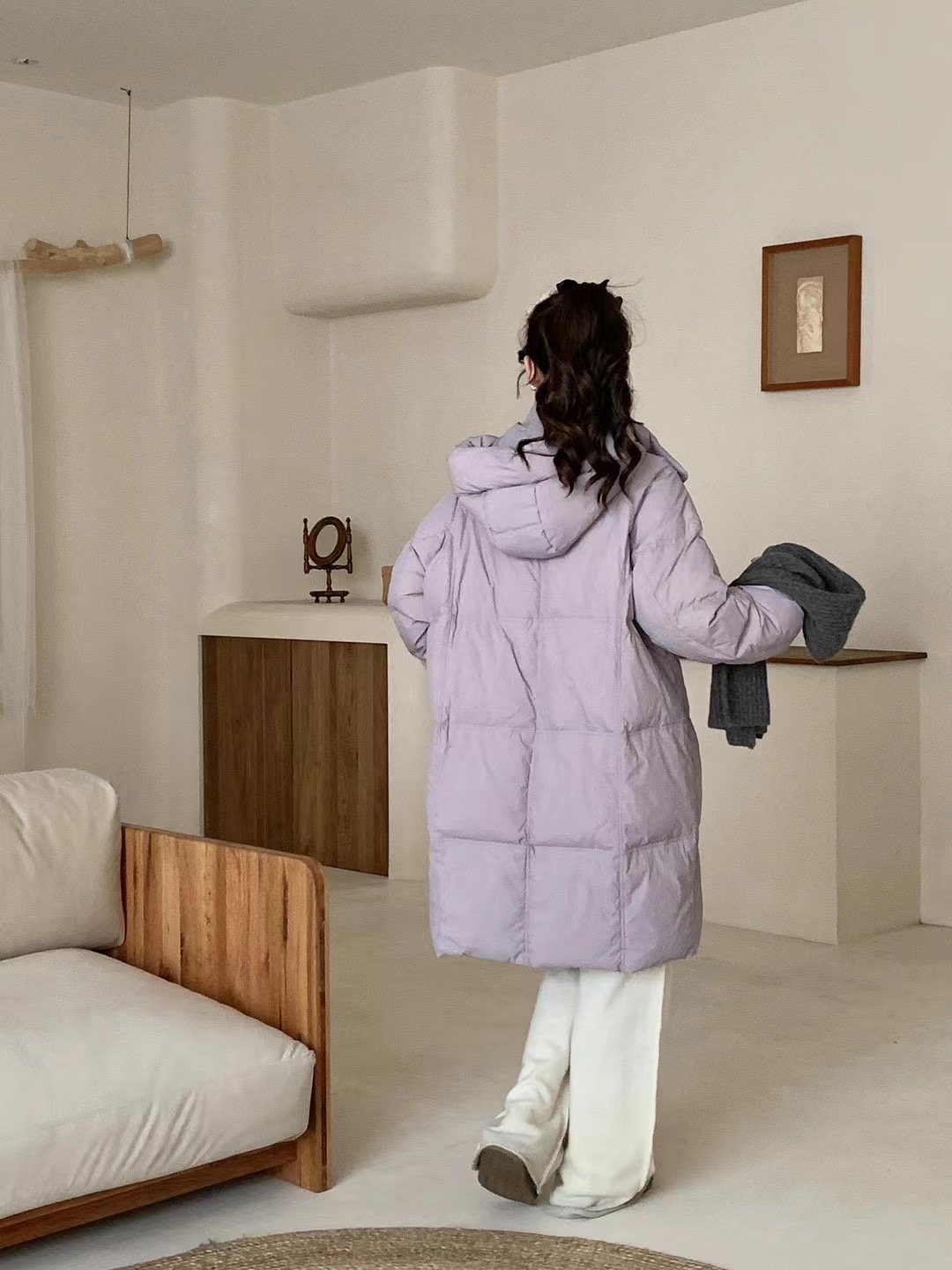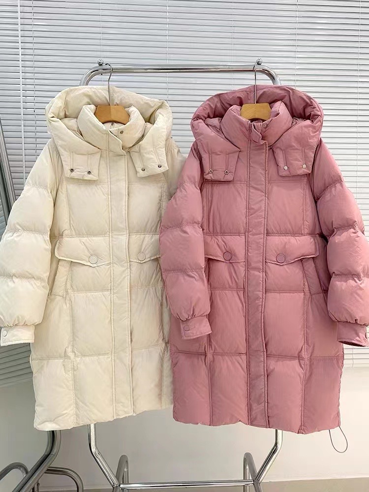 【YW】无忧购韩版宽松百搭连帽过膝长款大口袋羽绒服24023#