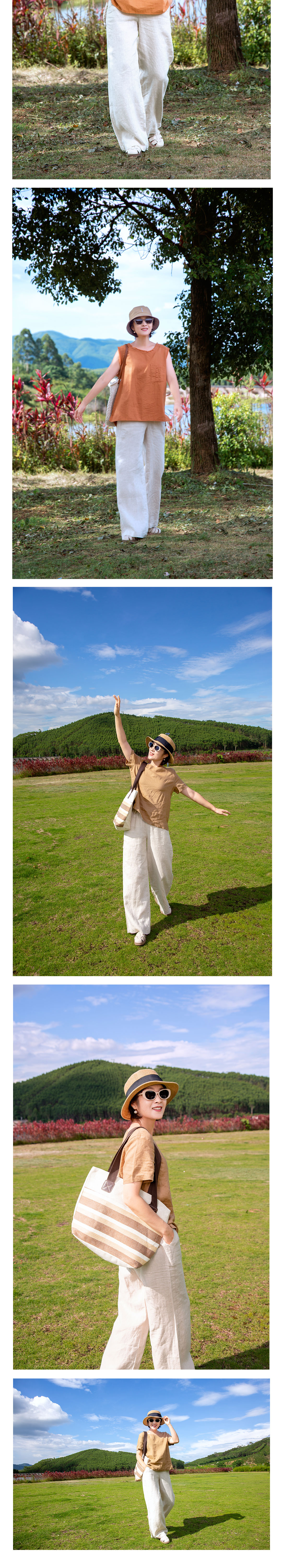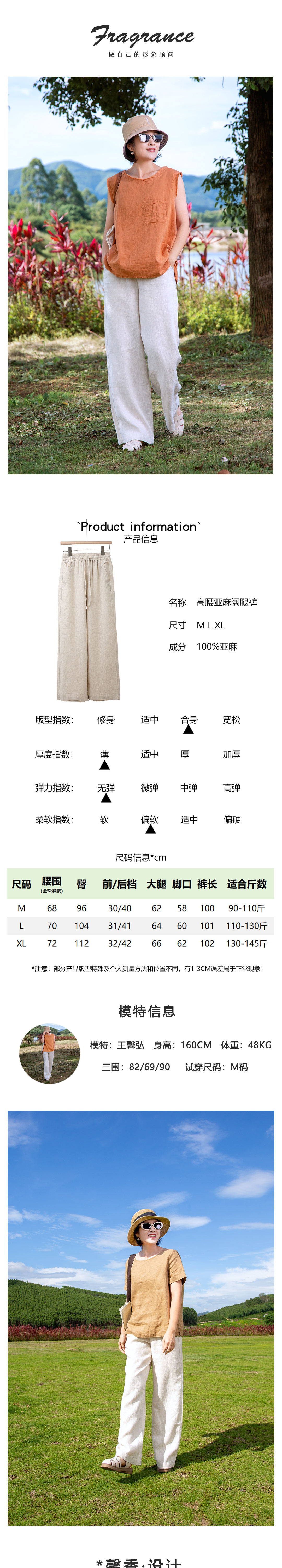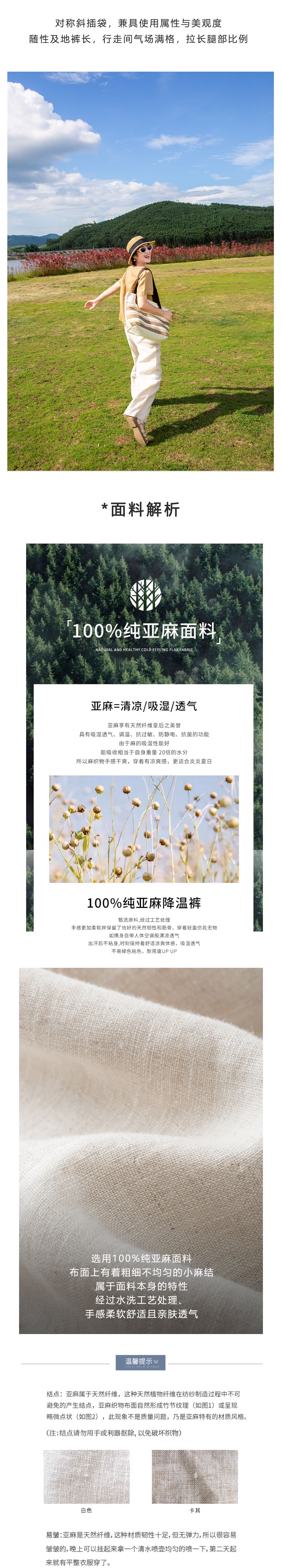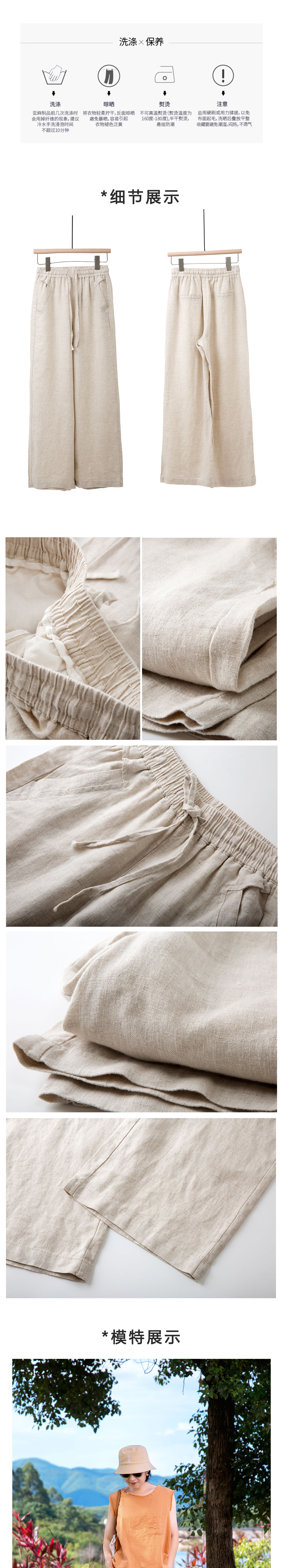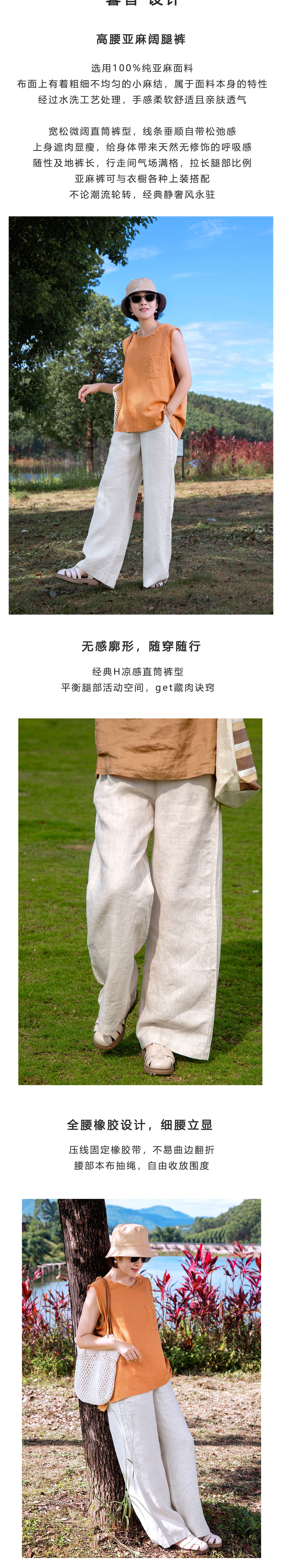 高腰亚麻阔腿裤