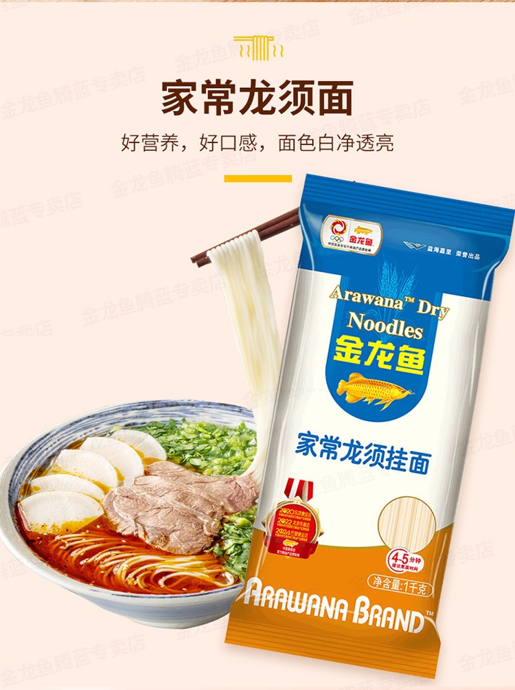 金龙鱼家常系列龙须挂面1000g*3袋 速食细龙须挂面细面条家用