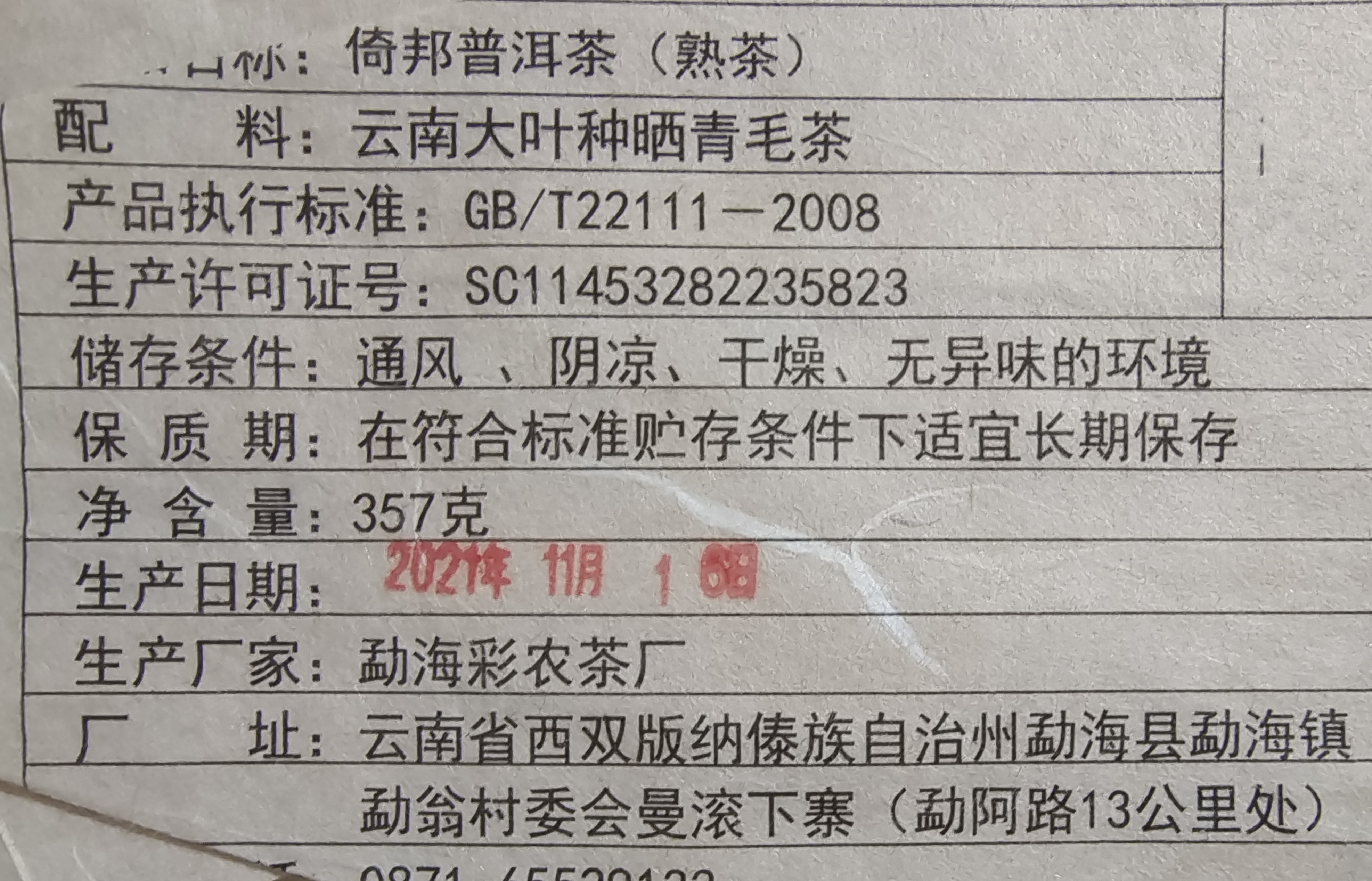 彩农茶|2021年倚邦古树纯料熟饼