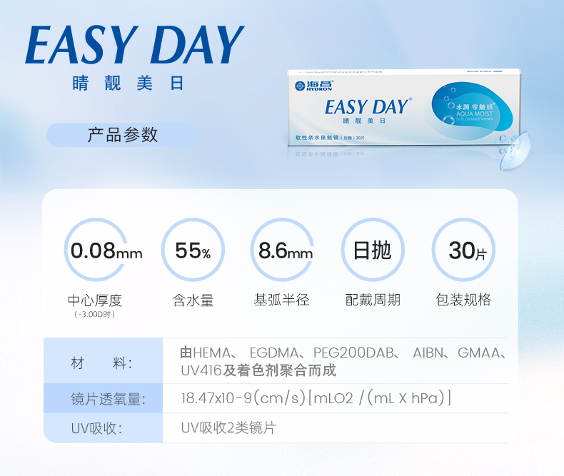 【疯狂星期四秒杀】海昌蓝BUFF系列隐形眼镜半年抛2片装