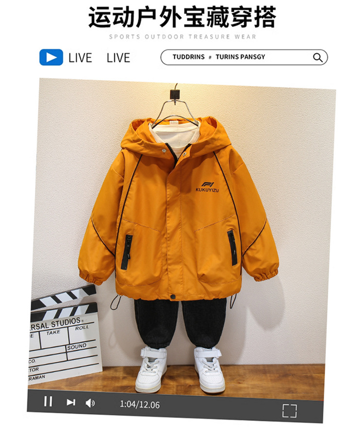 男童新款外套儿童风衣男孩秋款童装户外冲锋衣连帽上衣夹克