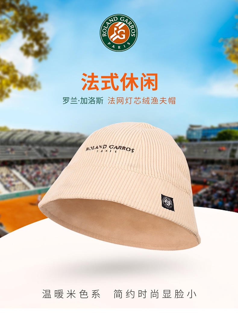 罗兰加洛斯Roland Garros法网灯芯绒渔夫帽女宽檐显脸小遮阳帽