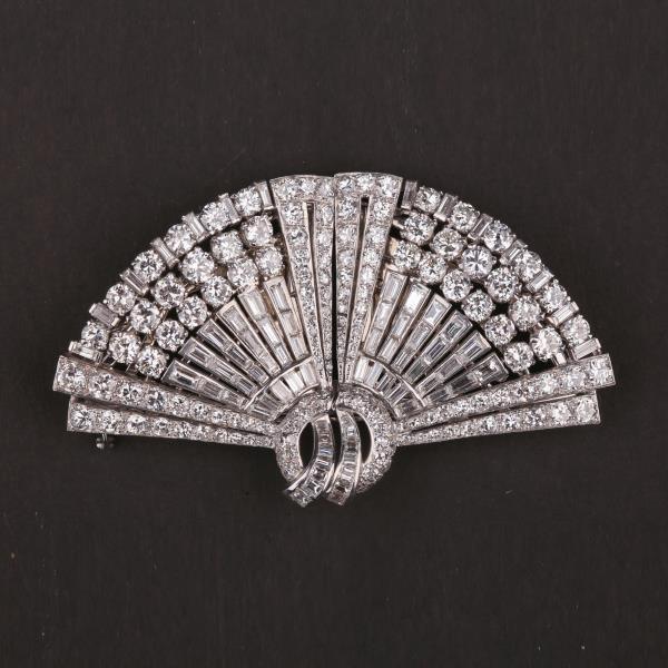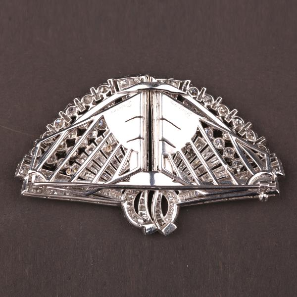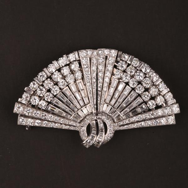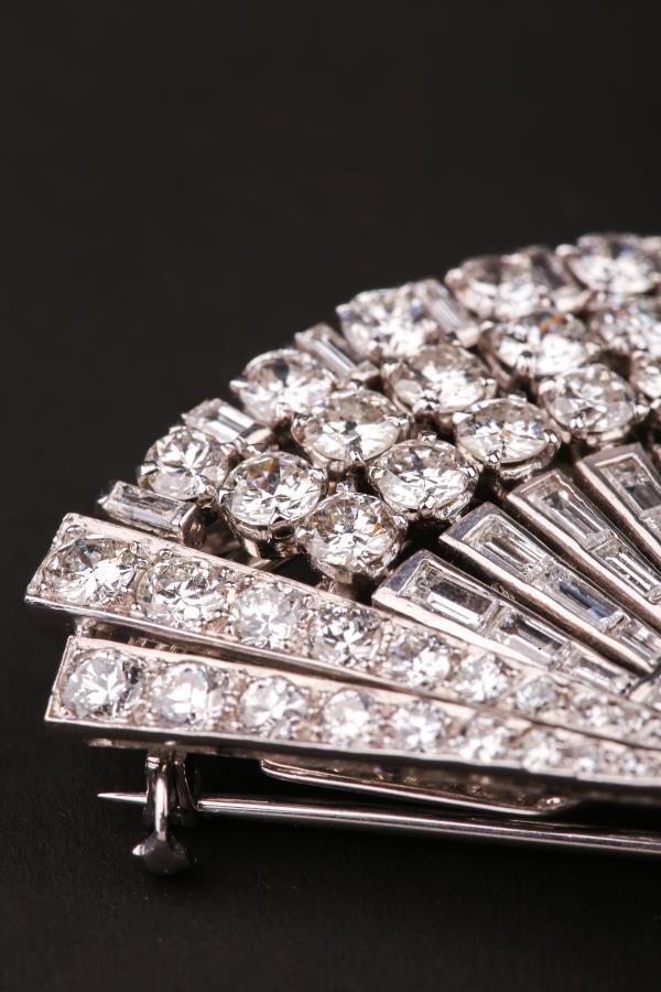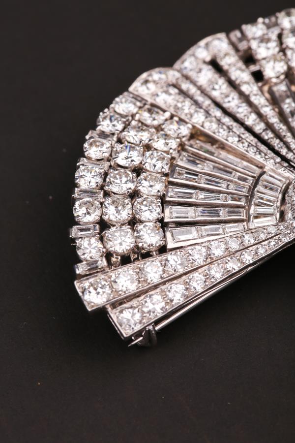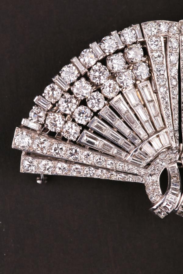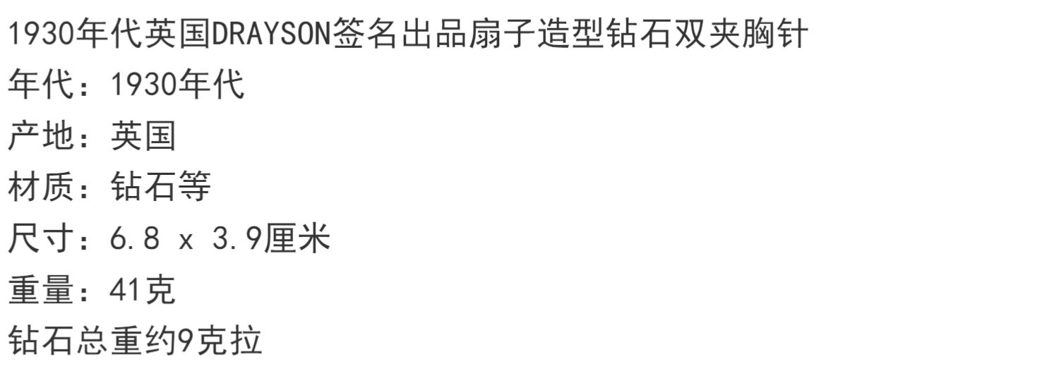 独角鹿西洋古董珠宝首饰英国DRAYSON扇子造型钻石双夹胸针