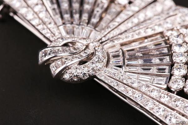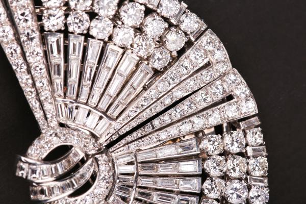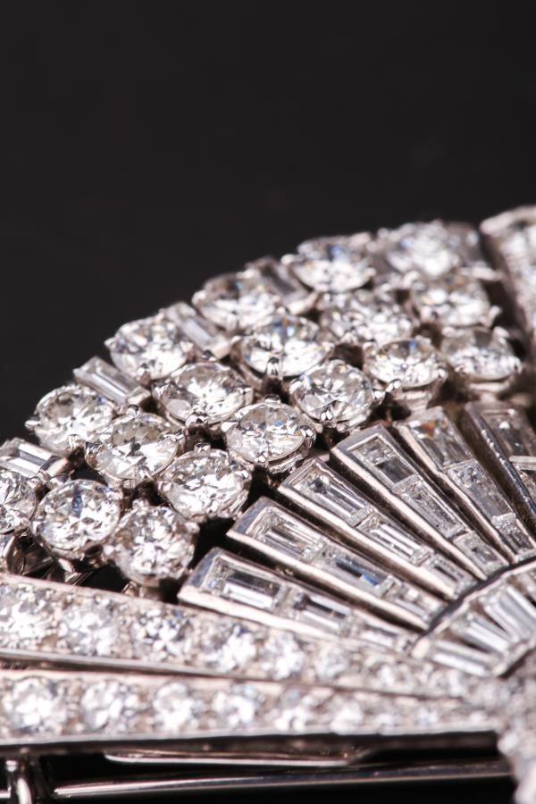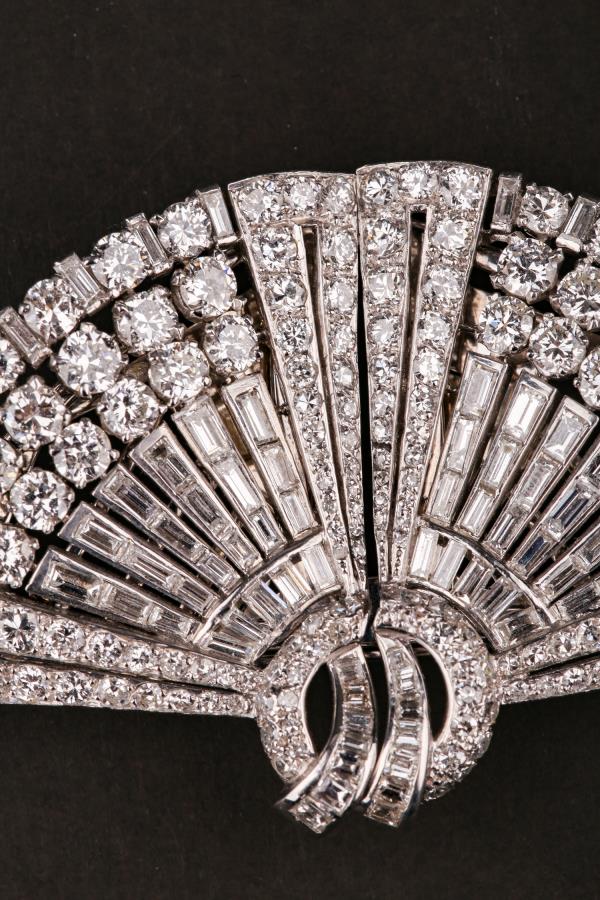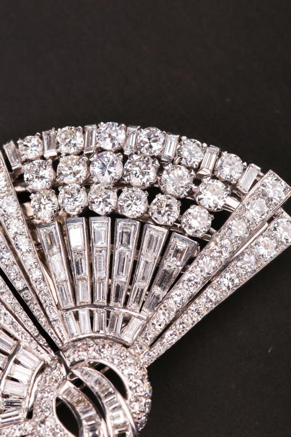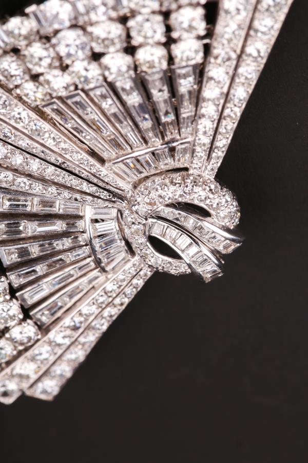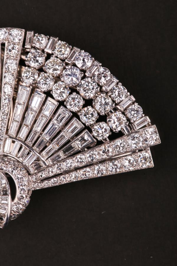 独角鹿西洋古董珠宝首饰英国DRAYSON扇子造型钻石双夹胸针