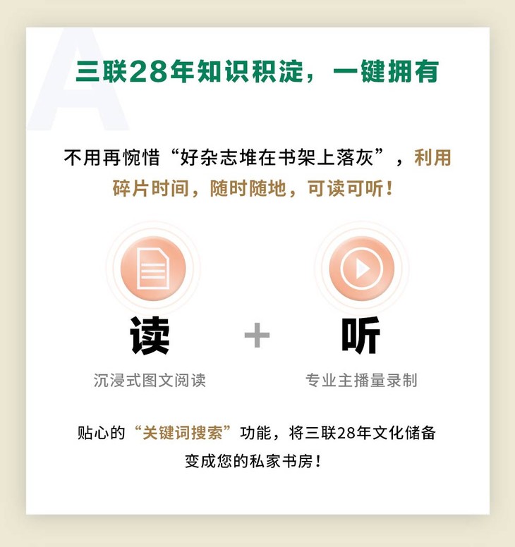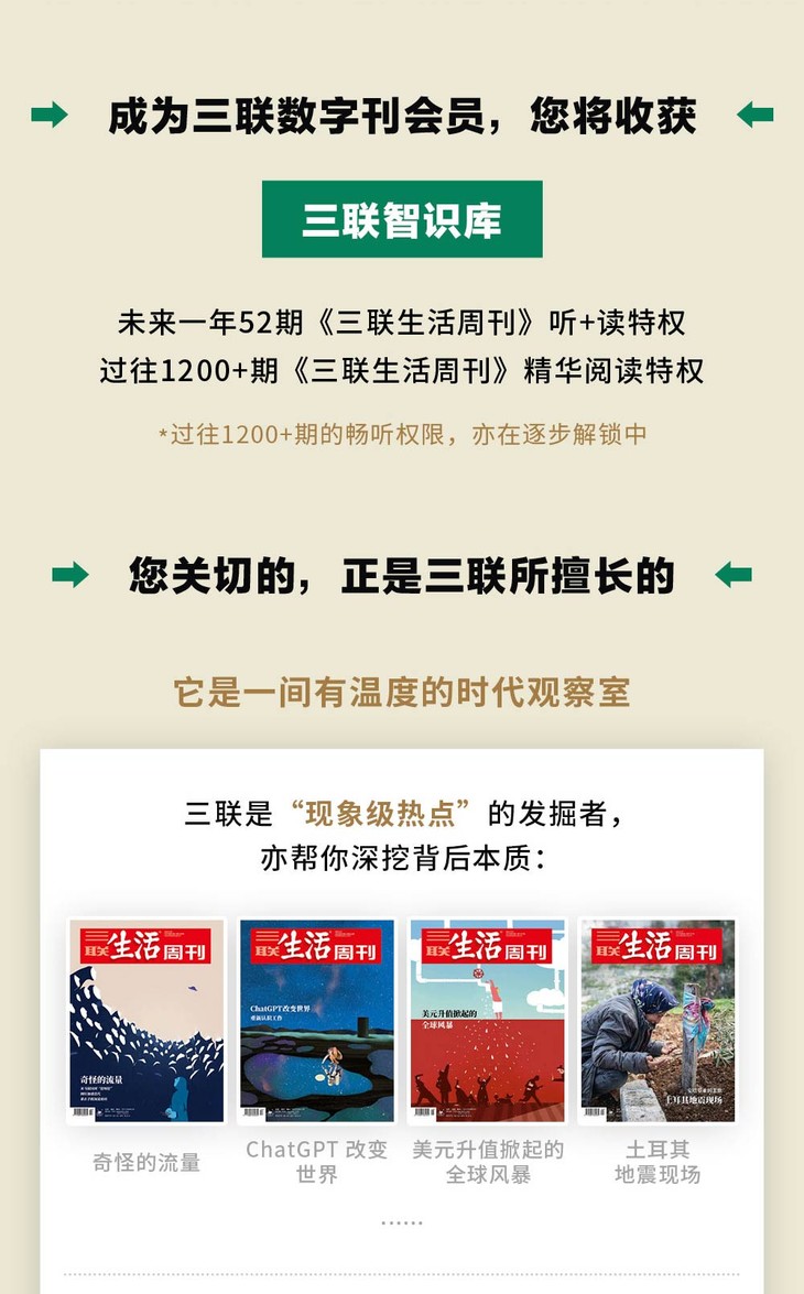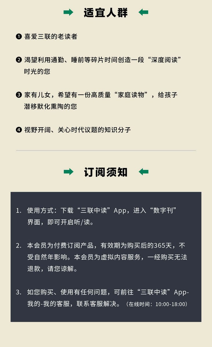 三联数字刊为虚拟知识服务类商品,并非实物商品。成功支付后请前往"三联中读"App用购买时填写的手机号登录使用。
