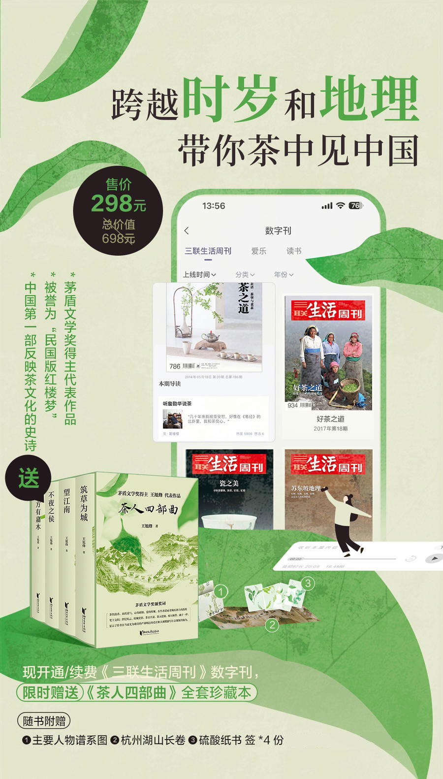 1.茶人四部曲(四册)+杭州湖山长卷+书签4份将快递寄给您。