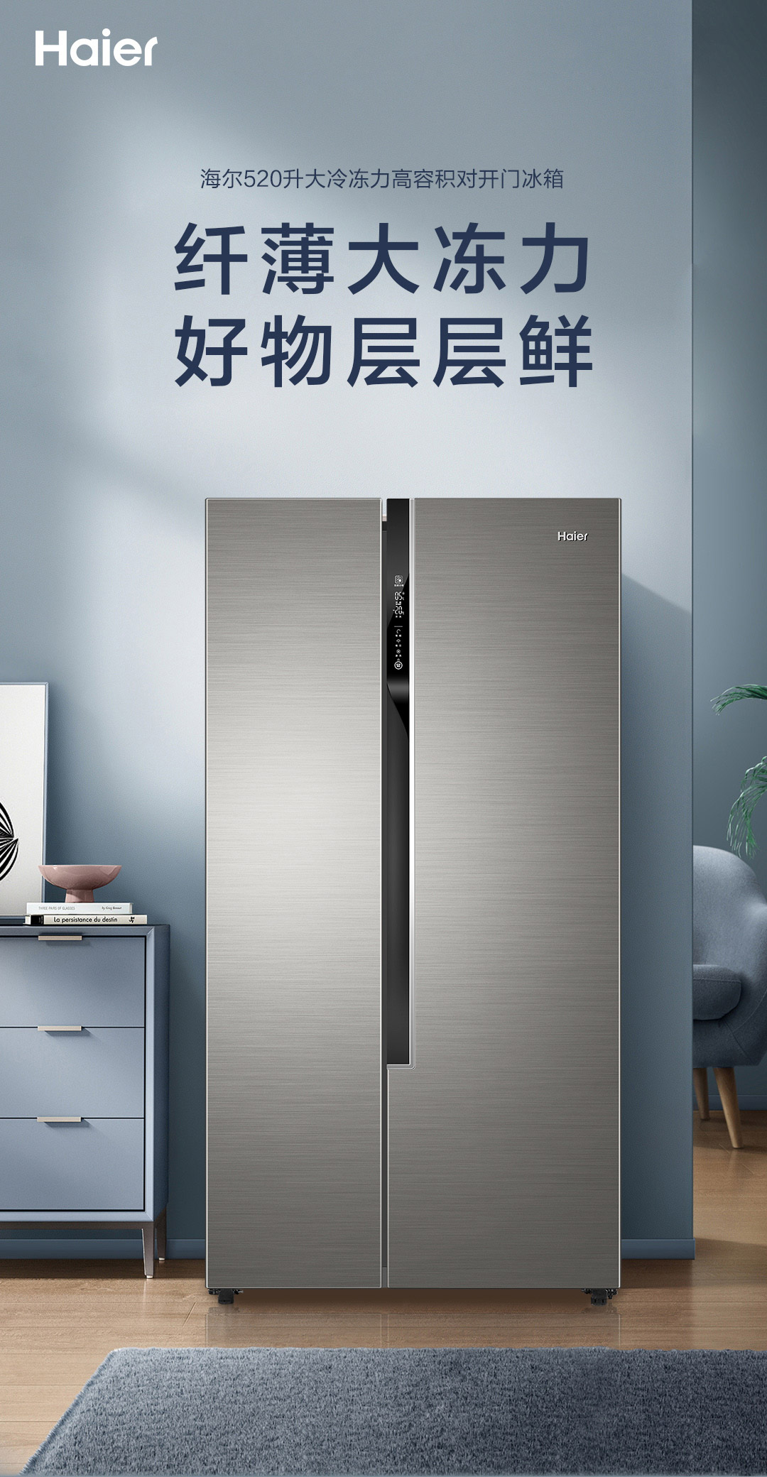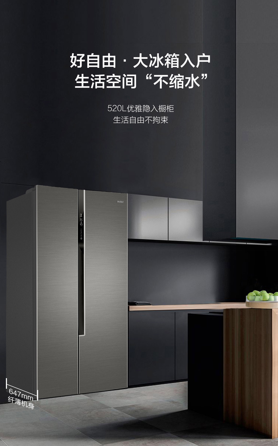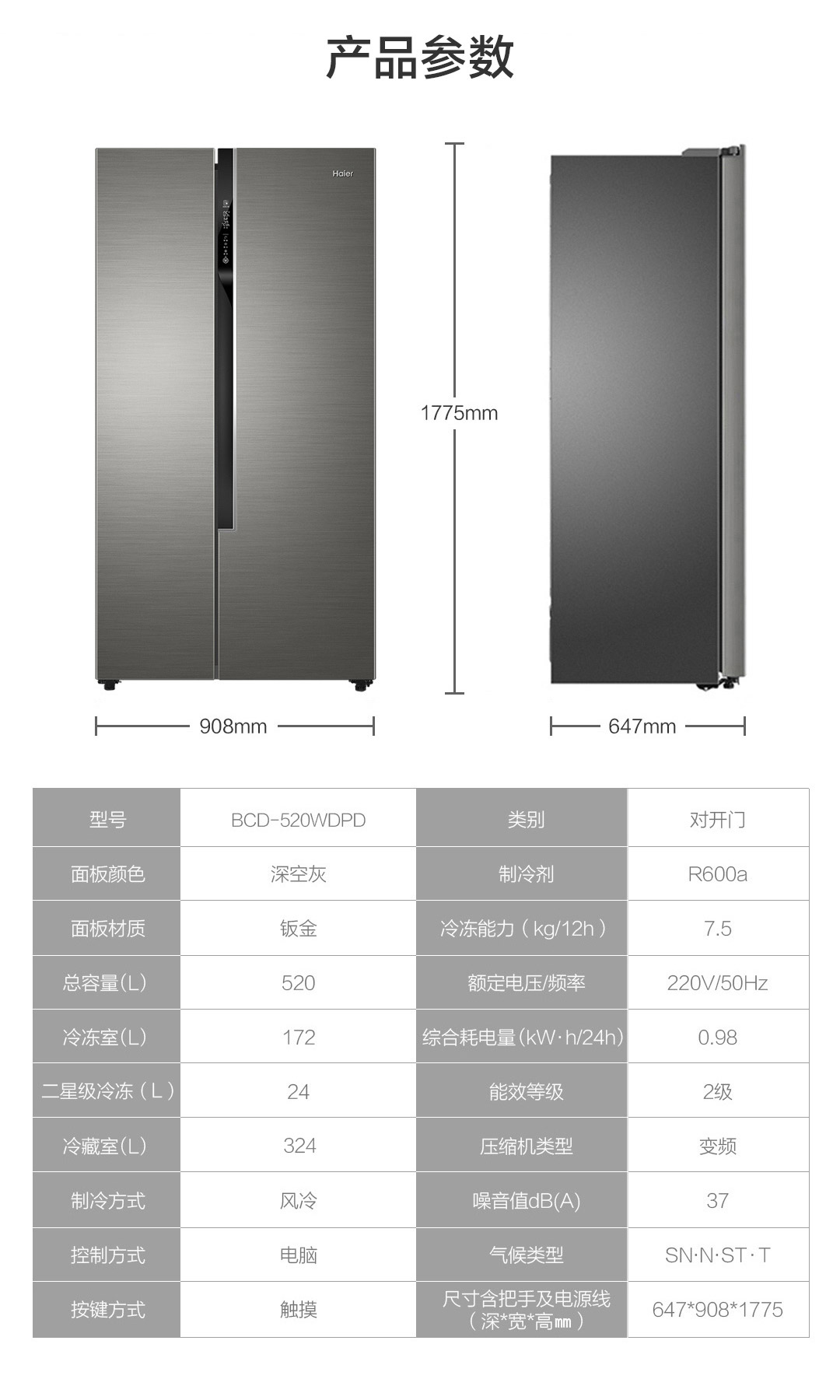 【下单前请先与客服联系】海尔(Haier)520升双变频风冷无霜对开门双开门冰箱多路送风90°自动悬停门纤薄机身BCD-520WDPD