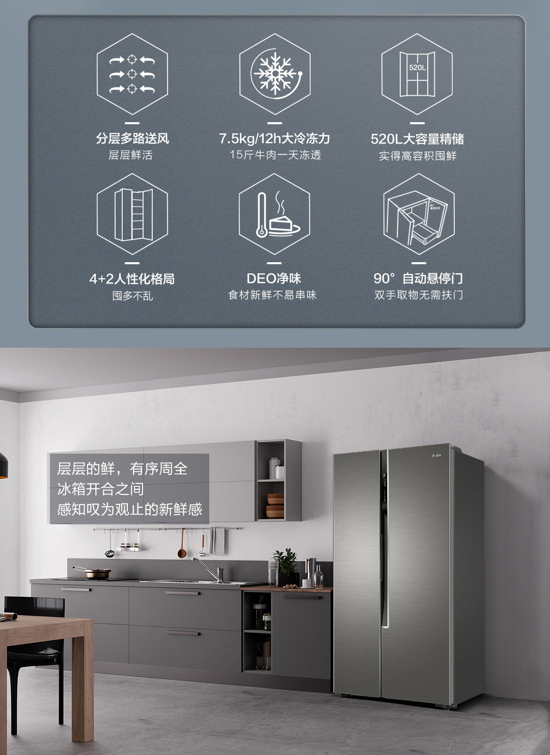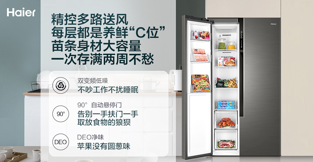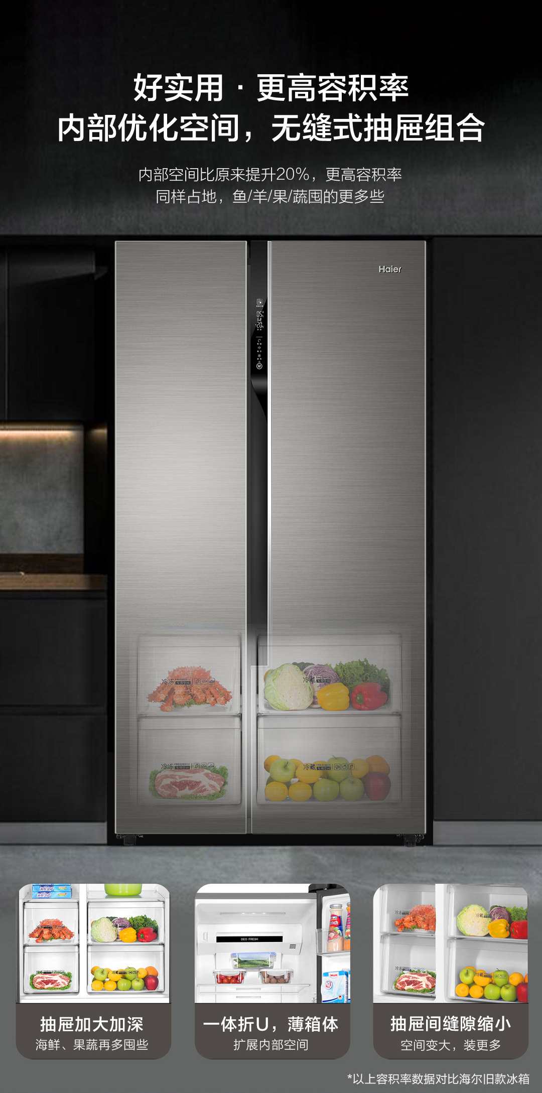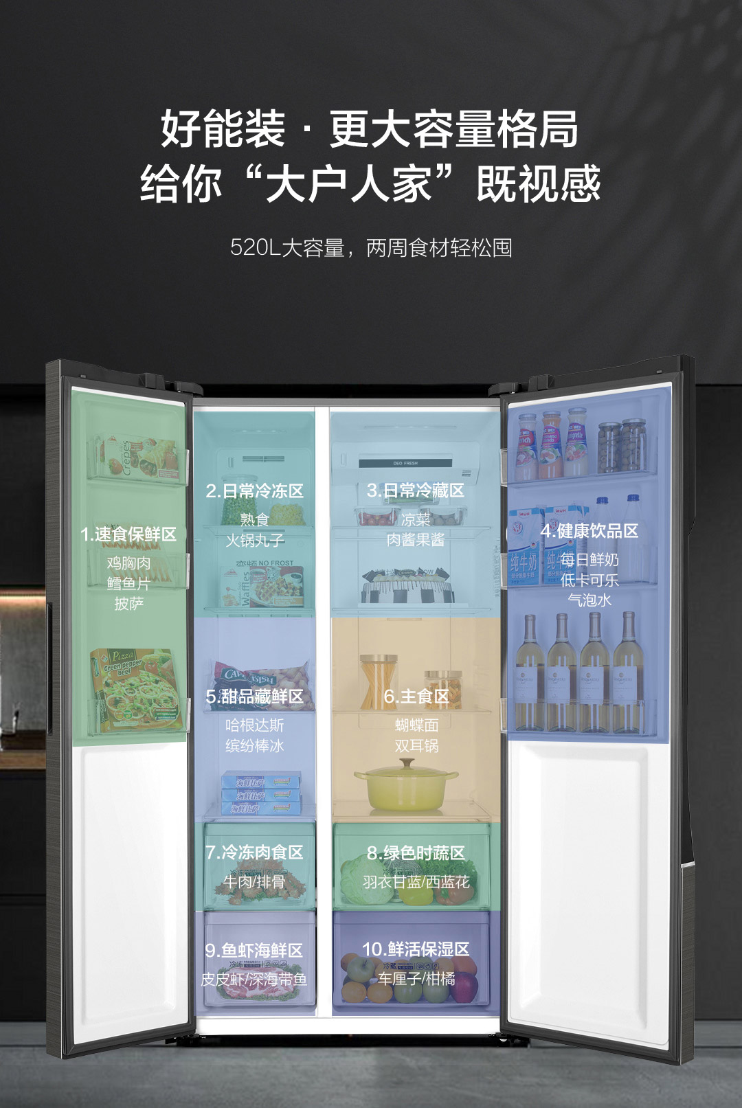 【下单前请先与客服联系】海尔(Haier)520升双变频风冷无霜对开门双开门冰箱多路送风90°自动悬停门纤薄机身BCD-520WDPD