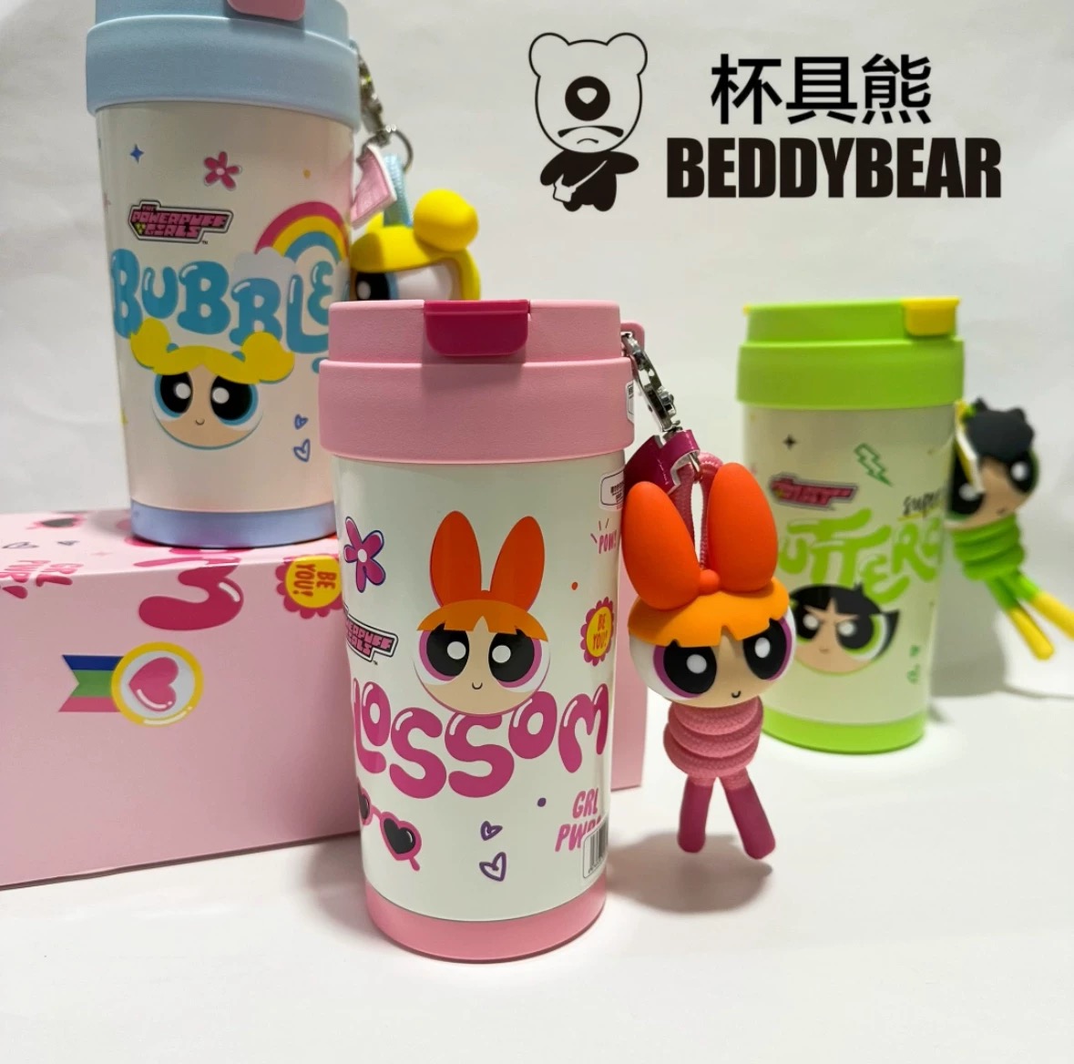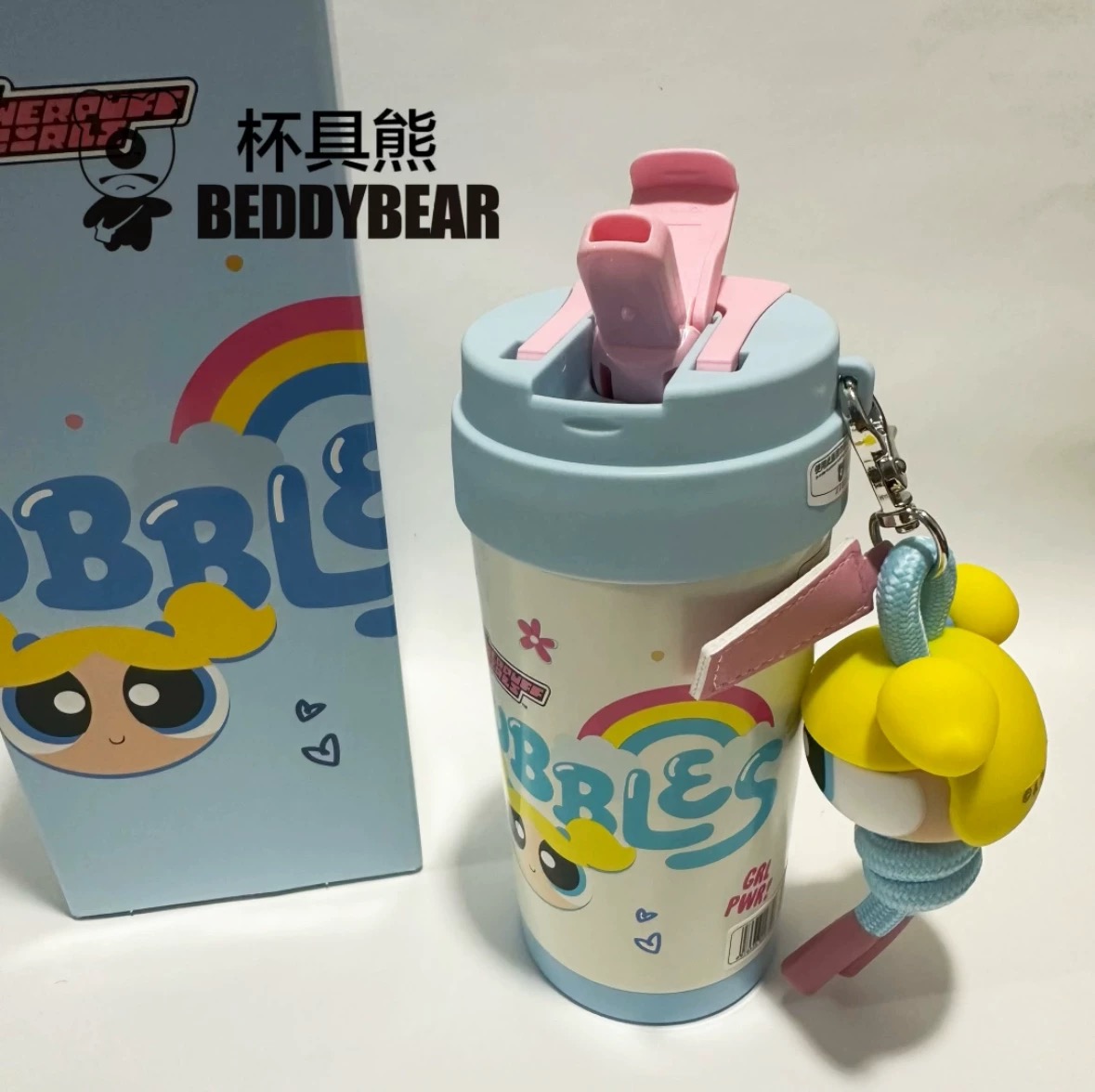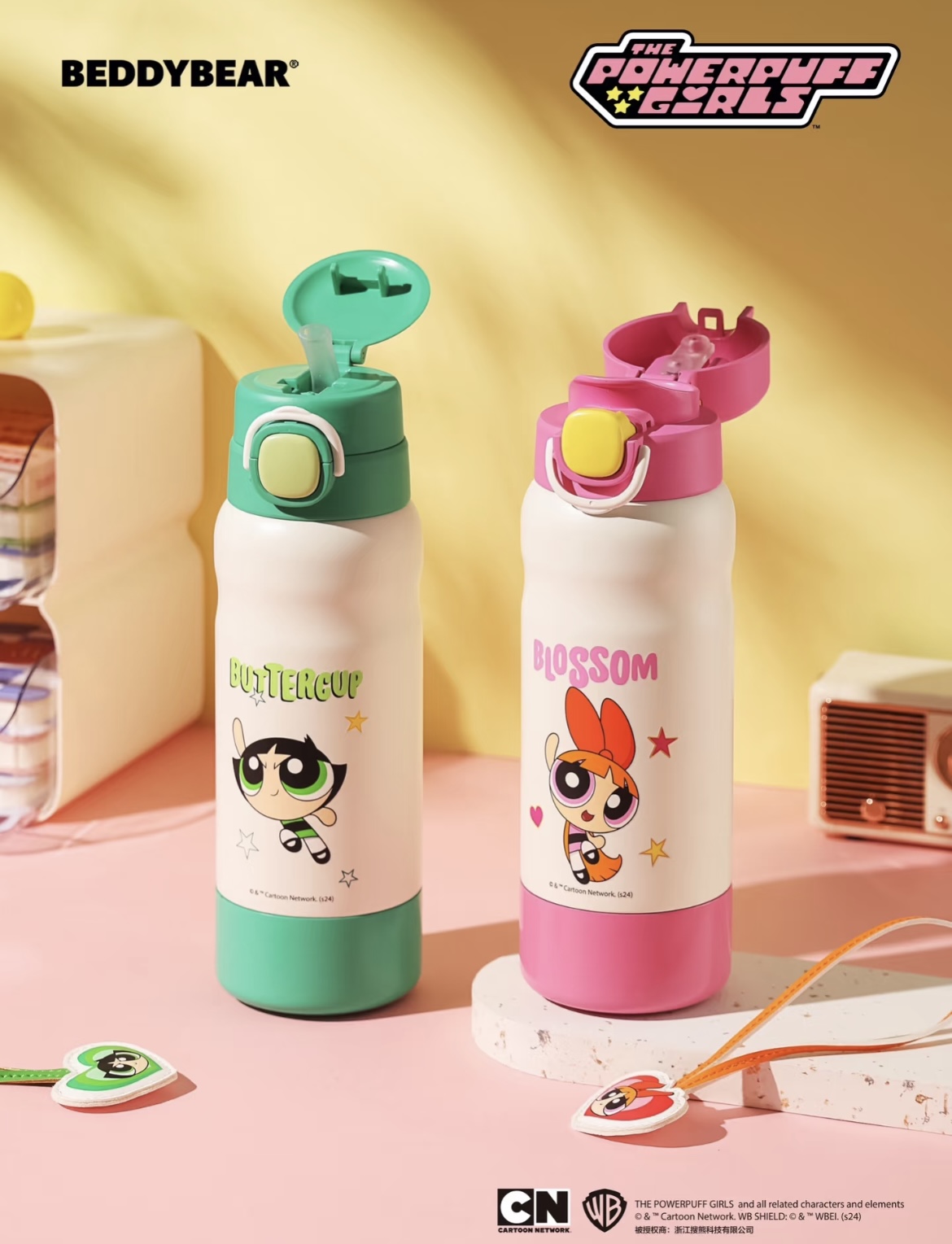 【品牌直发】【杯具熊飞天小女警系列】运动杯 保温杯 双饮杯 塑料杯 316不锈钢