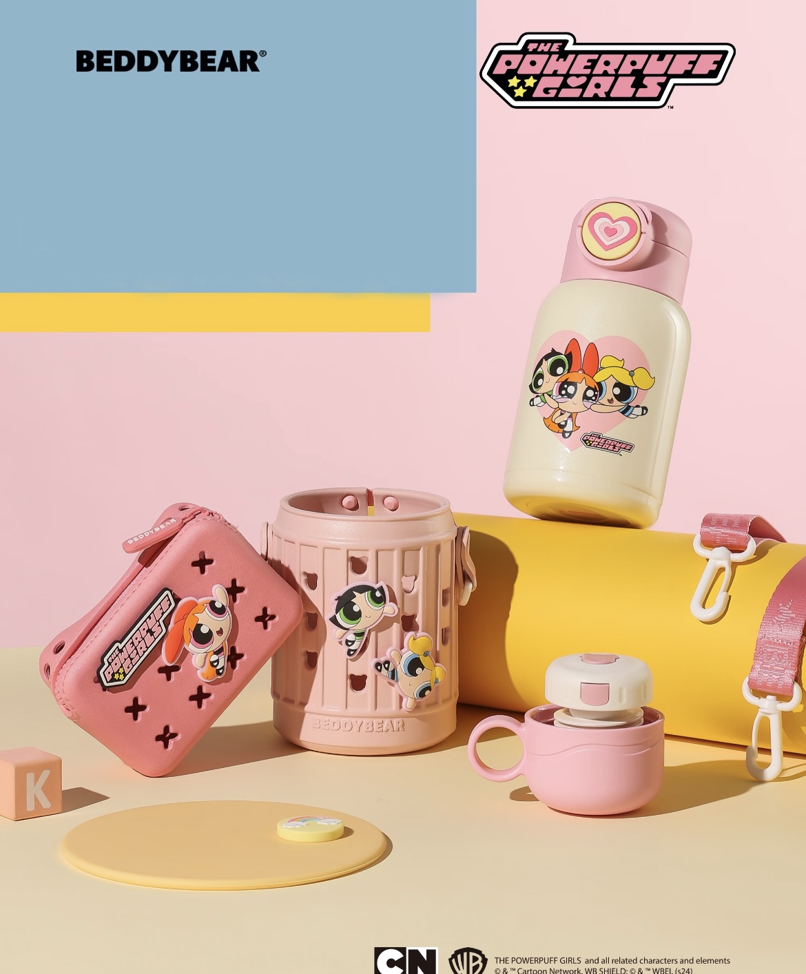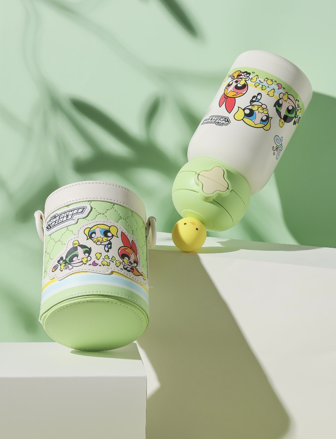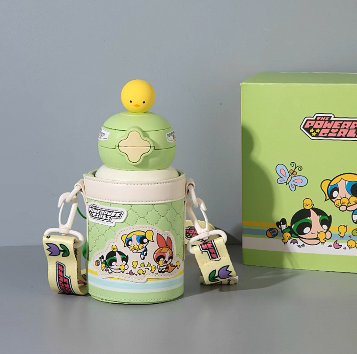 【品牌直发】【杯具熊飞天小女警系列】运动杯 保温杯 双饮杯 塑料杯 316不锈钢
