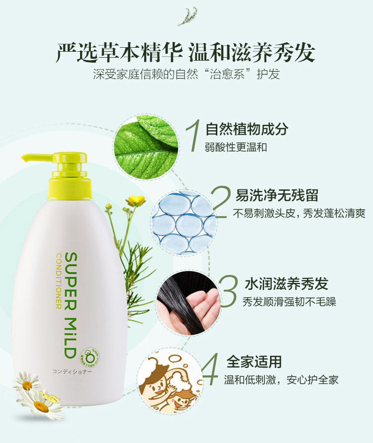 日本进口资生堂惠润(SUPER MiLD)柔净(绿野芳香)护发素600ml
