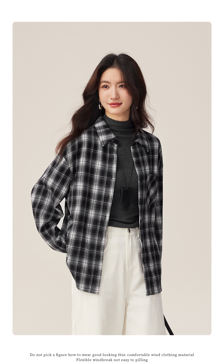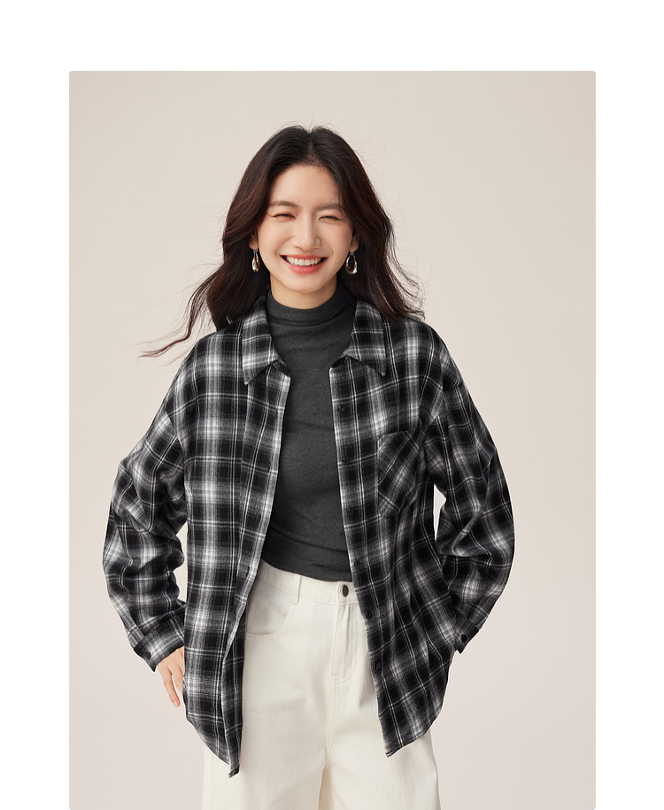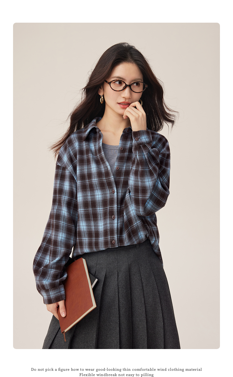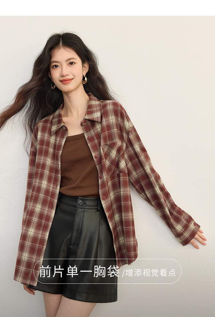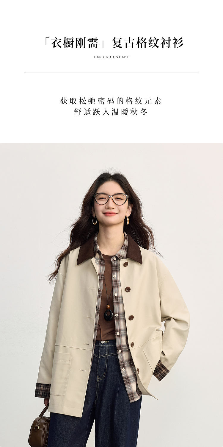 【09/03新品】熙世界旷野复古格纹衬衫女秋冬2025年新款休闲慵懒风宽松衬衣外套