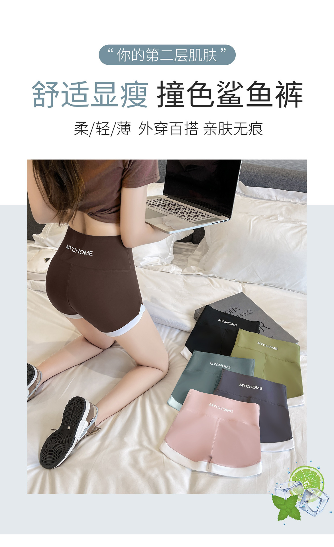 「19.9包邮!撞色设计款」三分鲨鱼裤 女无尴尬线提臀外穿薄款运动打底短裤拼接撞色安全裤女下装