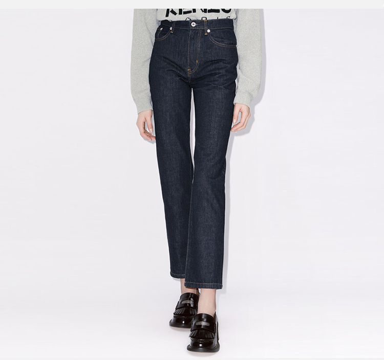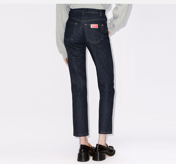 KENZO 高田贤三 女士棉质徽标贴花直筒休闲牛仔裤 蓝色 FD52 DP210 6B1 DM