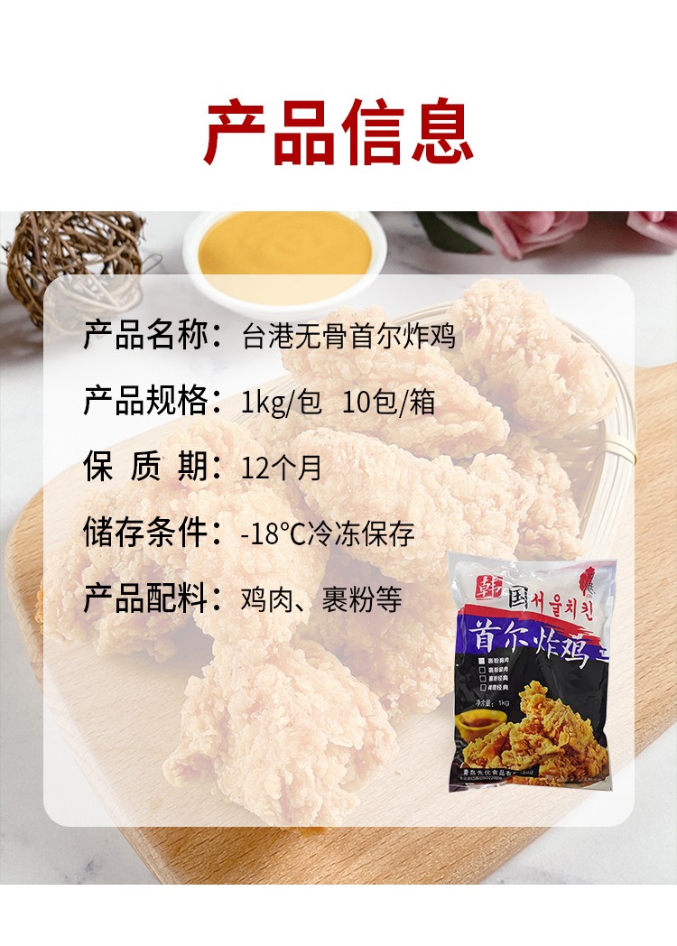 1kg 台港 韩国首尔炸鸡 裹粉胸肉 韩式无骨炸鸡半成品 冷冻保存