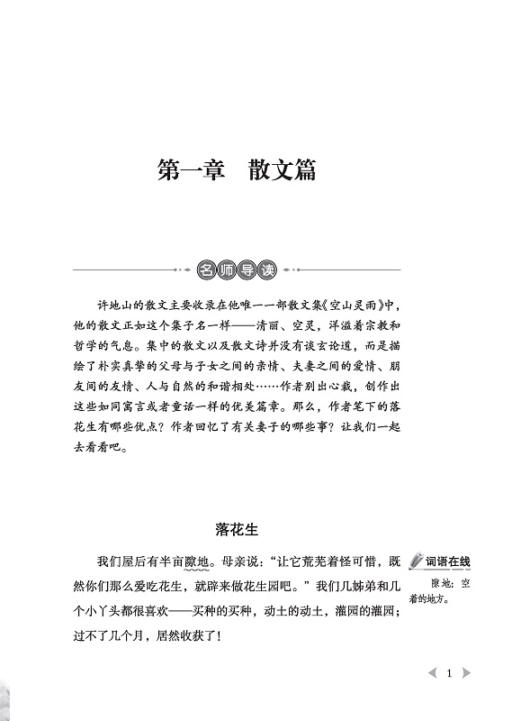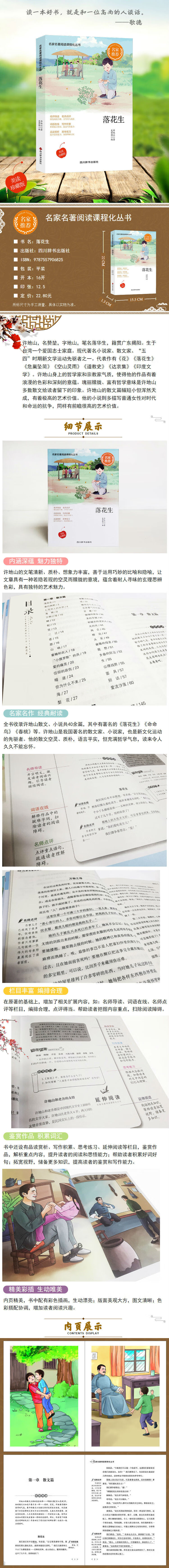 本书收录许地山散文、小说共40余篇,其中有著名的《落花生》《命命鸟》《春桃》《女儿心》等。许地山是我国著名的散文家、小说家,也是新文化运动的先驱者。他的散文空灵、质朴,语言平实,但充满哲学气息,读来令人久久不能忘怀。本书在原著的基础上,增加了相关扩展内容,方便小读者阅读。编排合理,点评得当。