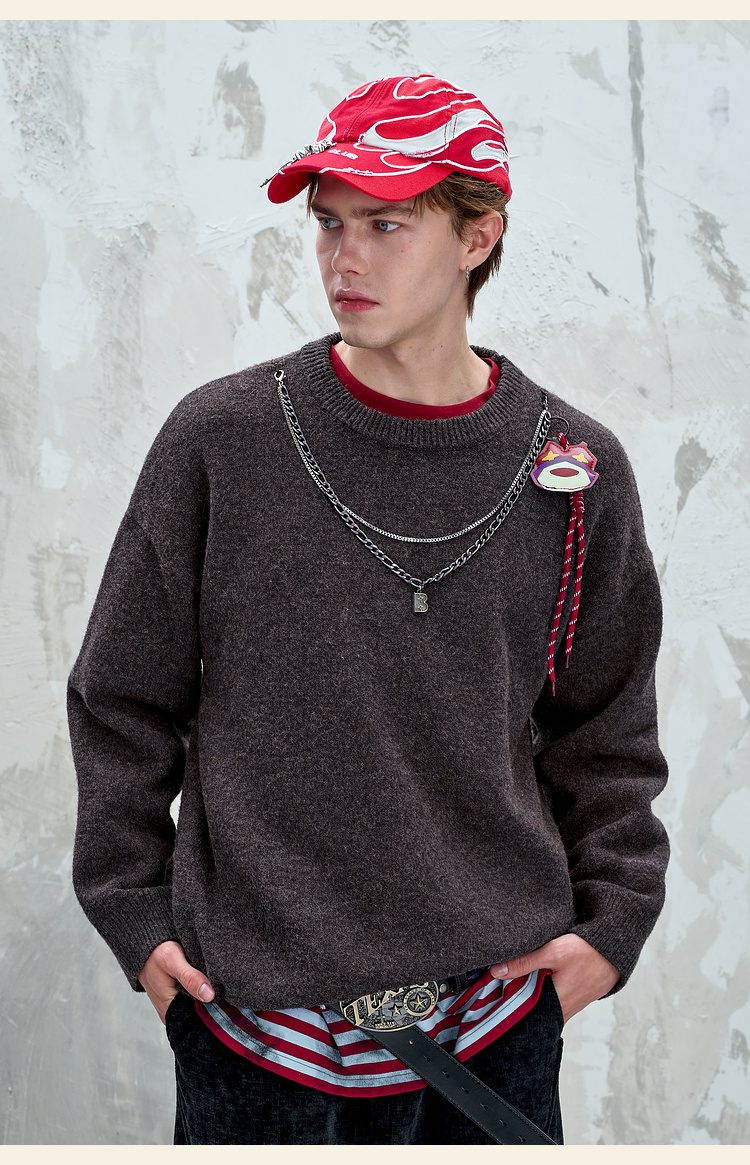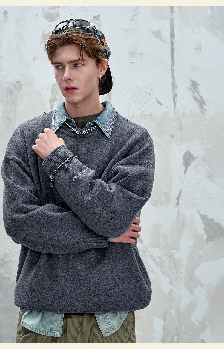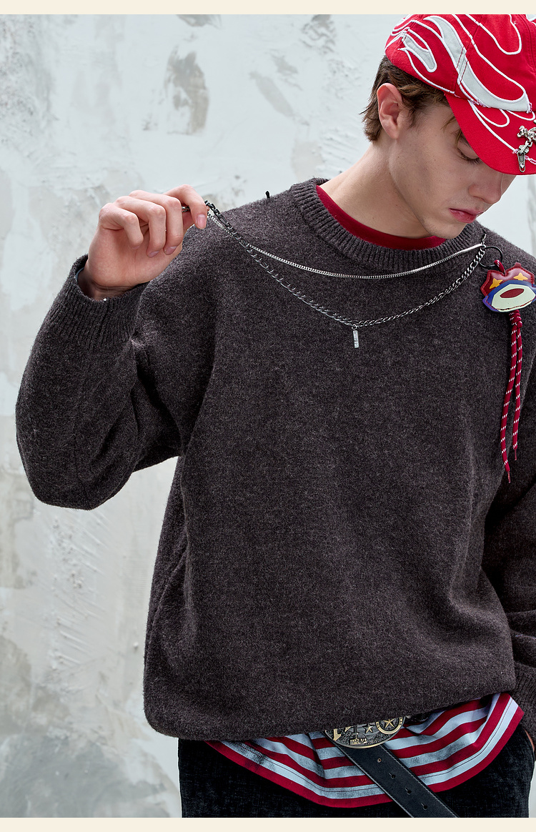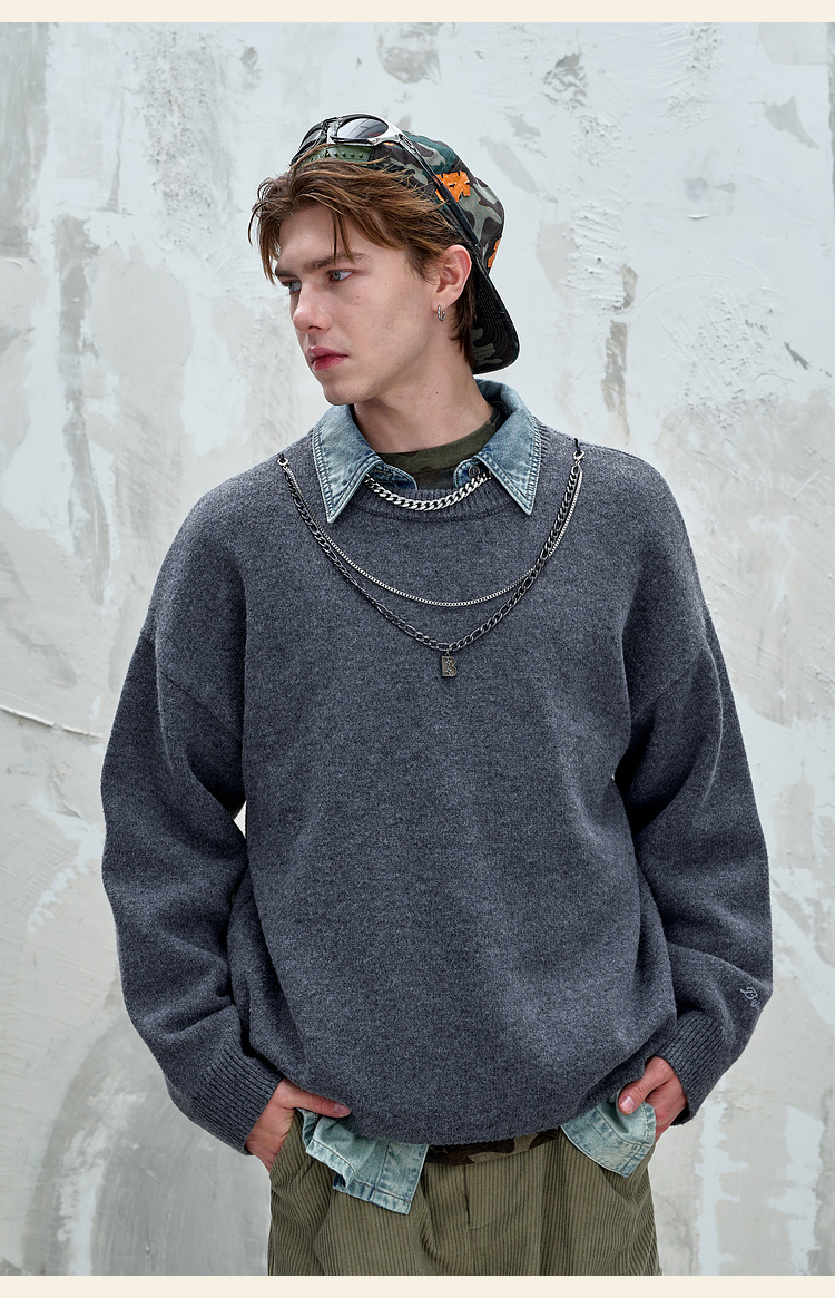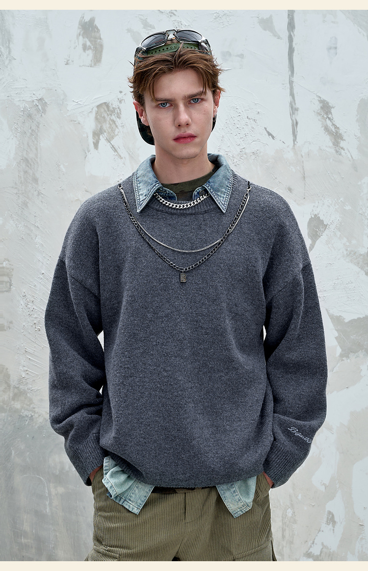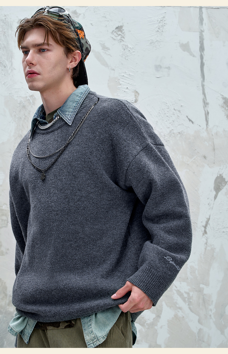 BJHG不计后果重磅纱线毛衣男秋季2025新款美式慵懒百搭圆领针织衫