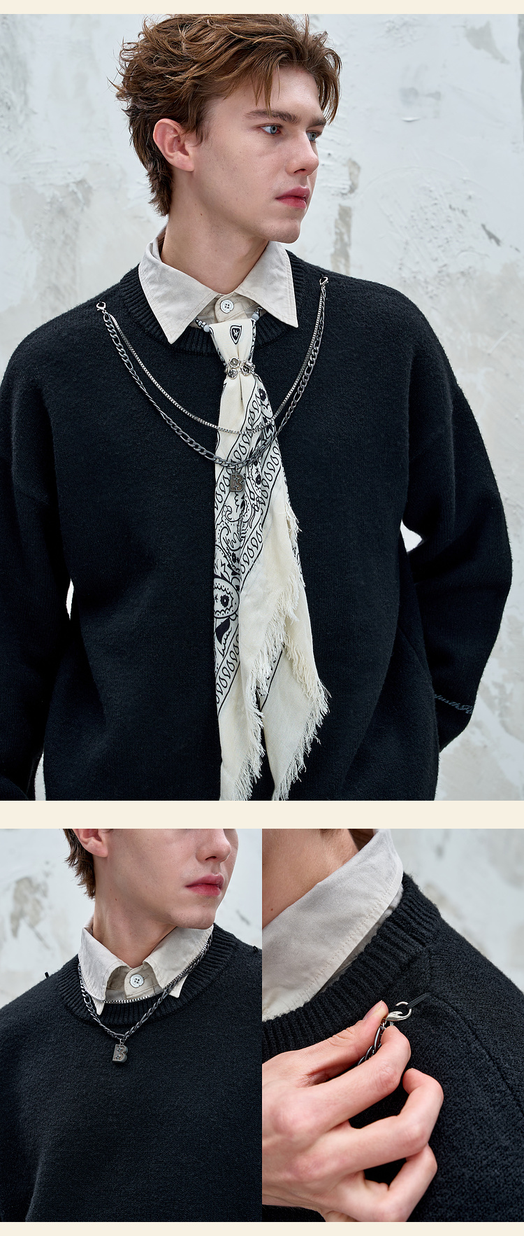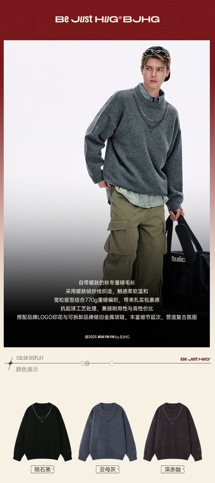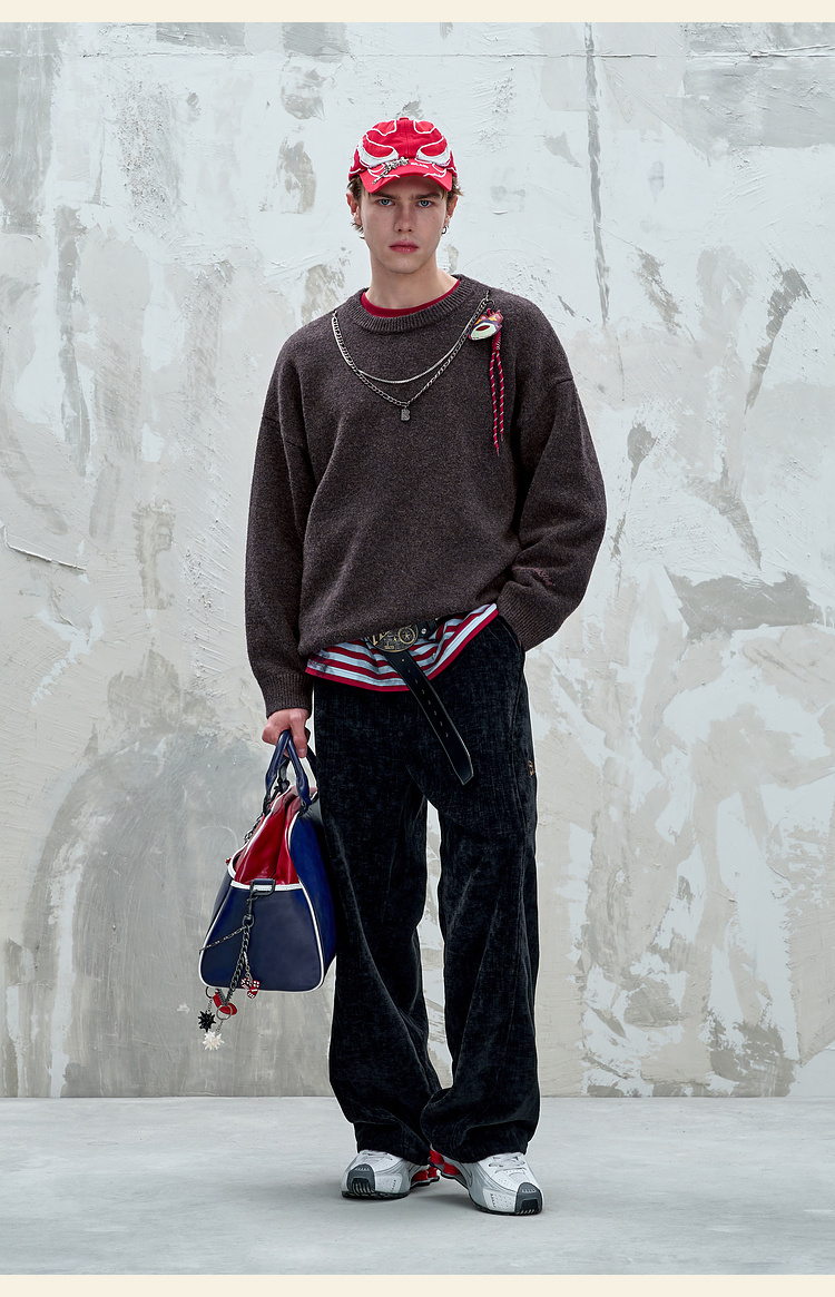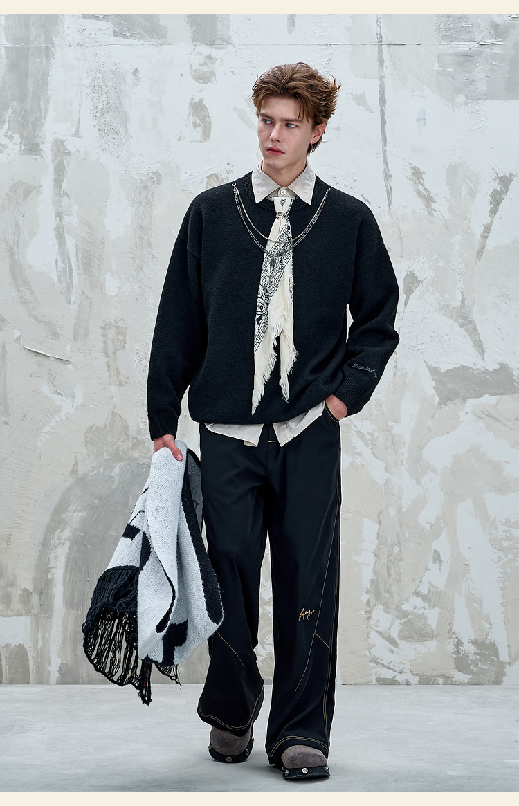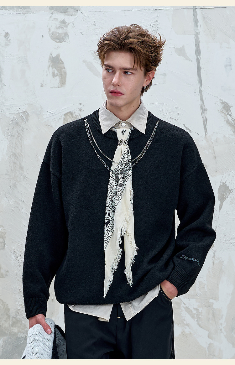 BJHG不计后果重磅纱线毛衣男秋季2025新款美式慵懒百搭圆领针织衫