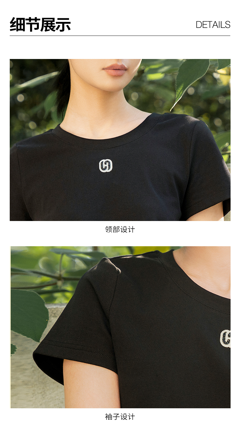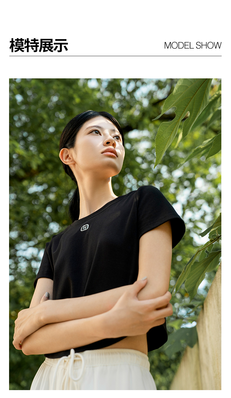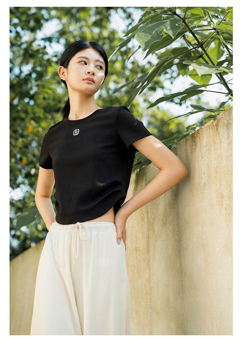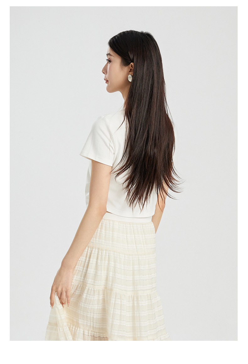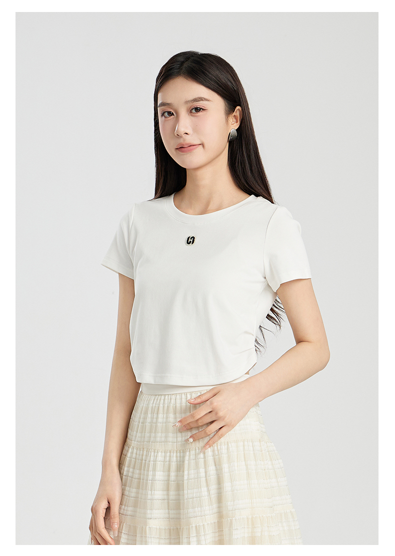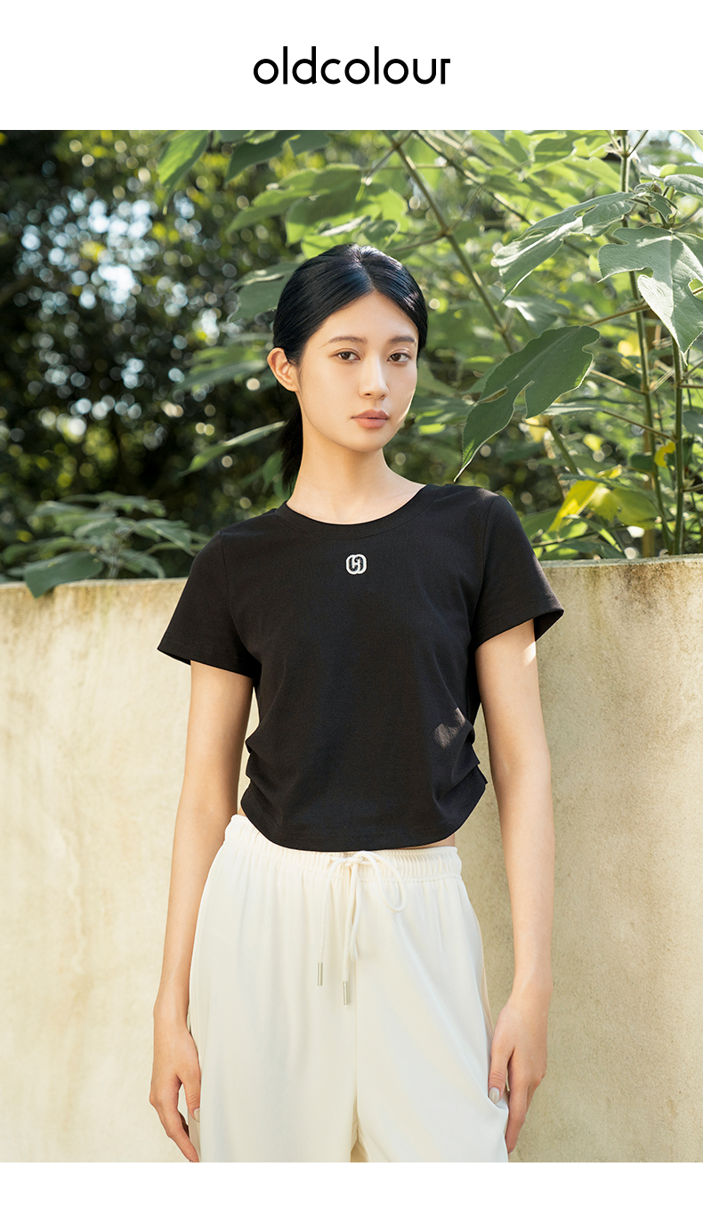 oldcolour夏季新款纯色简约通勤百搭短款短袖T恤女Q240204A1