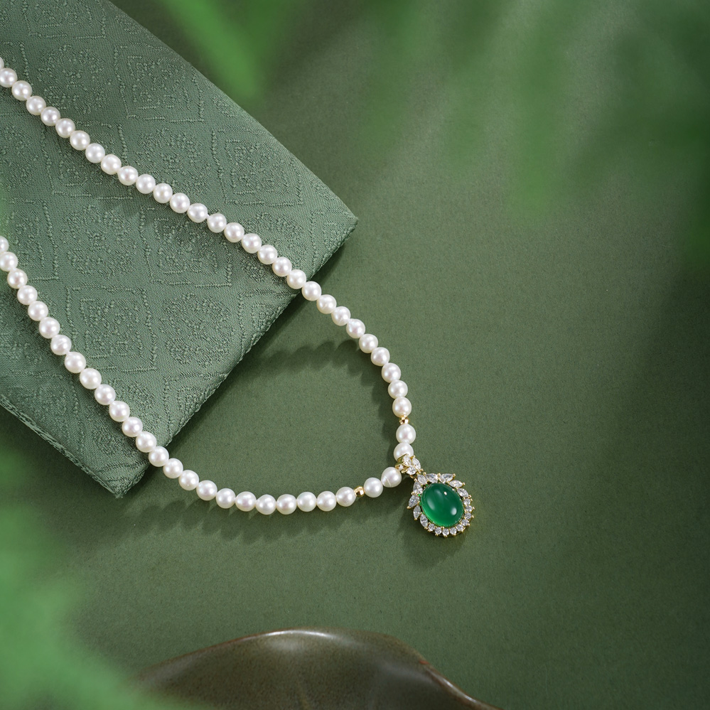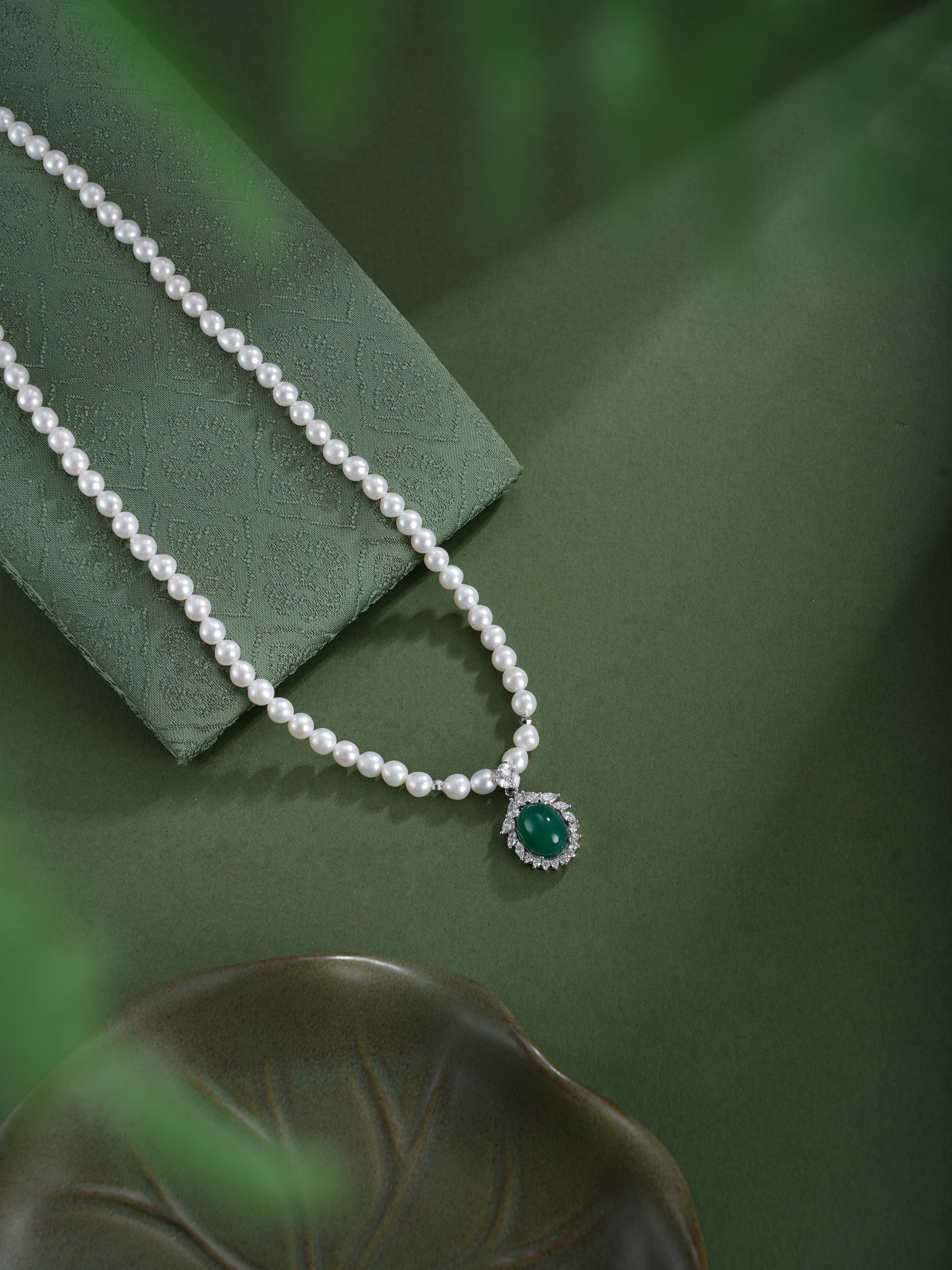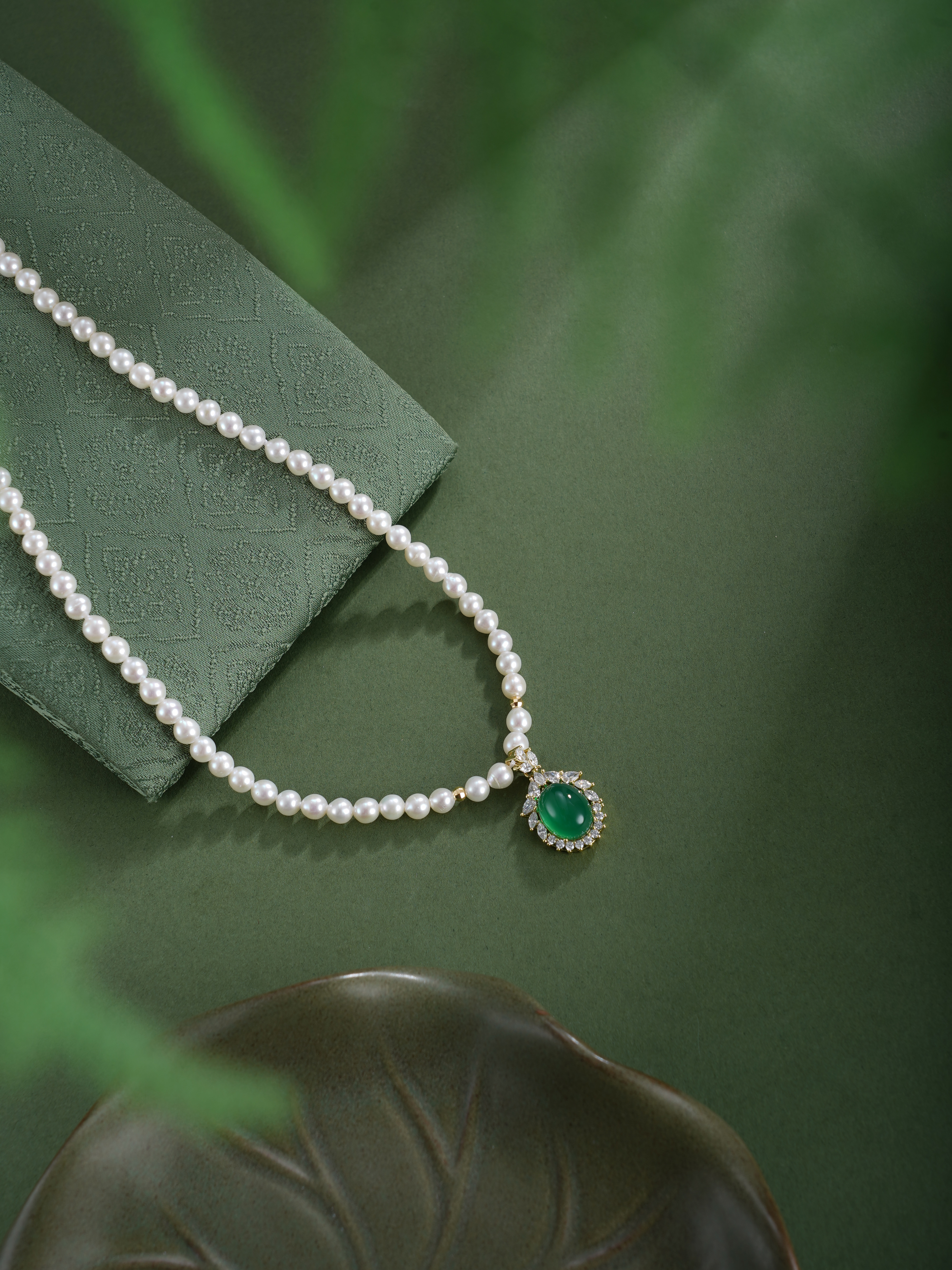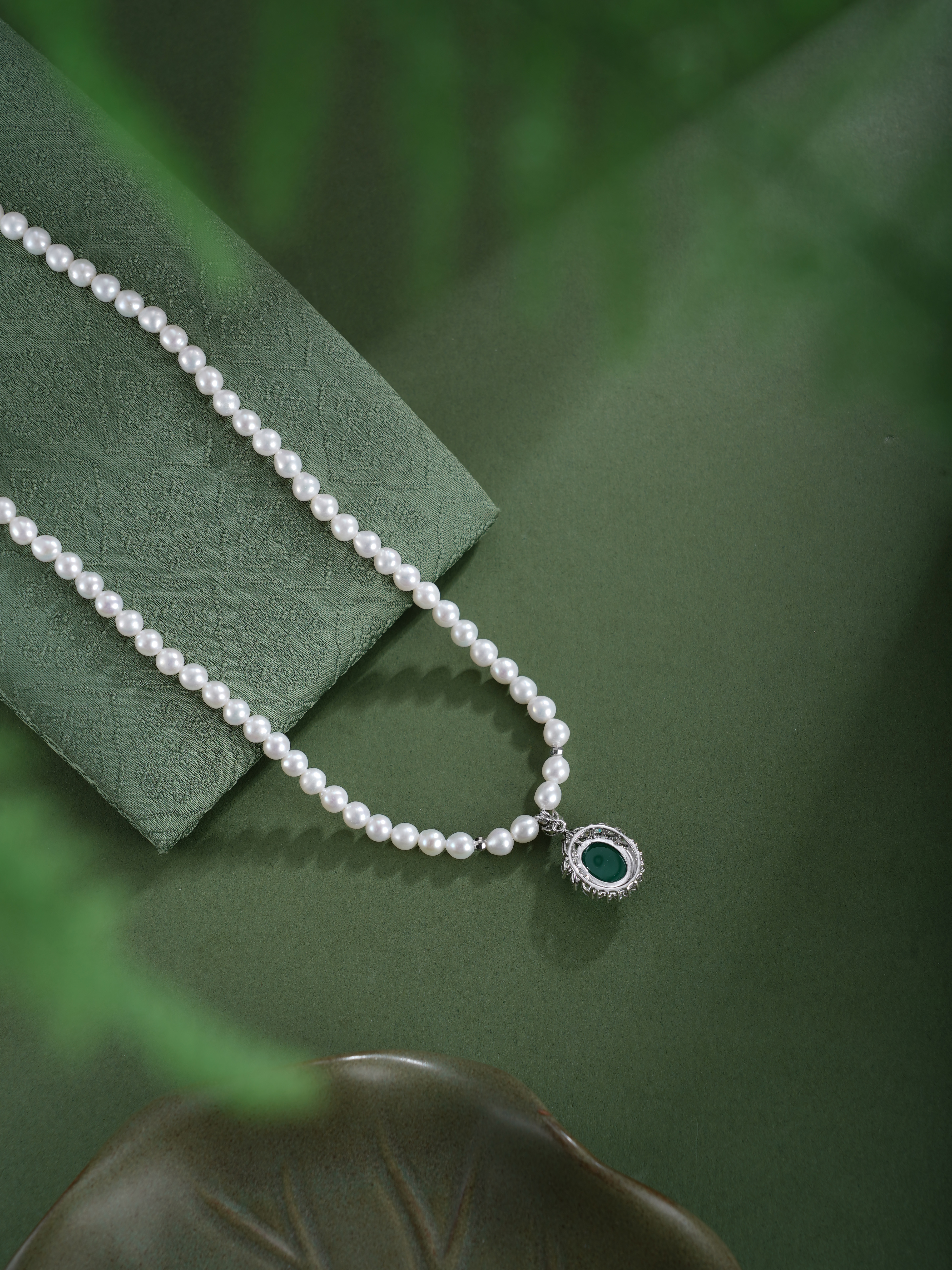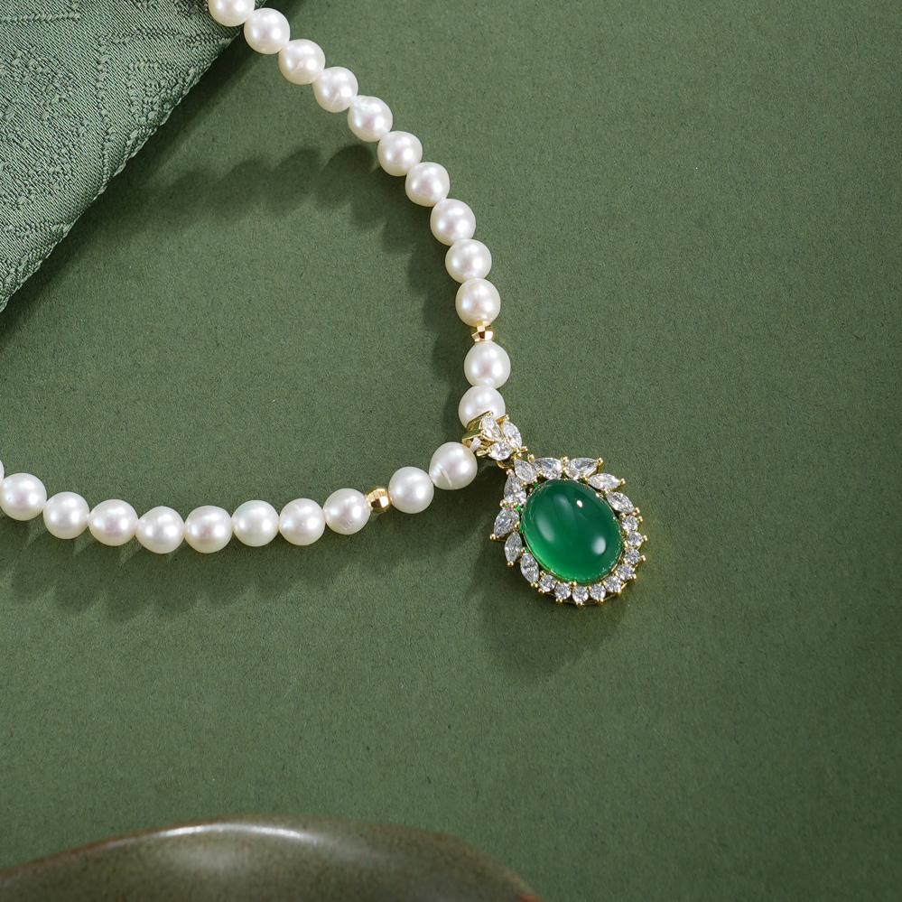 子佩集【璀璨韶光】珍珠惜王妃项链【XXXL023】绿玉髓椭圆双色2602