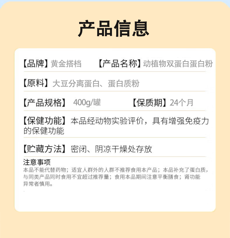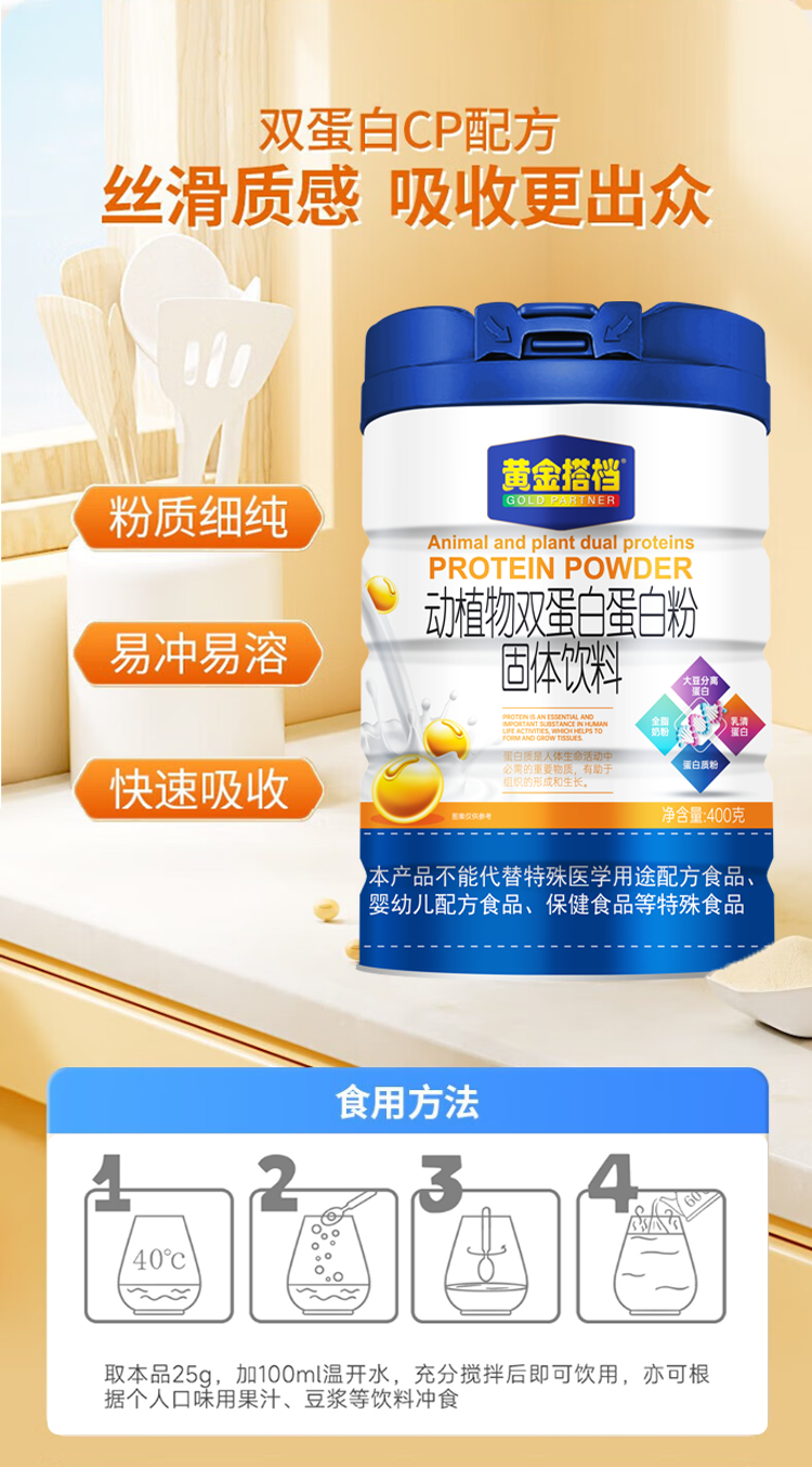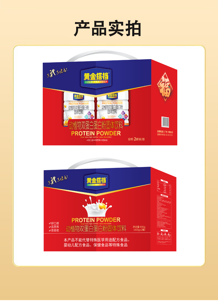 黄金搭档动植物双蛋白粉礼盒装400g*2罐 双蛋白配方 吸收更出众