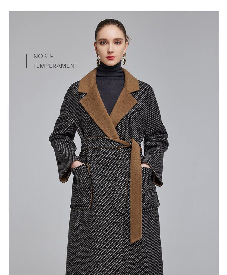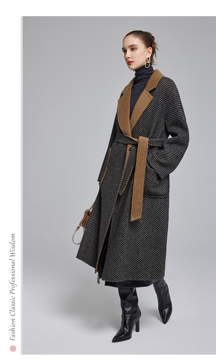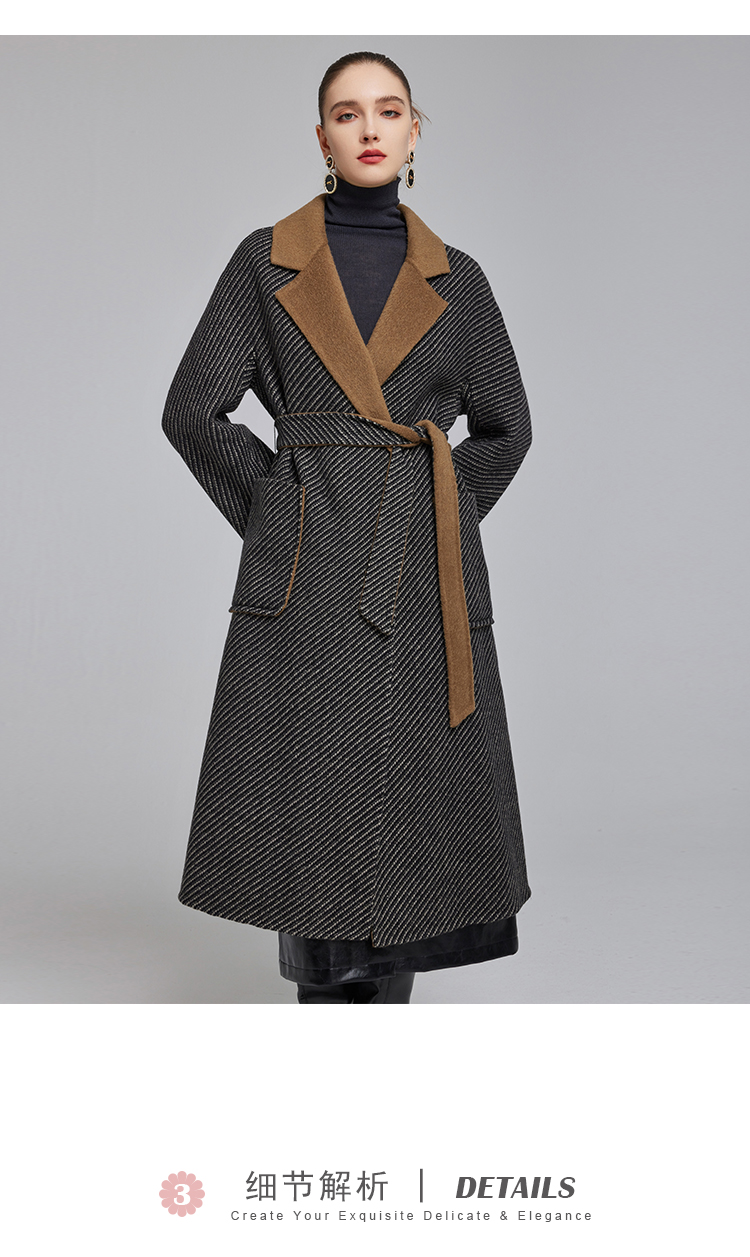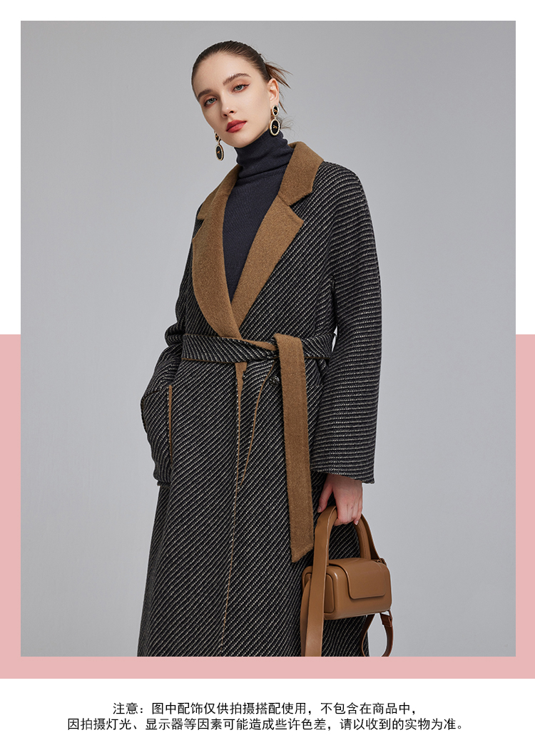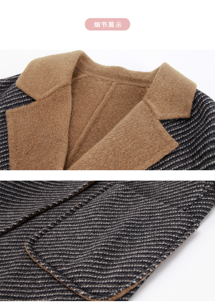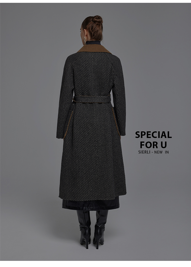 NH906斯尔丽2023秋冬新款斜纹双色西装领气质优雅撞色羊毛大衣