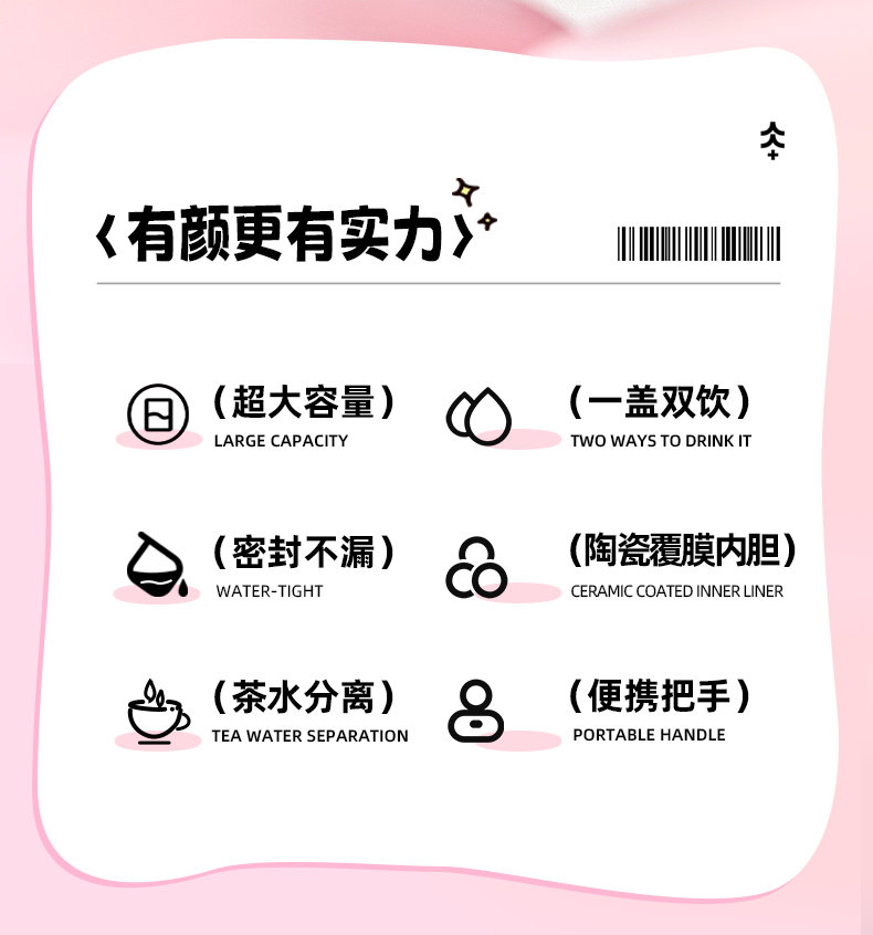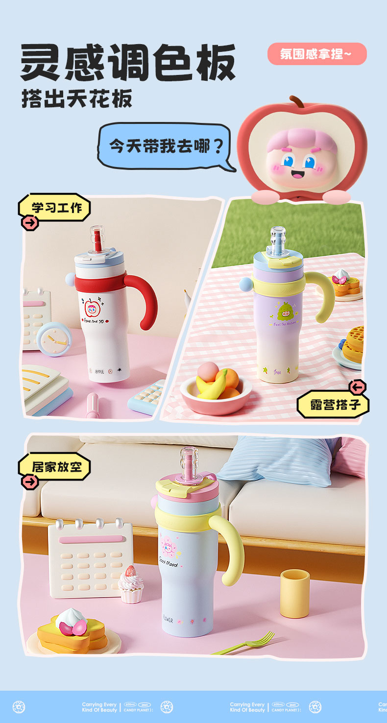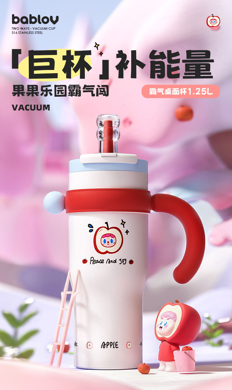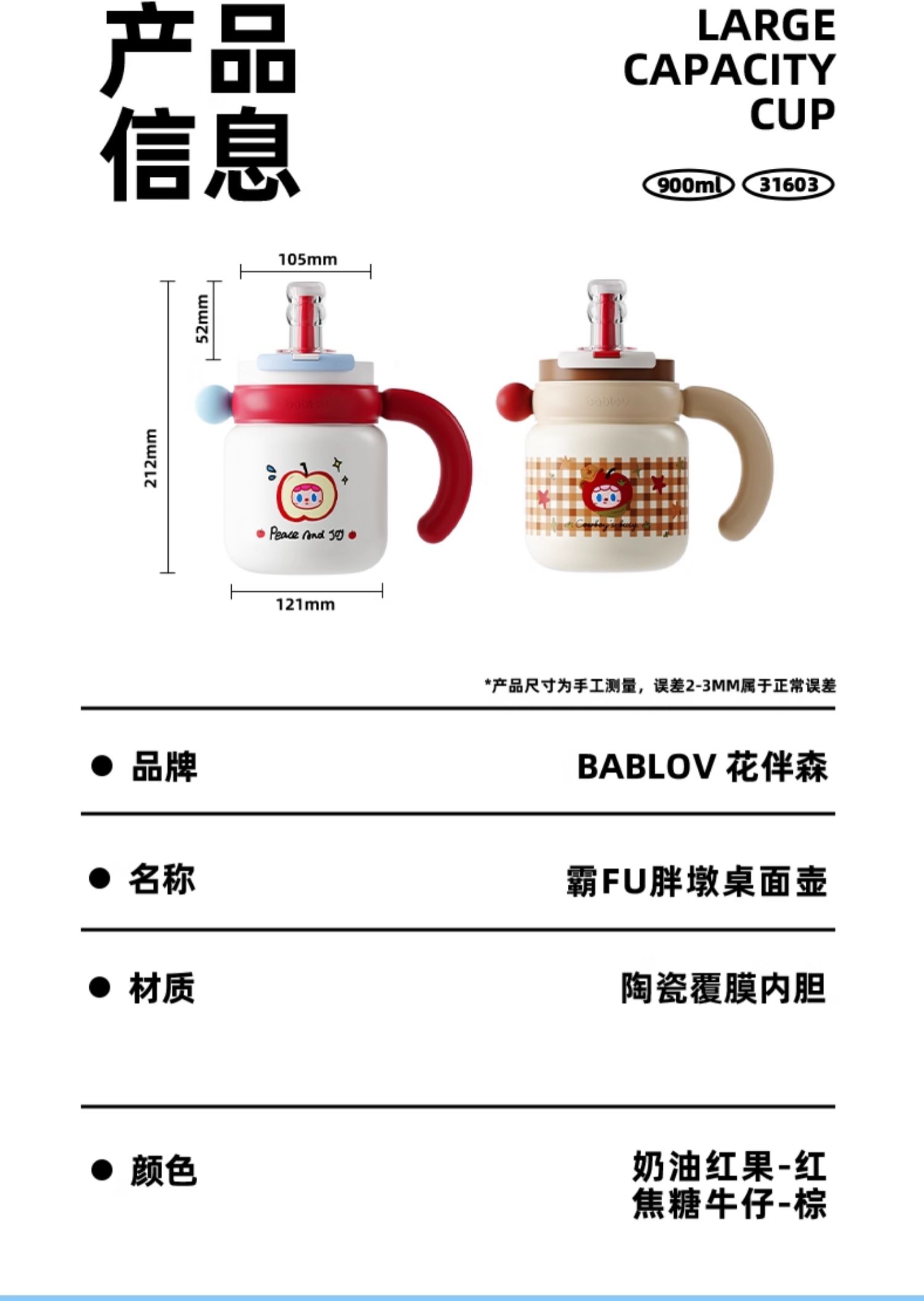 【云优选】花伴森bablov巨无霸吸管保温杯大容量水杯女高颜值水壶陶瓷内胆/316不锈钢内胆保冷冰霸杯子新年礼物生日礼物