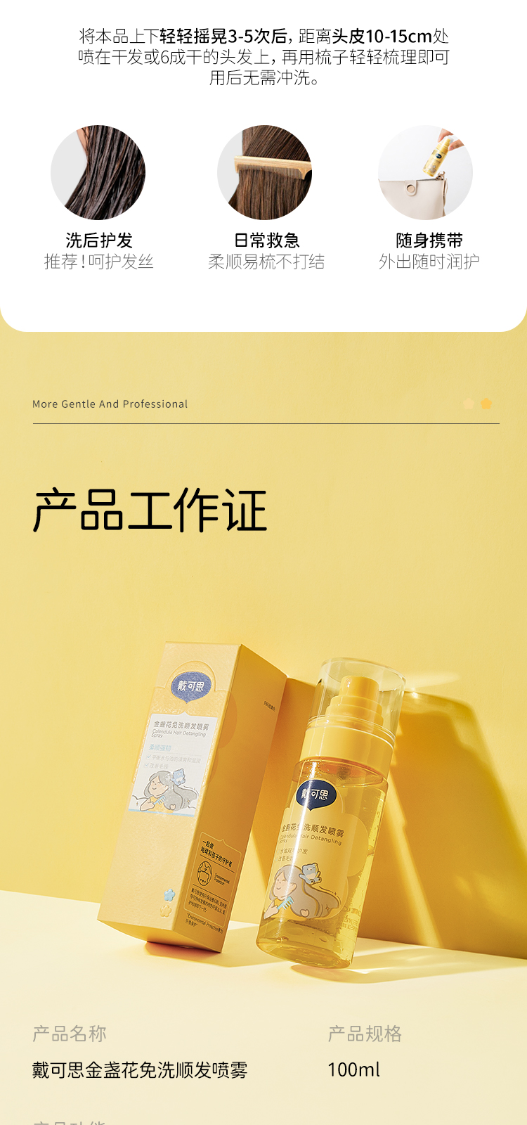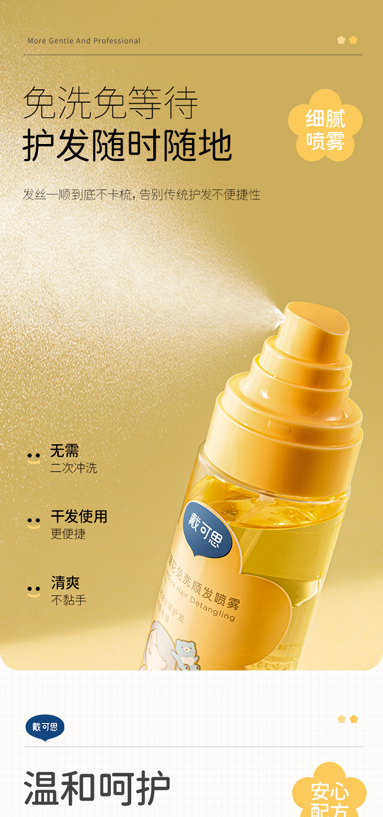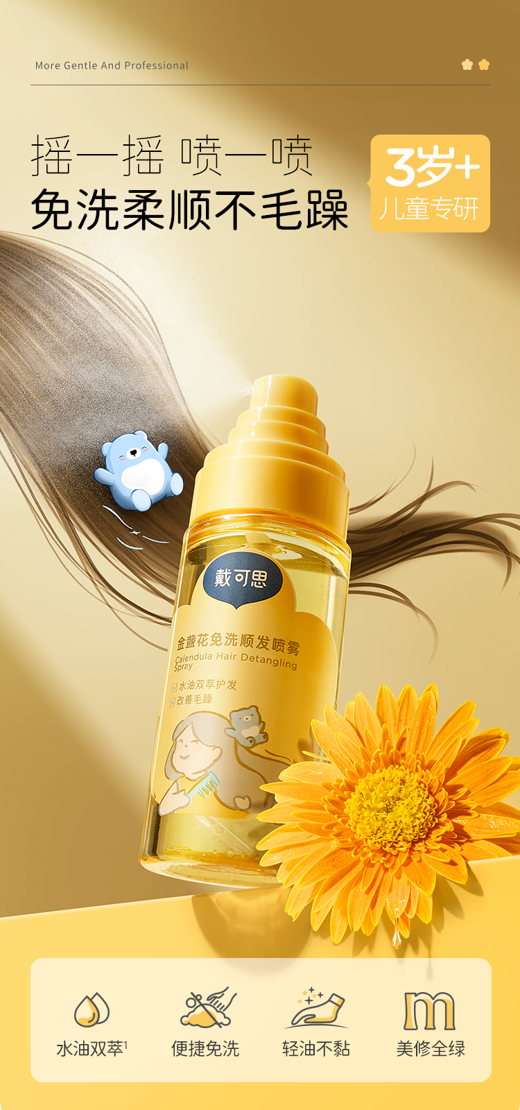 戴可思儿童免洗护发喷雾金盏花顺发柔顺毛躁专用宝宝护发素精油♥