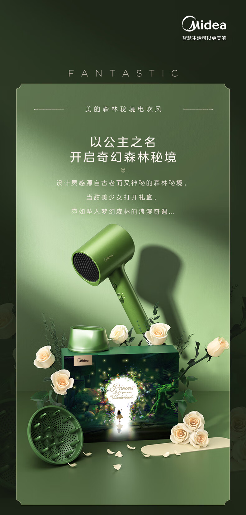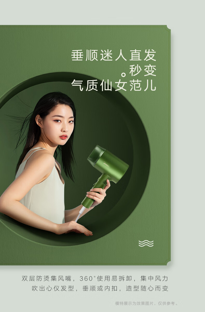 美的(Midea)MB-AJ0502 吹风机 3000万负离子电吹风吹风机家用速干护发吹风筒 节日礼物