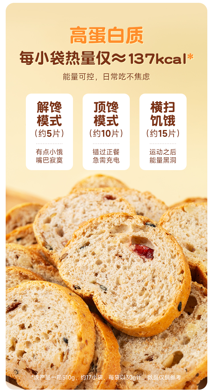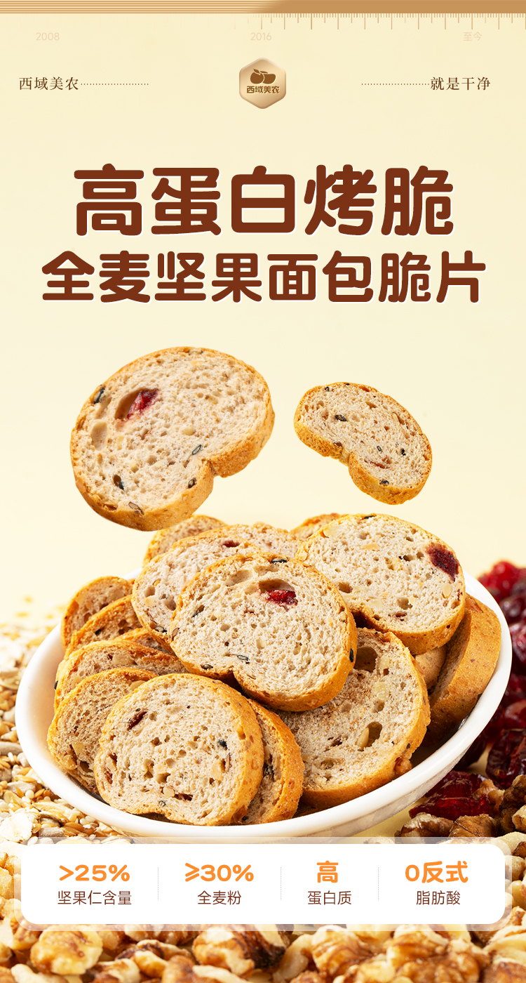 西域美农 高蛋白烤脆,全麦坚果面包脆片 1箱约17小袋