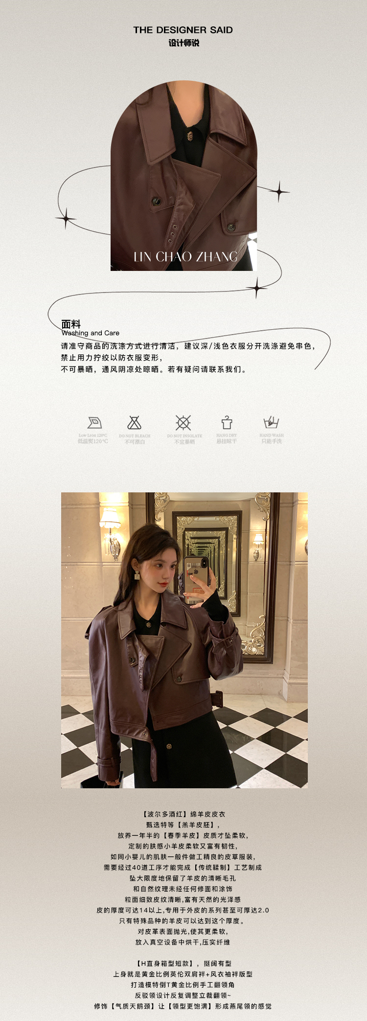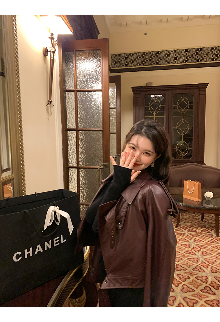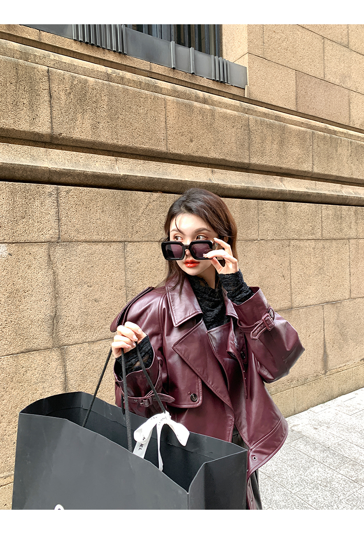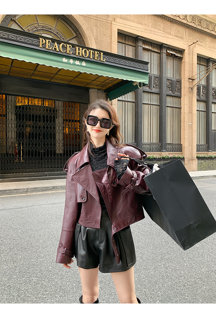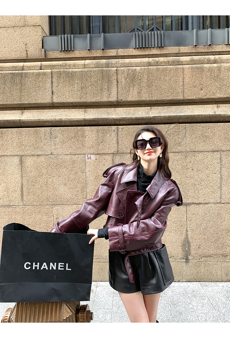清仓捡漏 LIN CHAO ZHANG 【康帝酒红】羊皮革皮衣