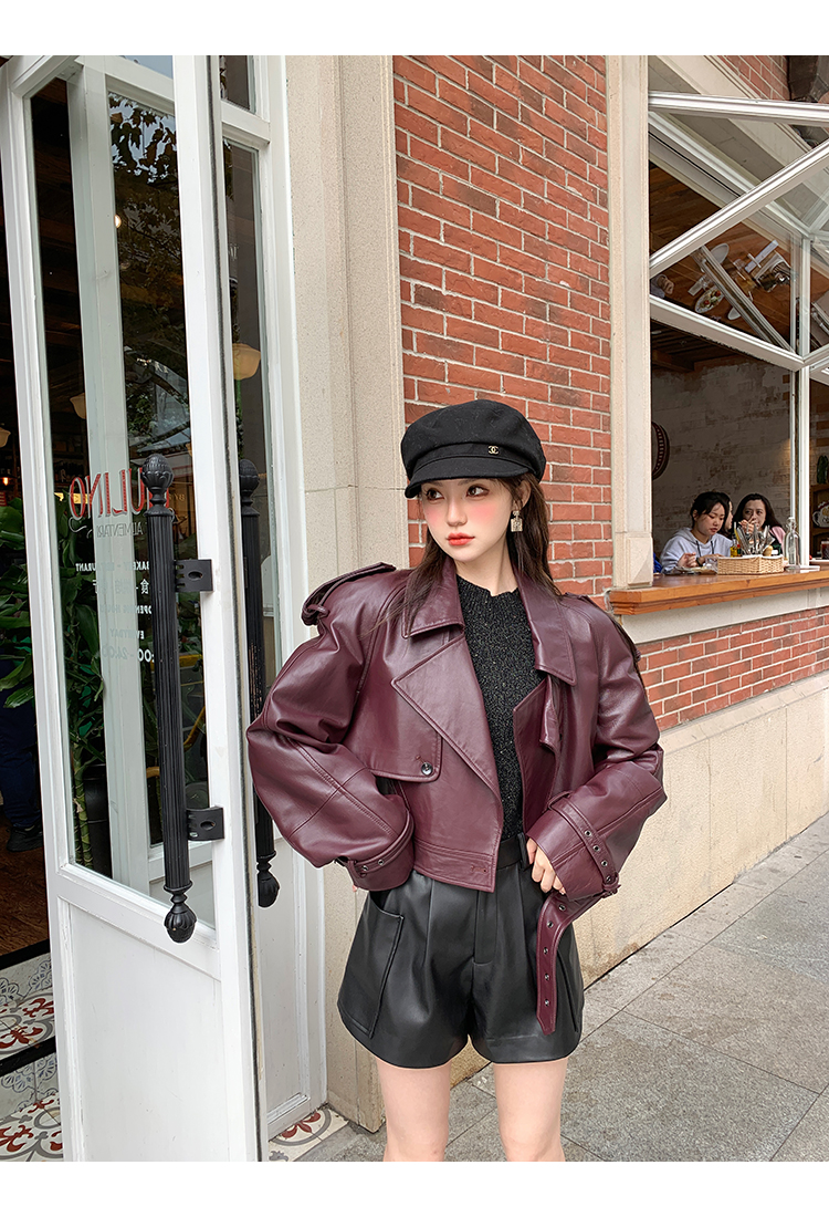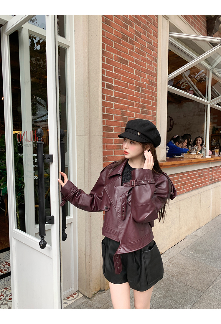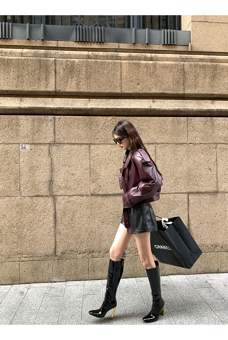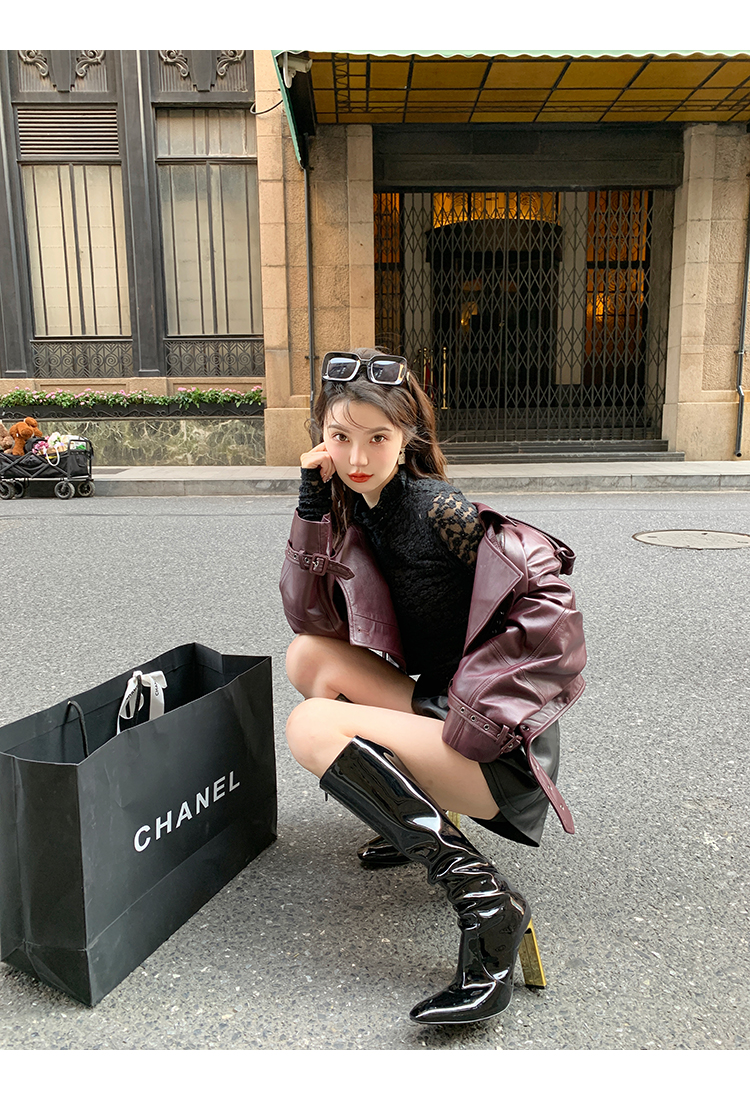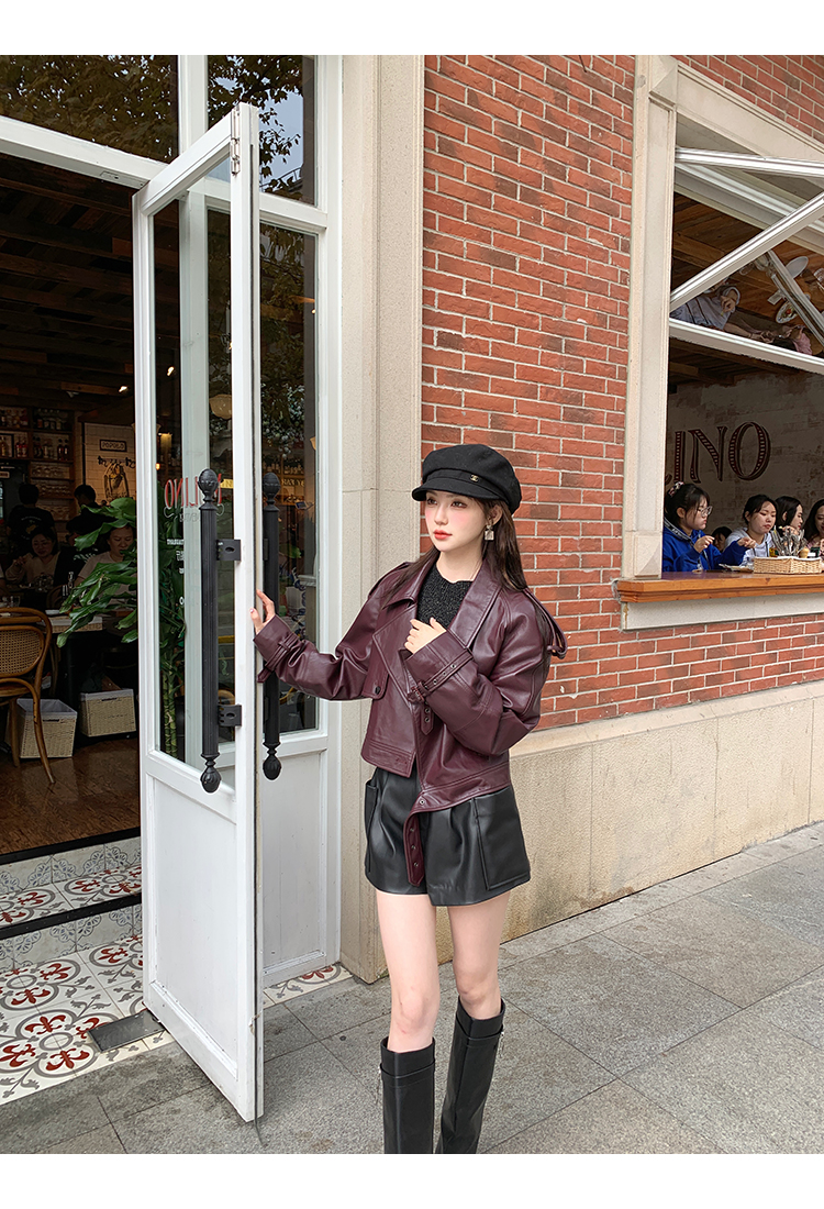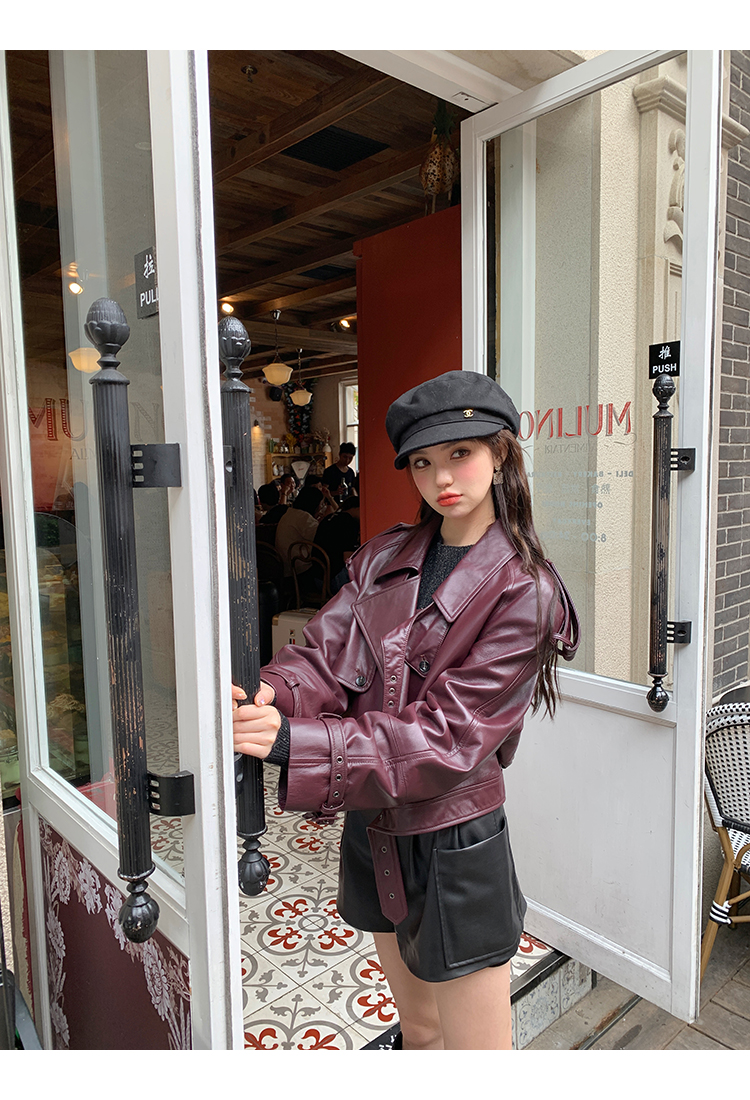 清仓捡漏 LIN CHAO ZHANG 【康帝酒红】羊皮革皮衣