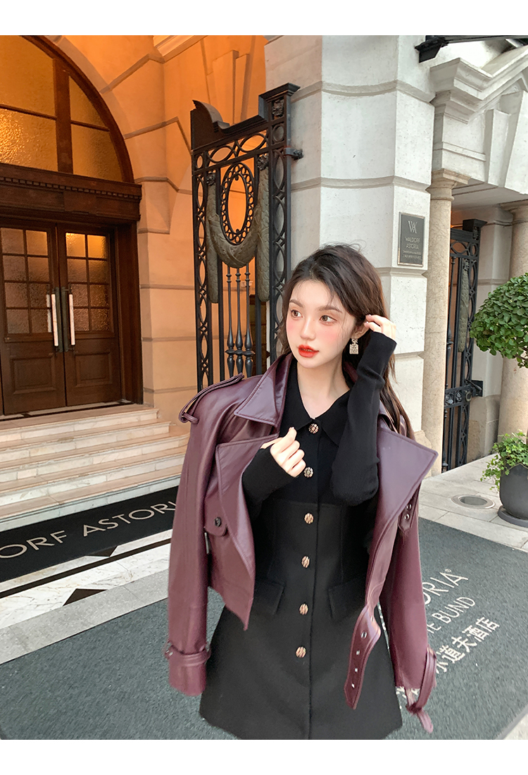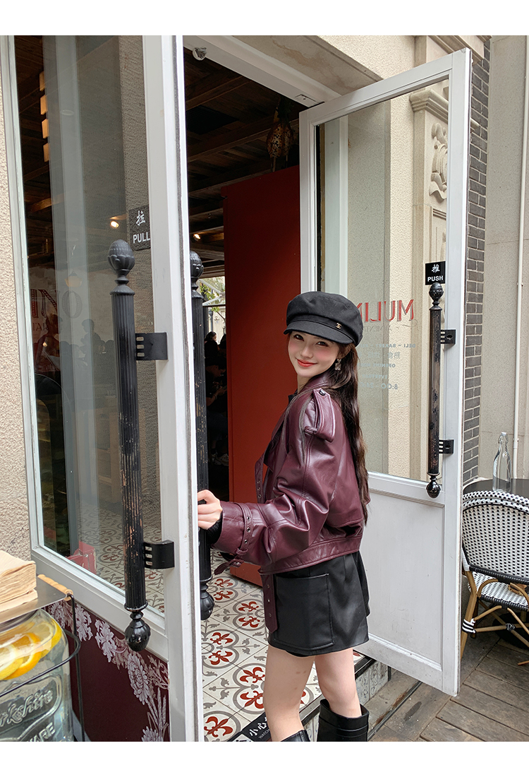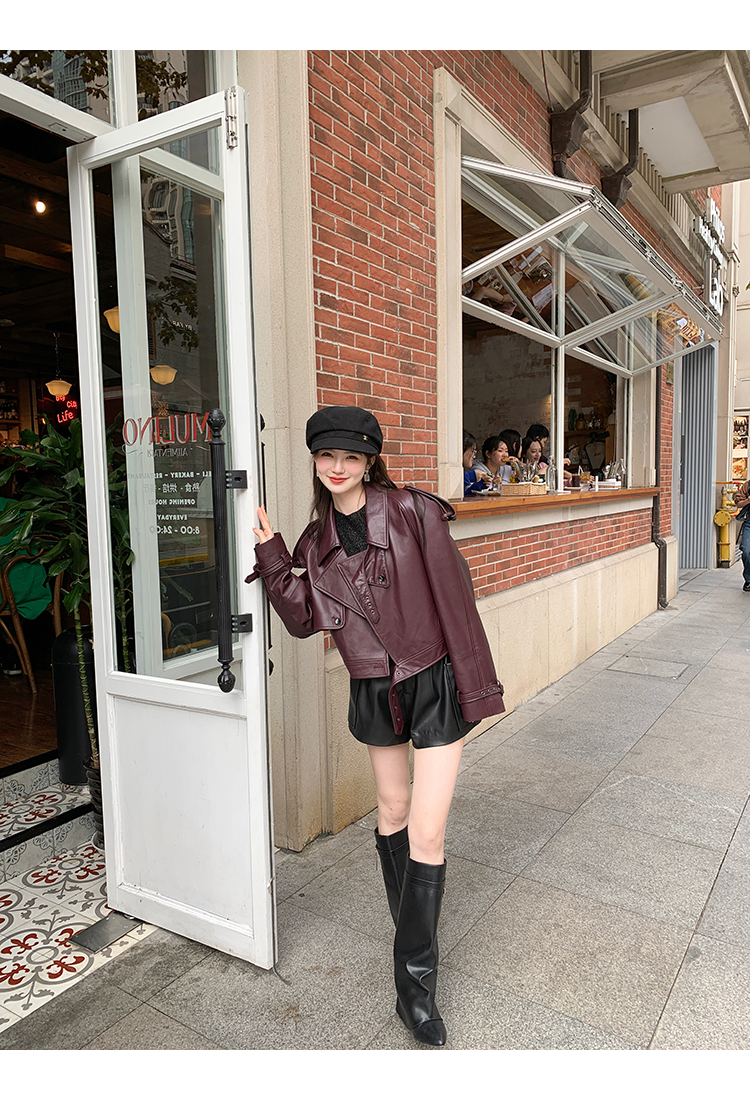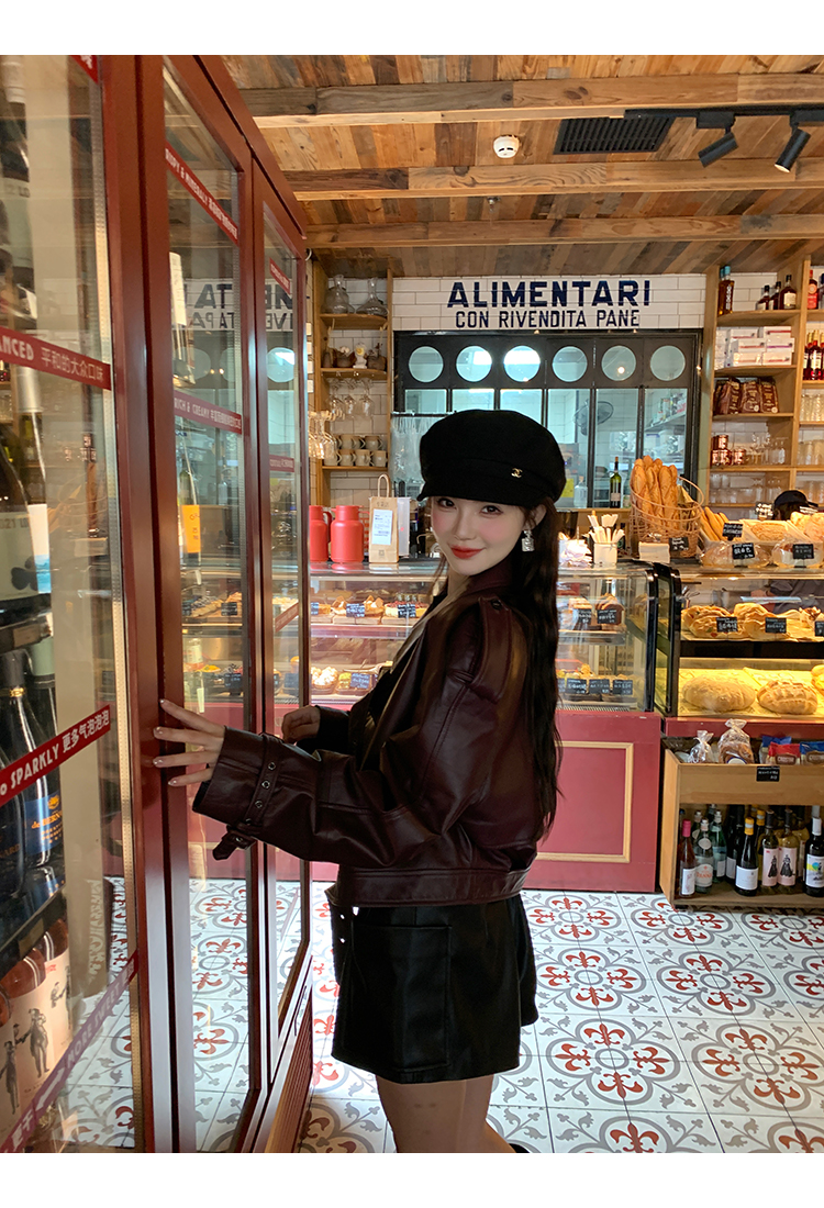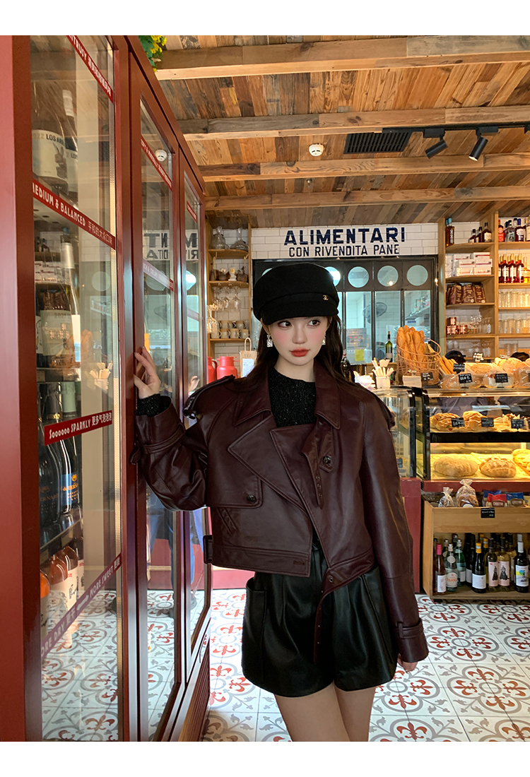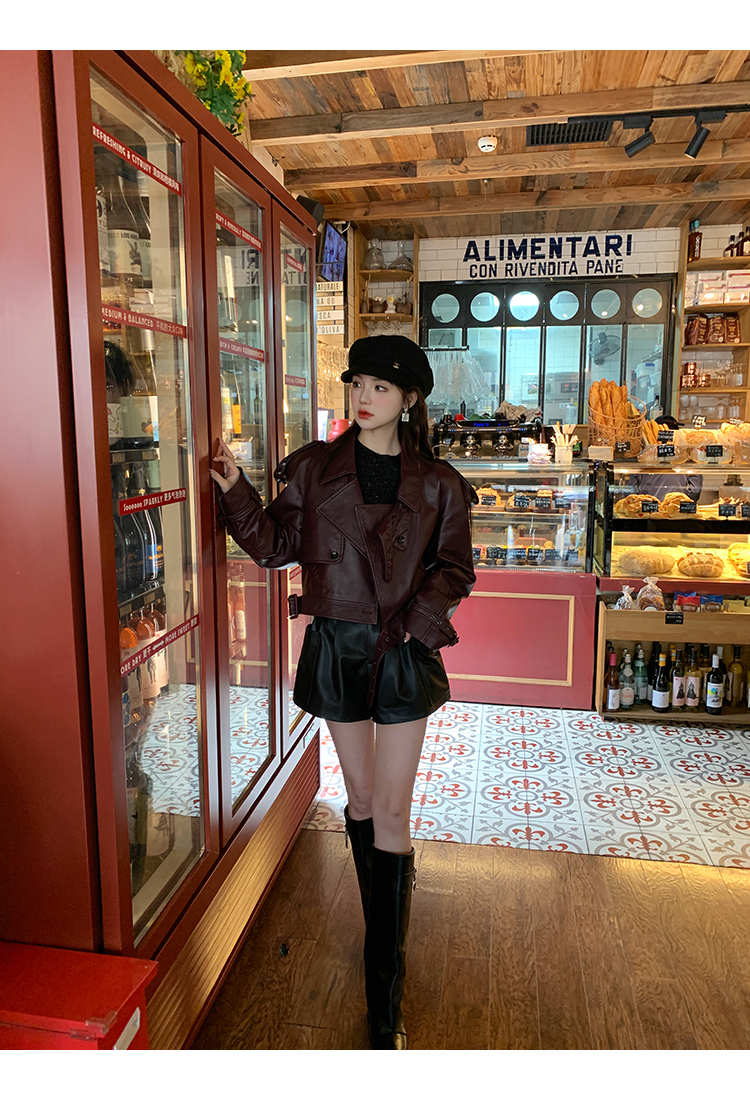 清仓捡漏 LIN CHAO ZHANG 【康帝酒红】羊皮革皮衣