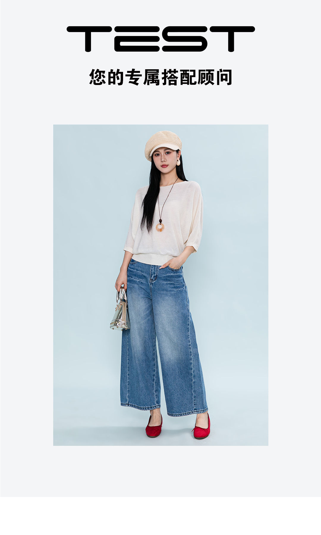 夏上新韩系慵懒高腰阔腿复古做旧宽松直筒九分牛仔裤3262016