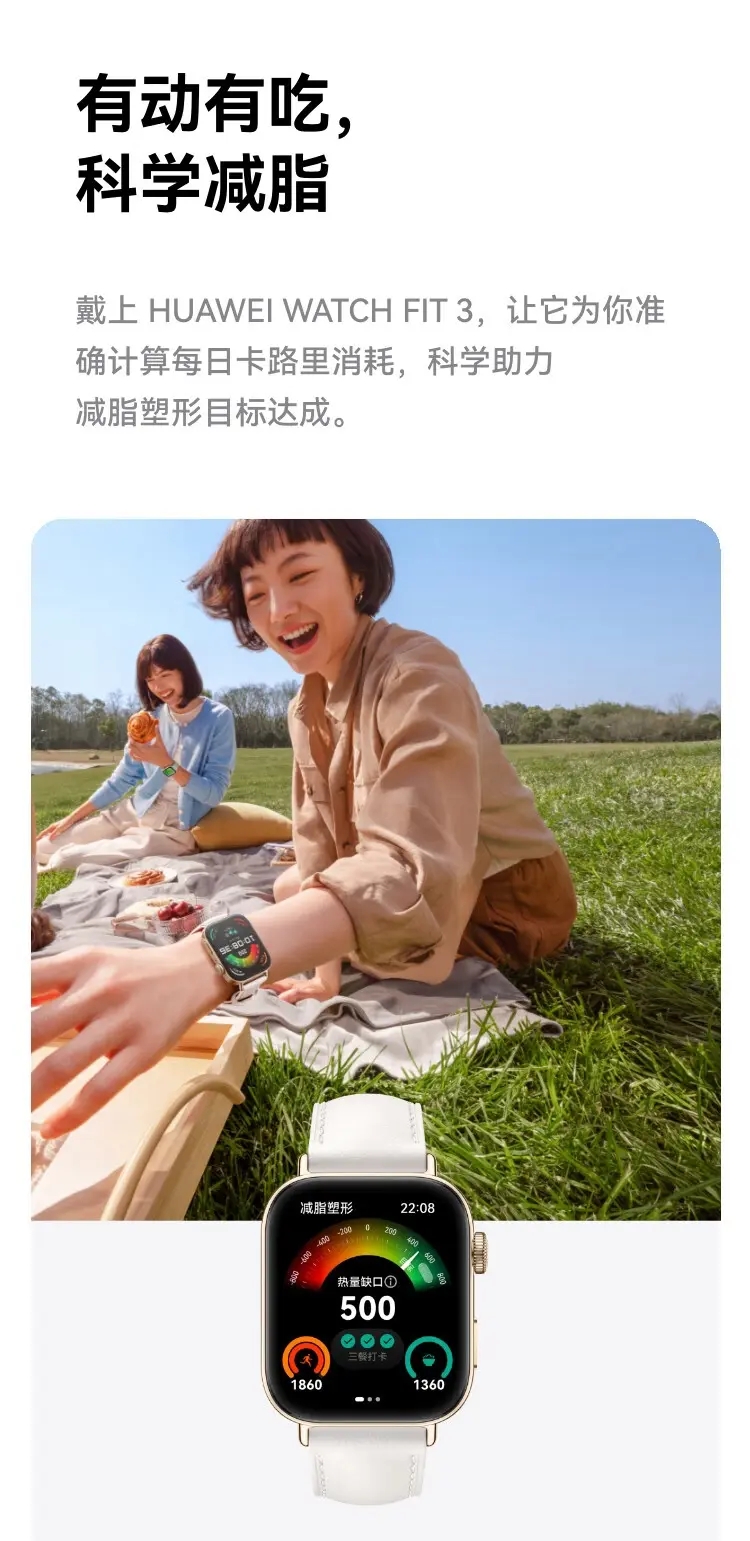 华为 WATCH Fit 3 智能手表 幻夜黑 氟橡胶表带