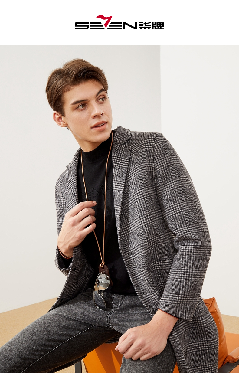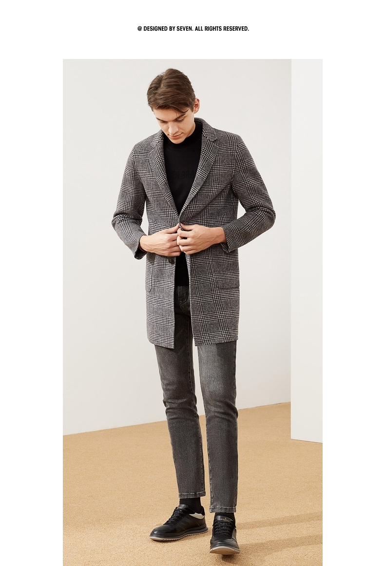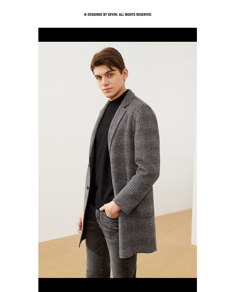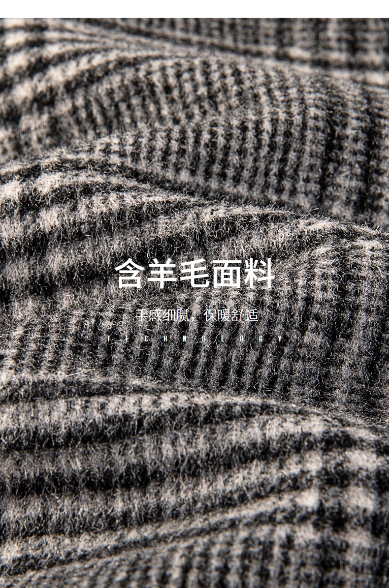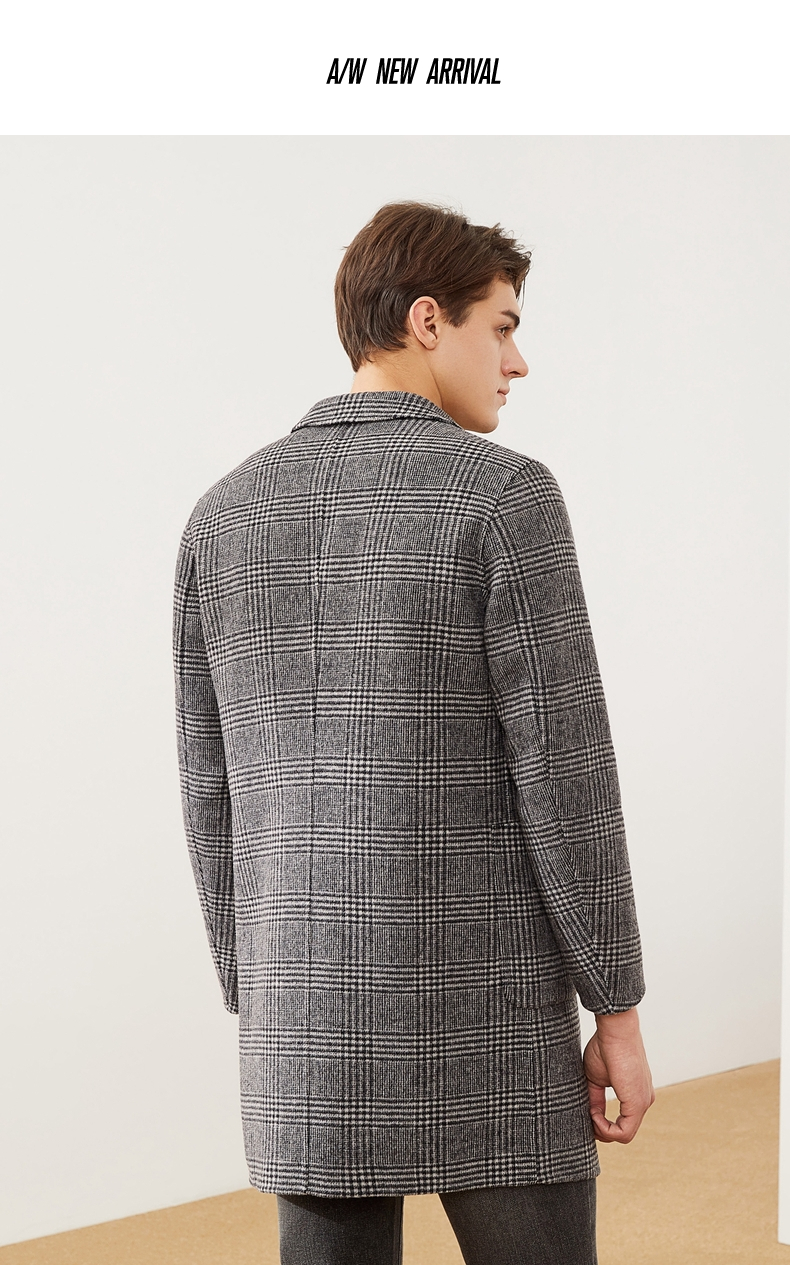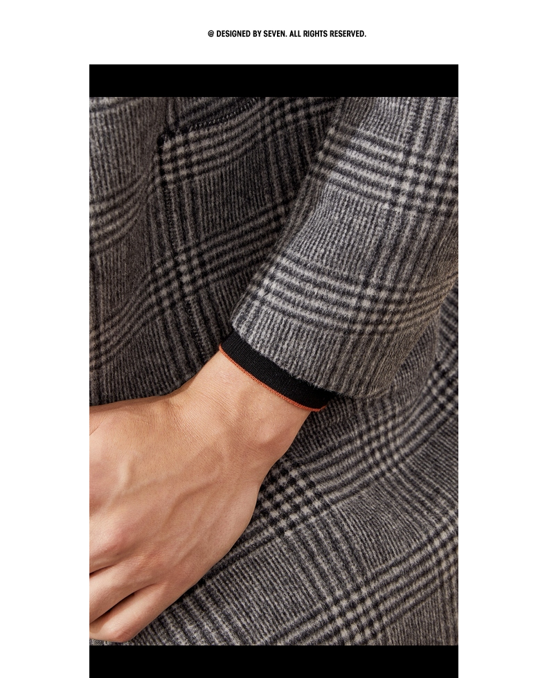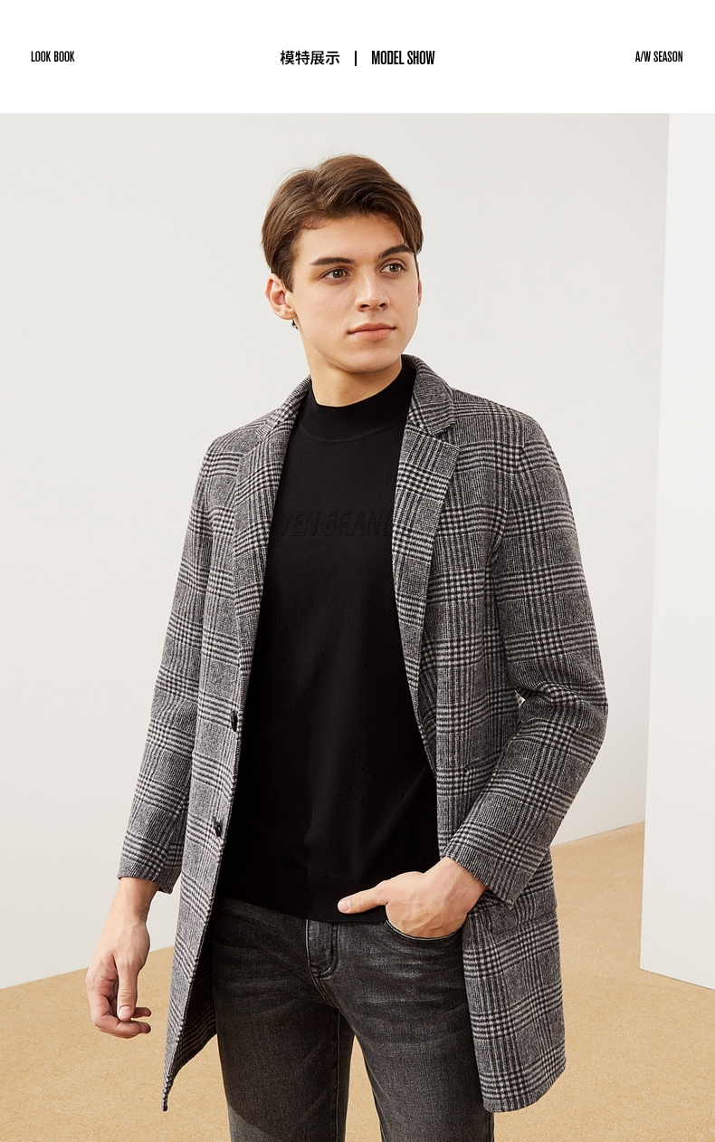 【含羊毛】柒牌毛呢大衣男时尚潮流中青年复古格子中长款冬装外套 121D70020