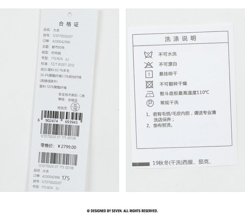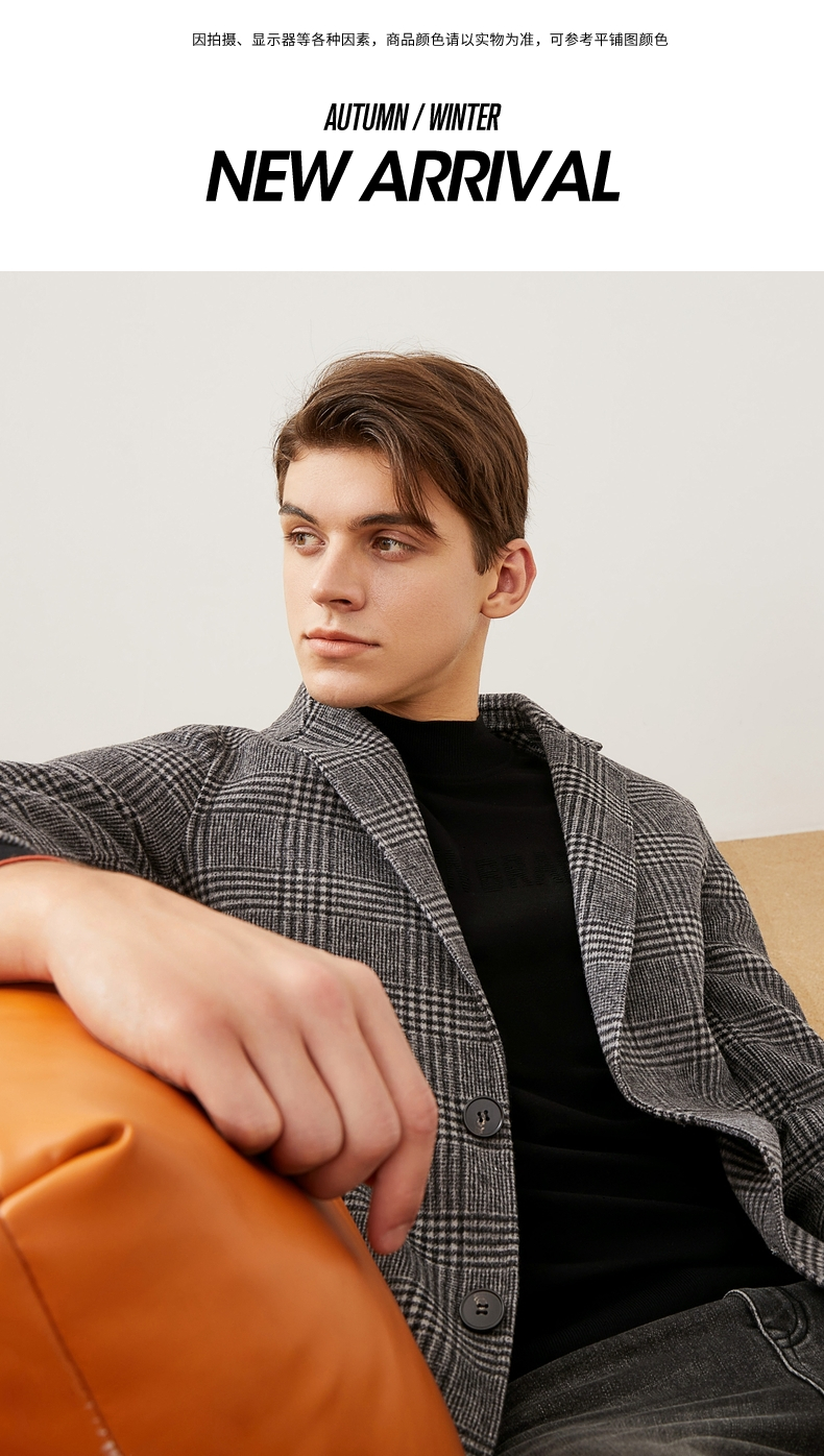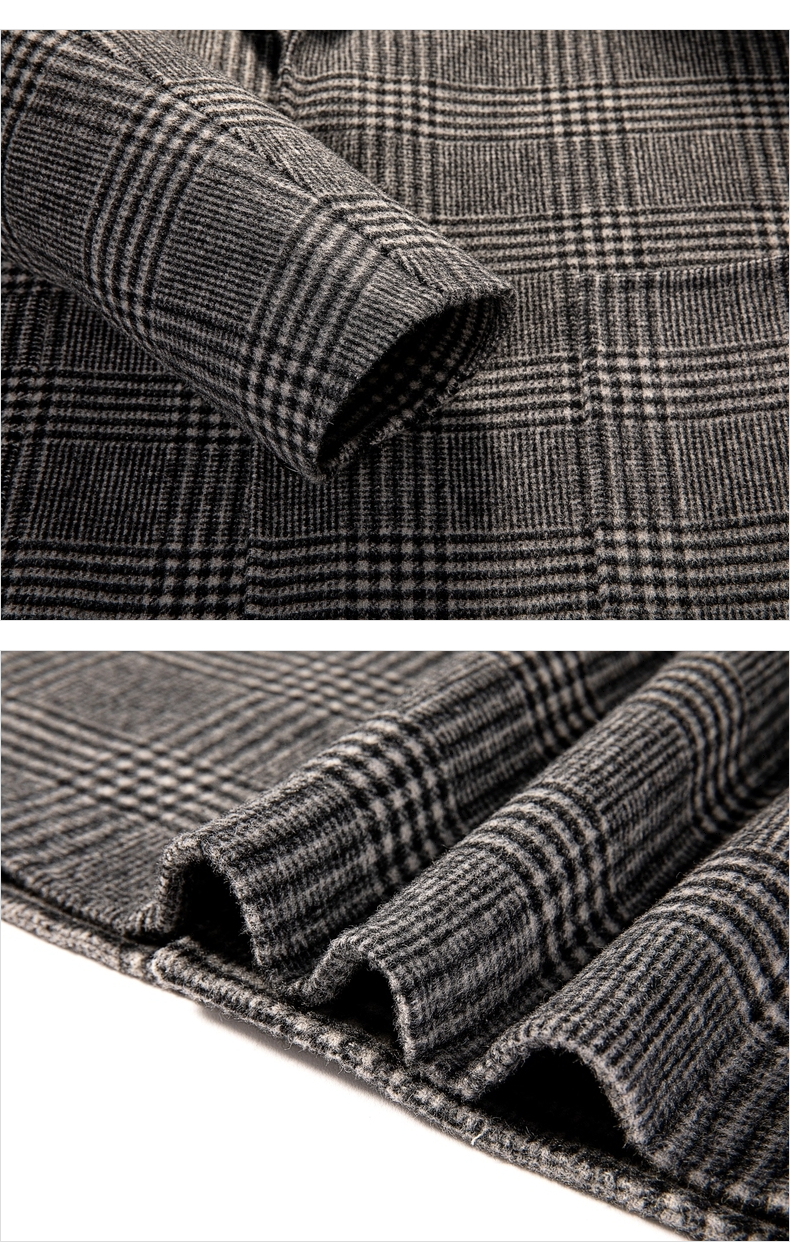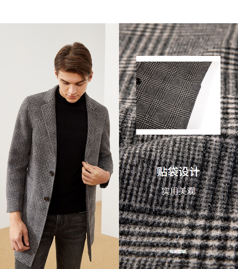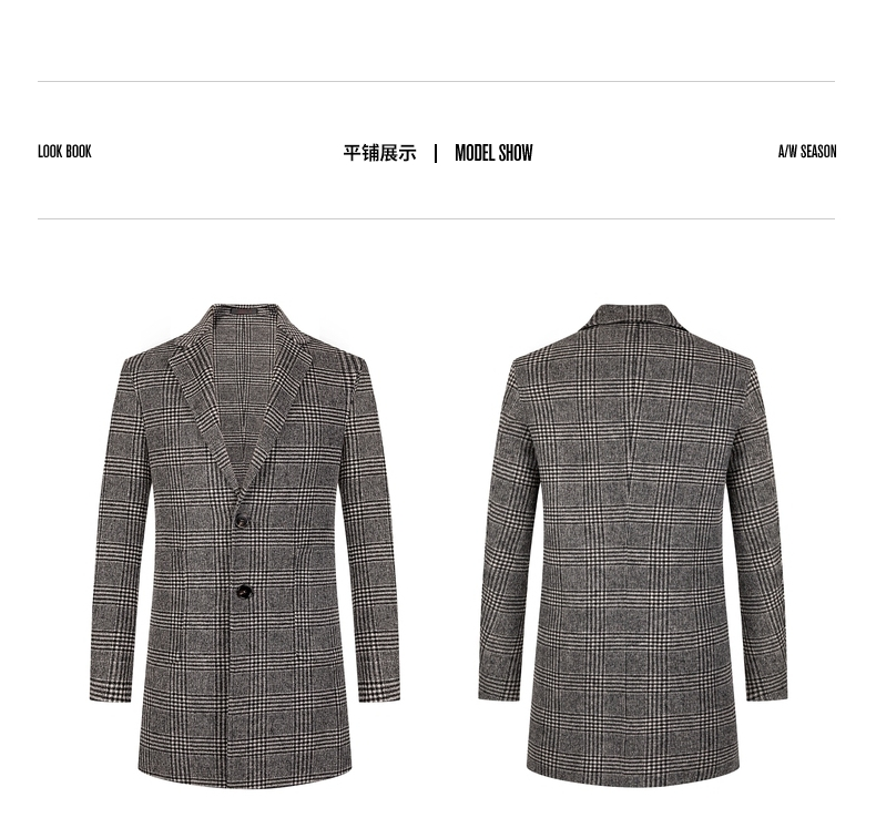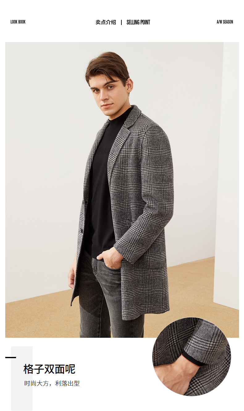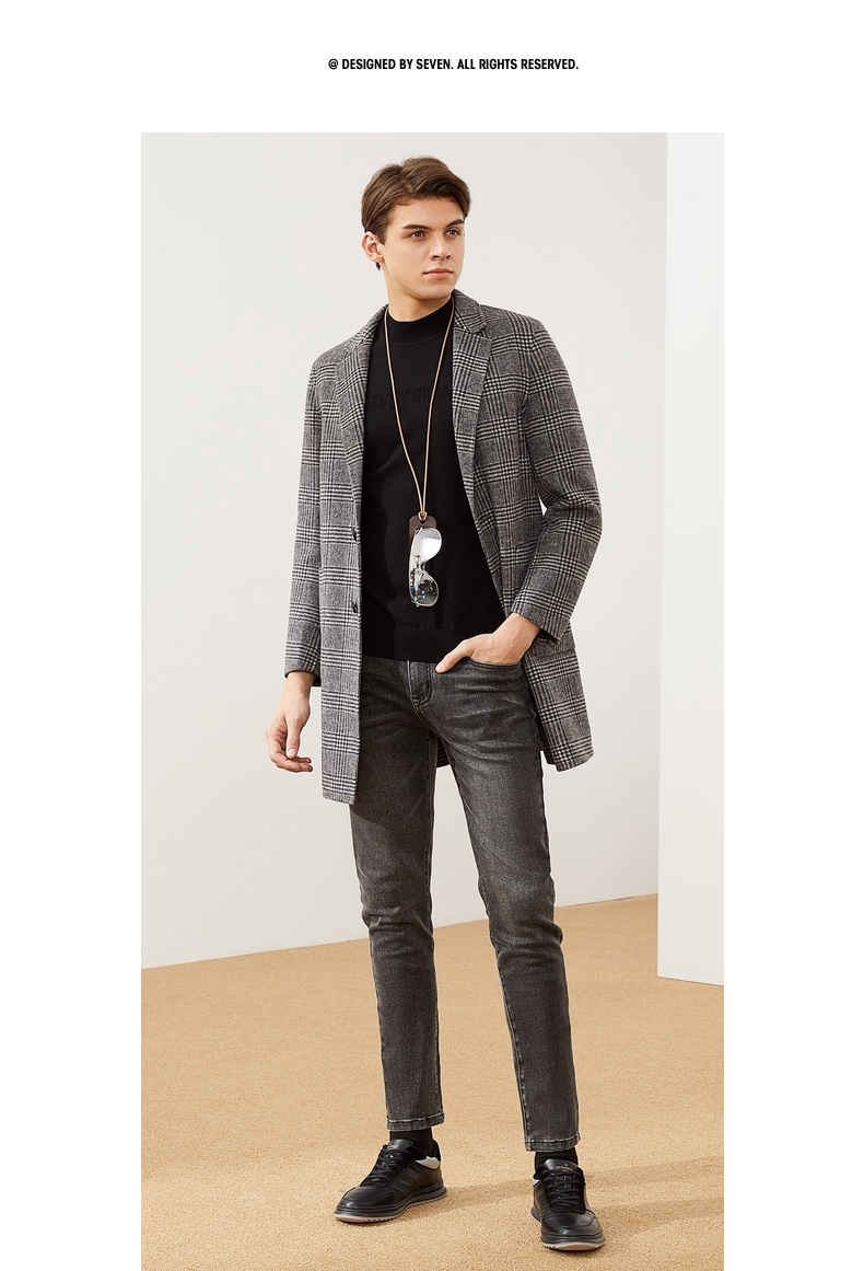 【含羊毛】柒牌毛呢大衣男时尚潮流中青年复古格子中长款冬装外套 121D70020