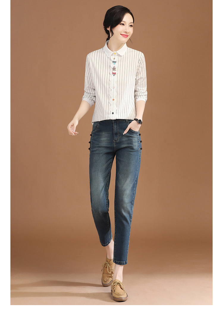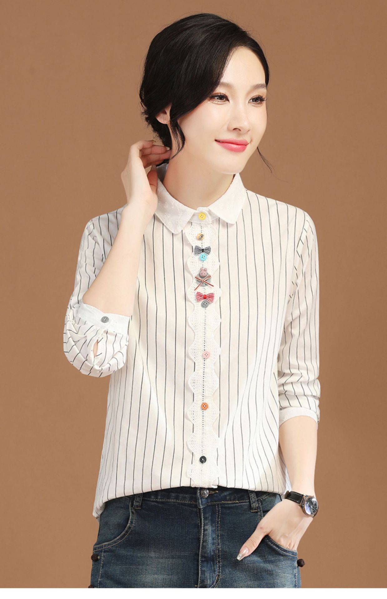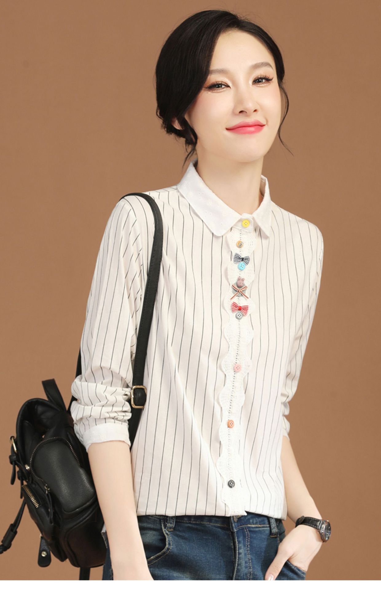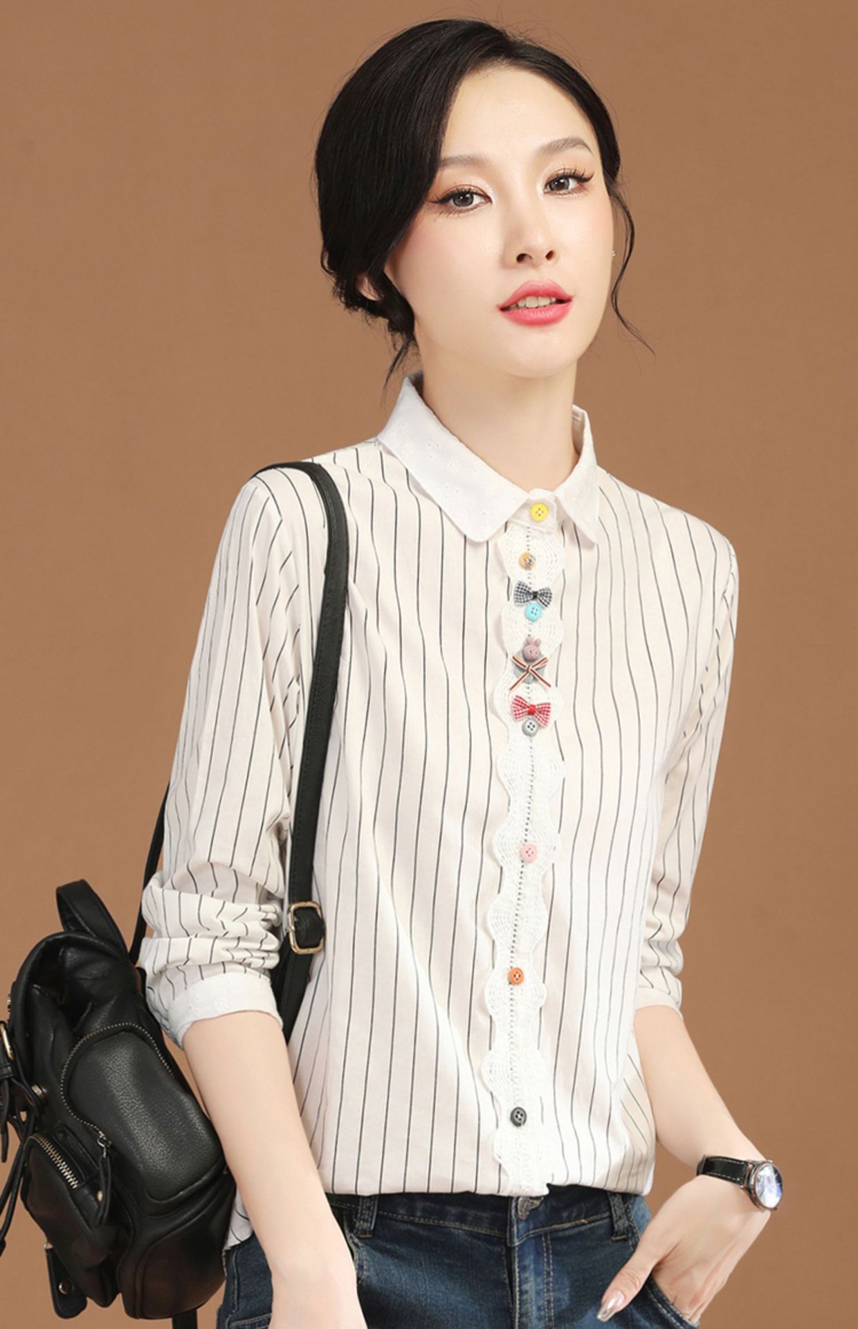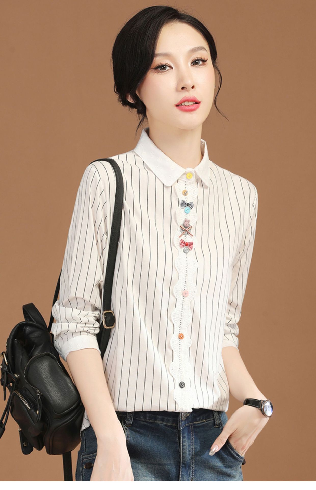 条纹长袖拼接衬衣,法式设计感小众衬衫上衣GYM-B0630