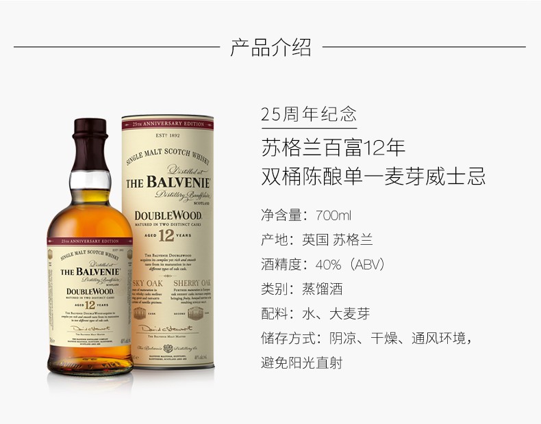【正品行货】百富12年双桶单一麦芽苏格兰威士忌 700ml 40%vol.