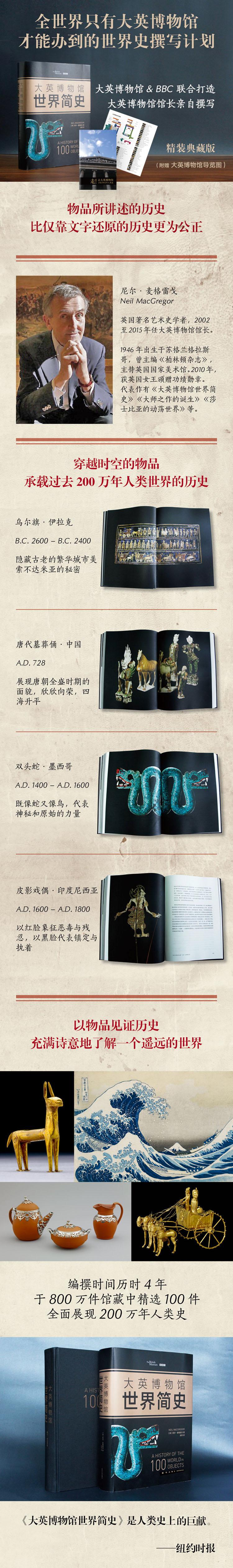 尼尔·麦格雷戈著的《大英博物馆世界简史(精)》由大英博物馆和英国国家广播公司(BBC)联合打造,由大英博物馆馆长尼尔·麦格雷戈亲自撰写,动员100多名馆员、400多名专家,编撰时间长达4年,从大英博物馆800万件馆藏中精选了100件代表性物品,全面展现了人类200万年文明史。
