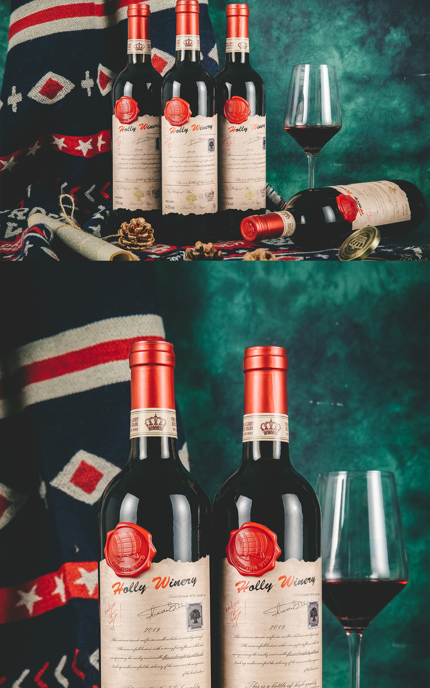 【法国进口清仓甩尾单 99元4瓶整箱装干红葡萄酒!】霍利酒庄黄金古树邮票干红葡萄酒750ml*4瓶礼袋装+海马刀
