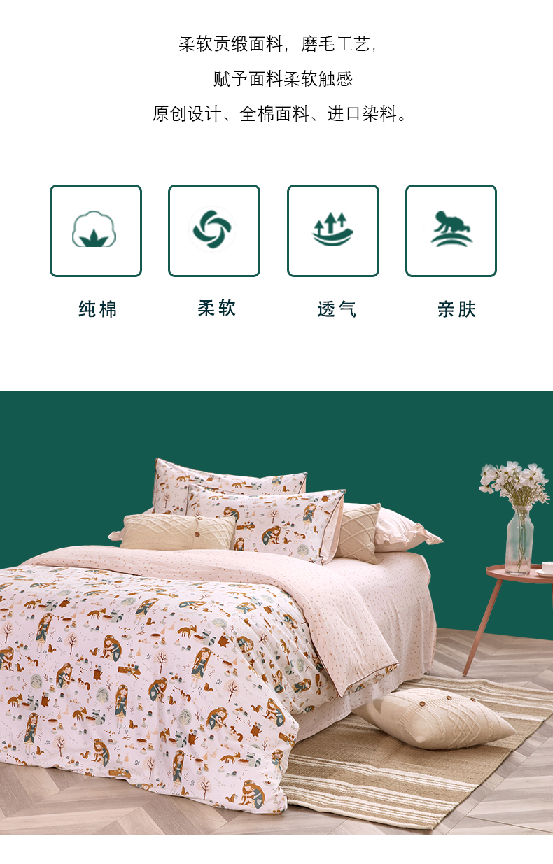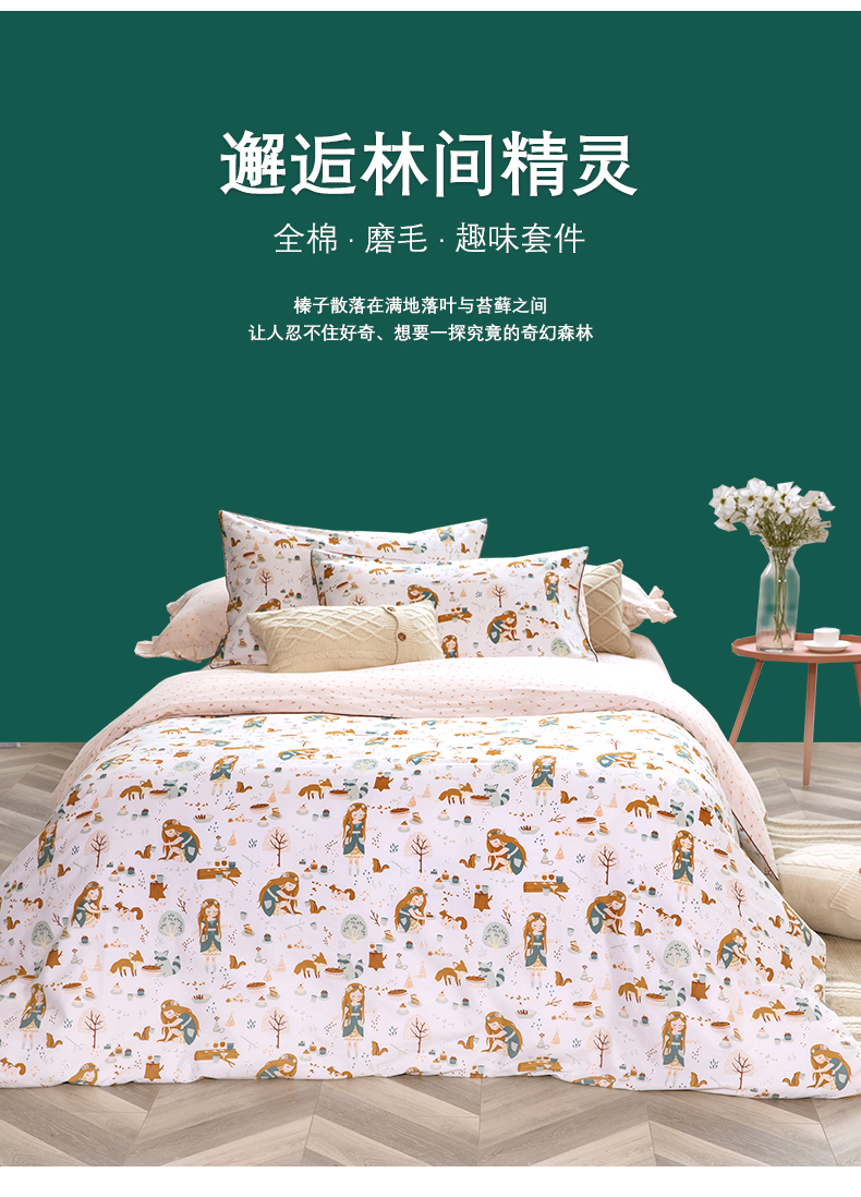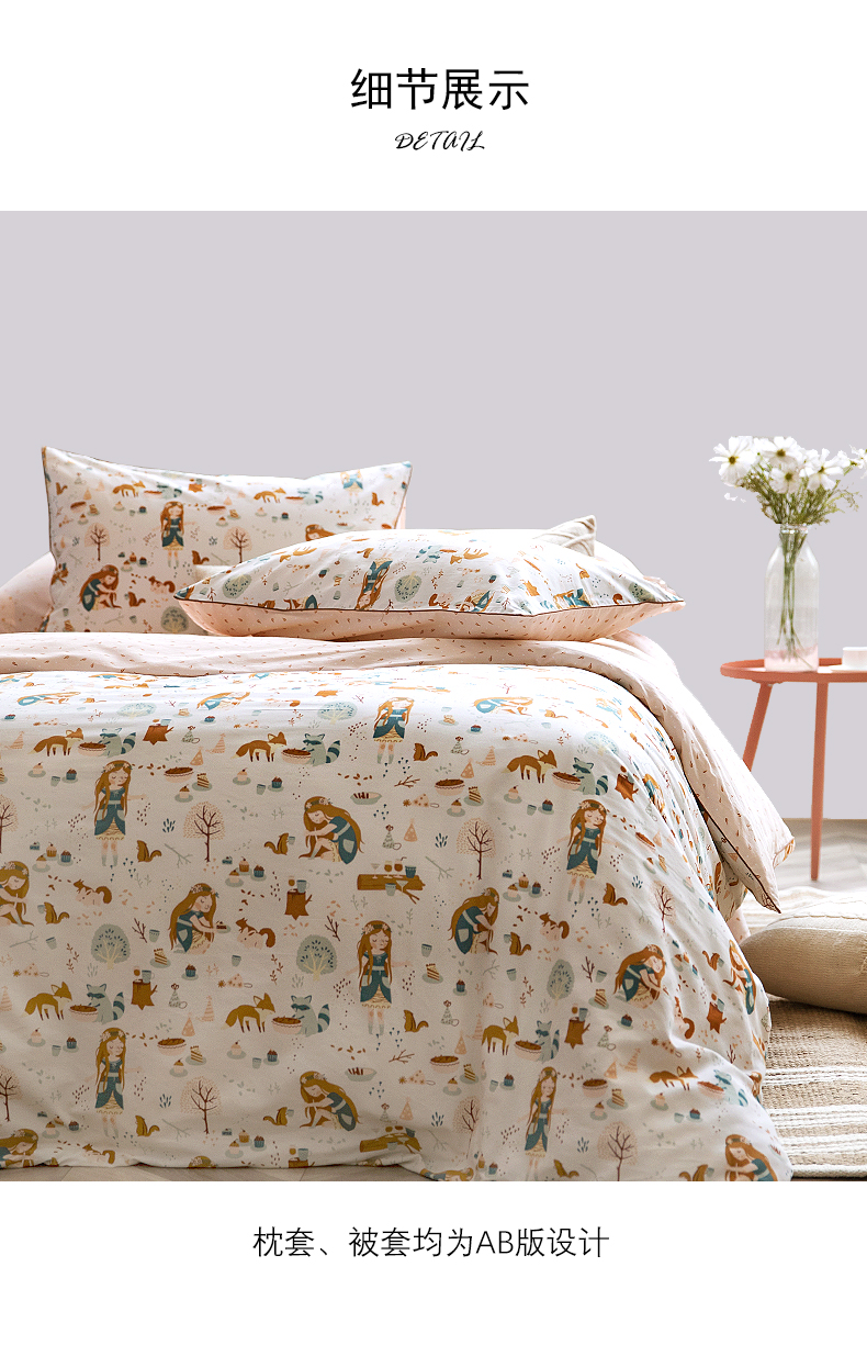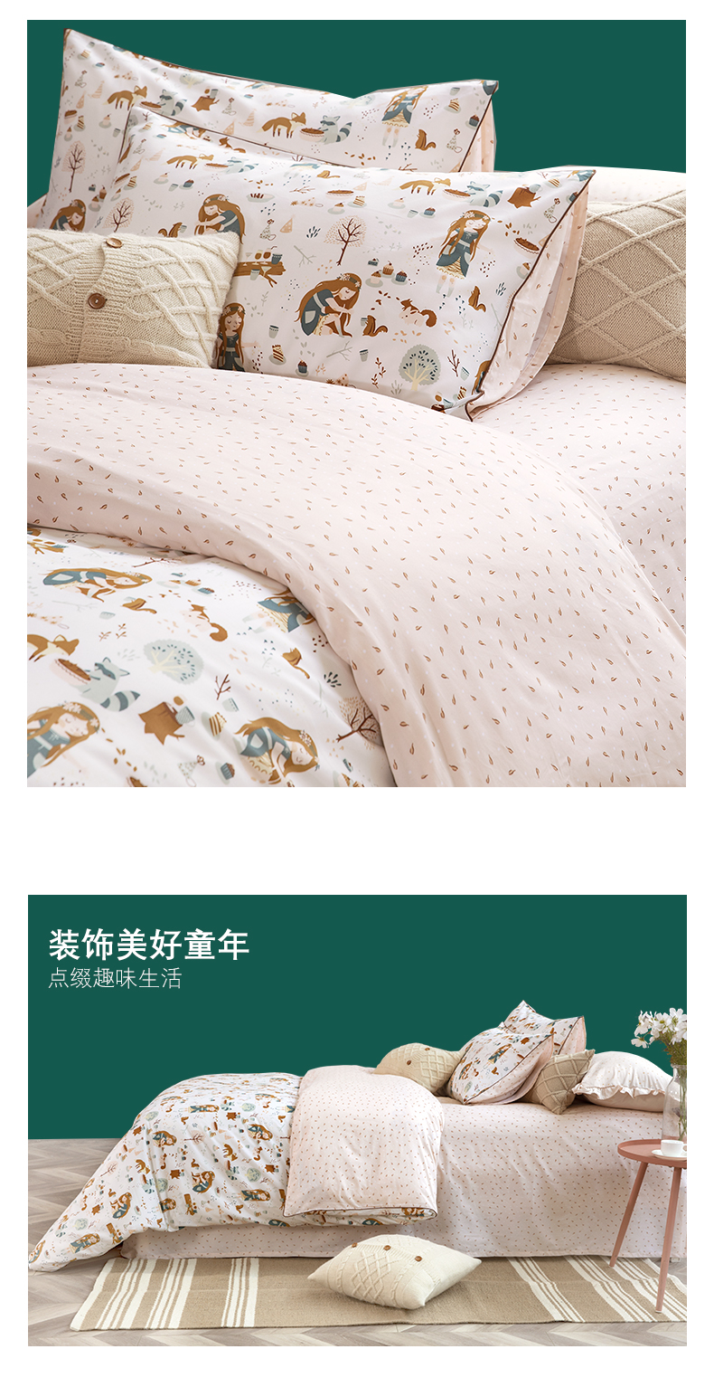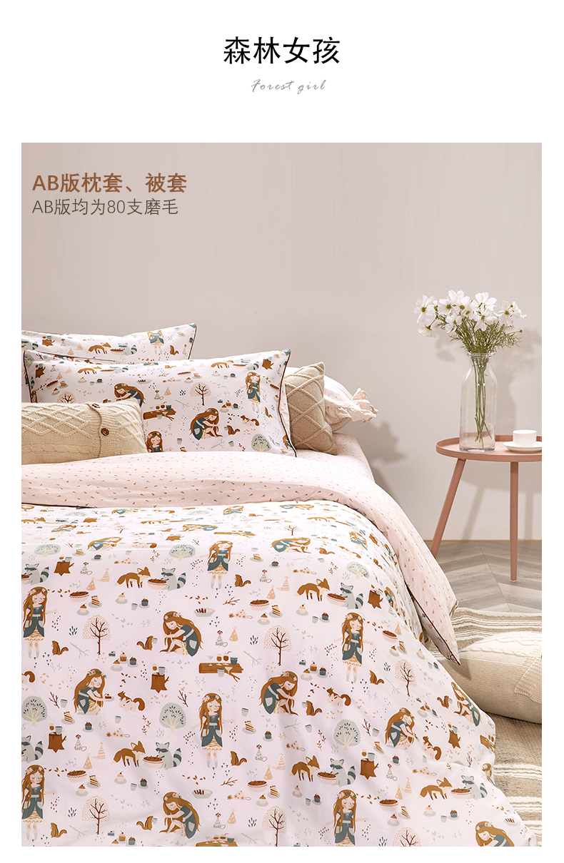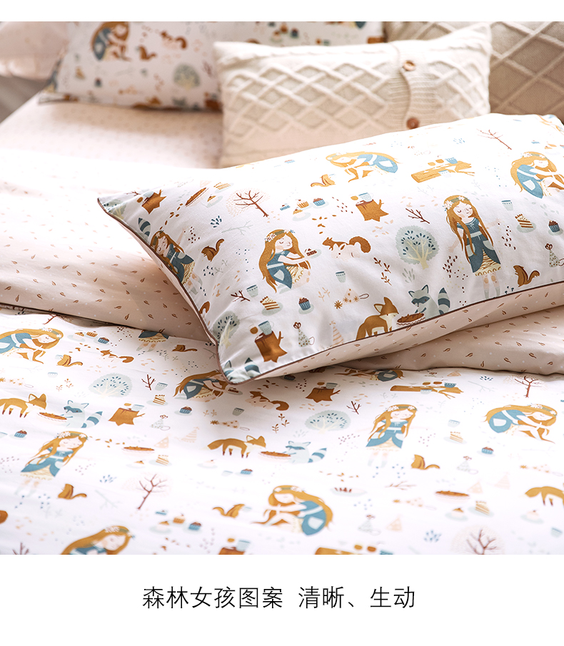 【代发】80支磨毛 欢乐峡谷 森林女孩 蓝铂儿童四件套纯棉(尺寸为被罩尺寸)