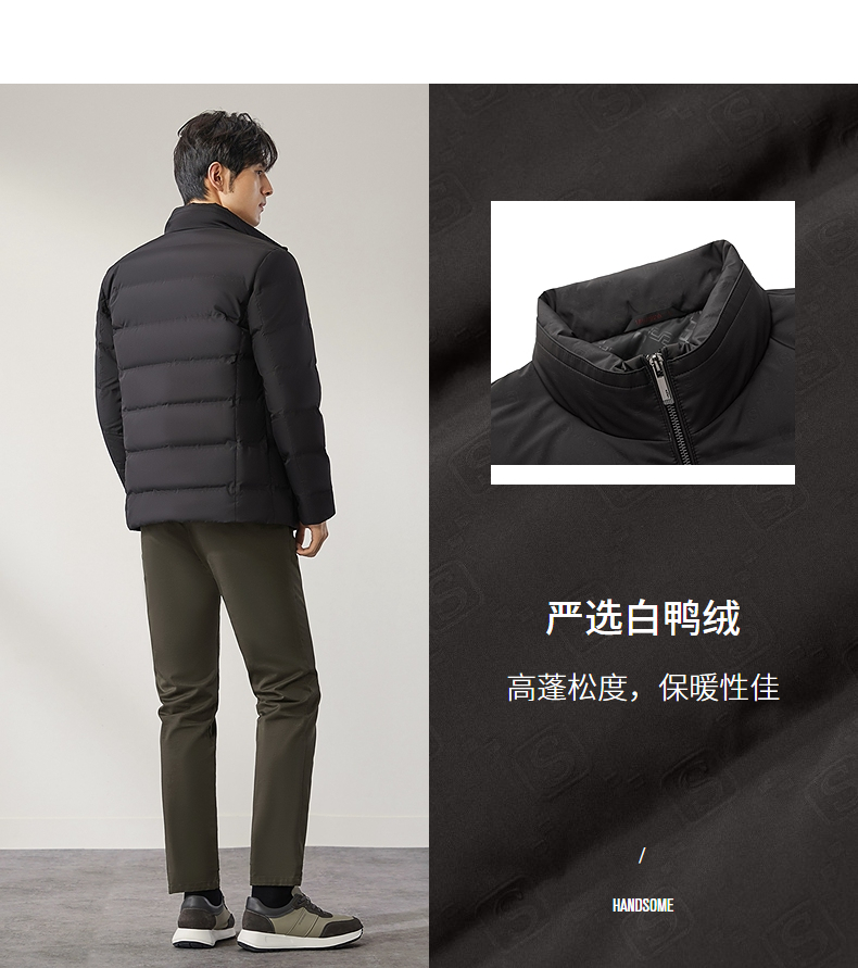 【白鸭绒】柒牌立领羽绒服男士2024冬季新款时尚休闲加厚保暖外套 127E70640