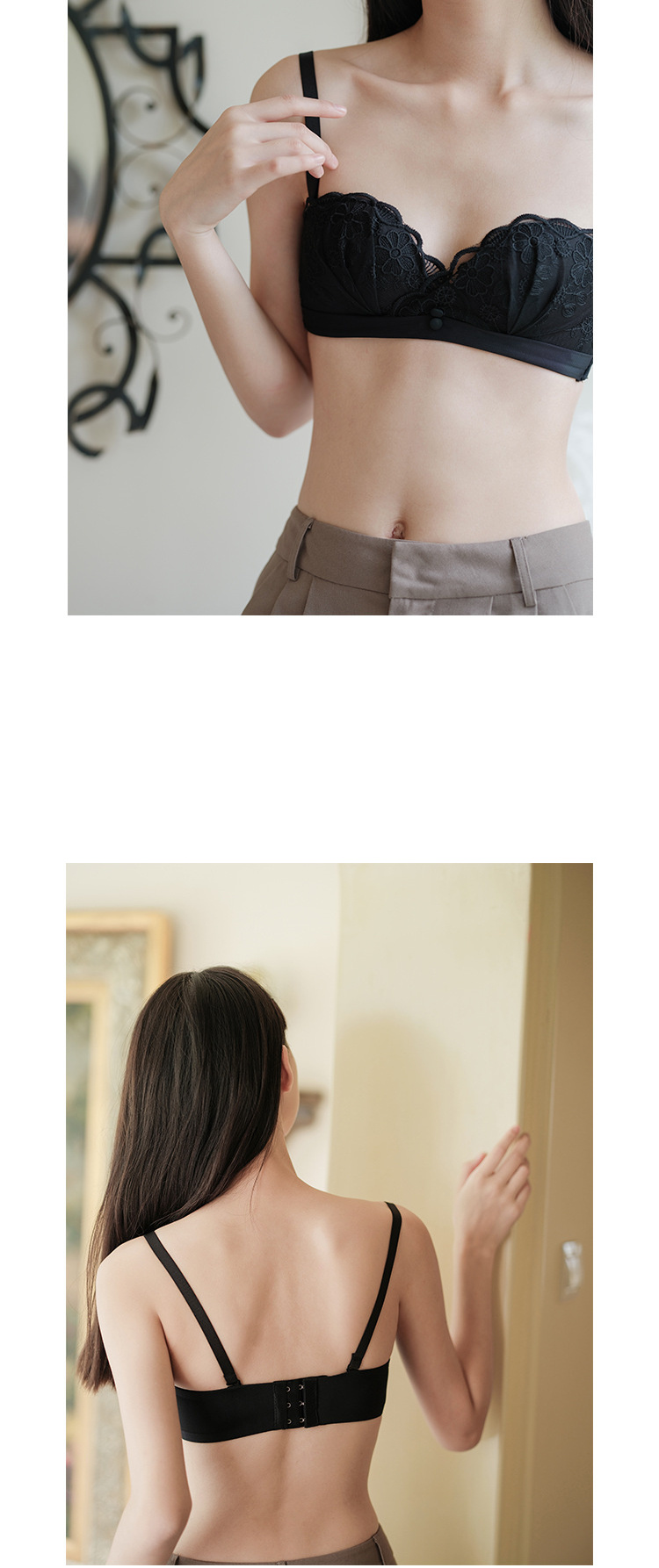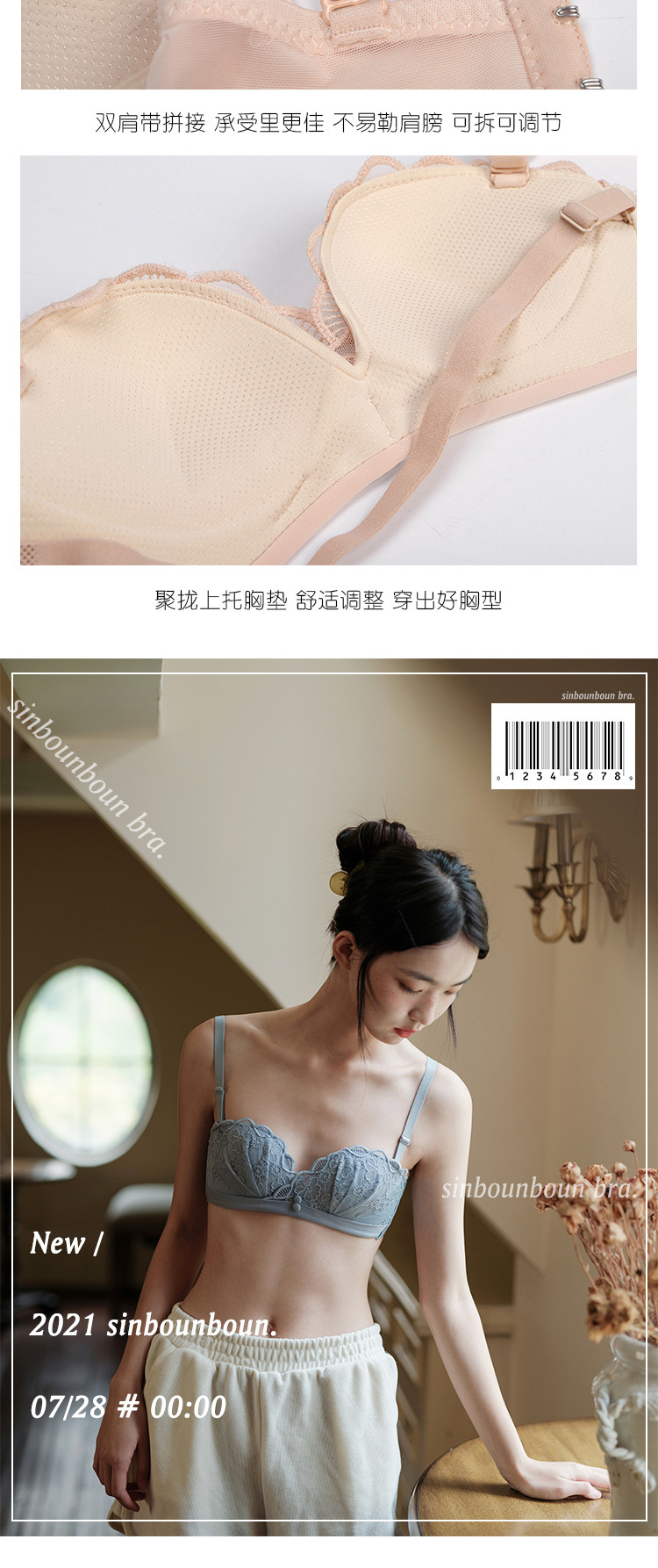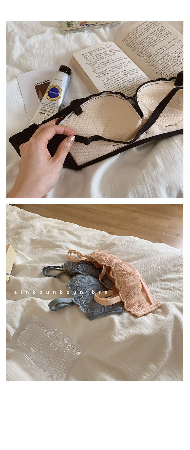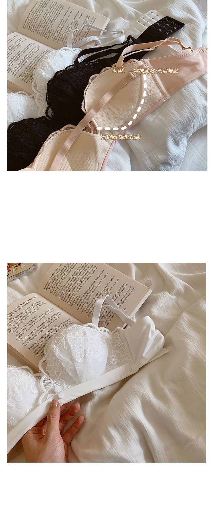 夏季蕾丝半杯内衣女薄款无肩带微聚拢无钢圈胸罩性感舒适透气文胸
