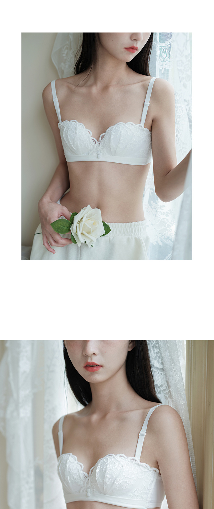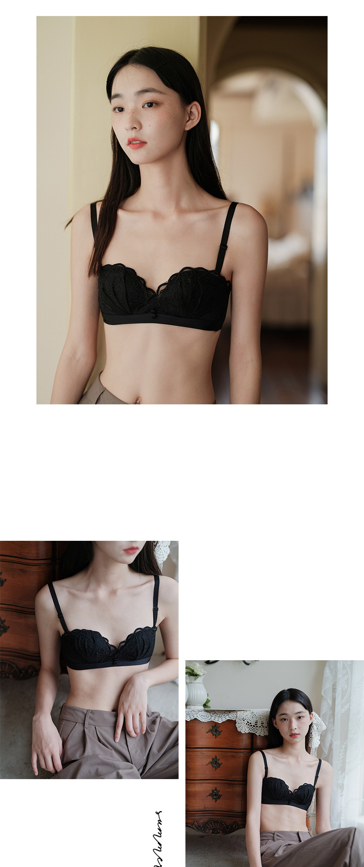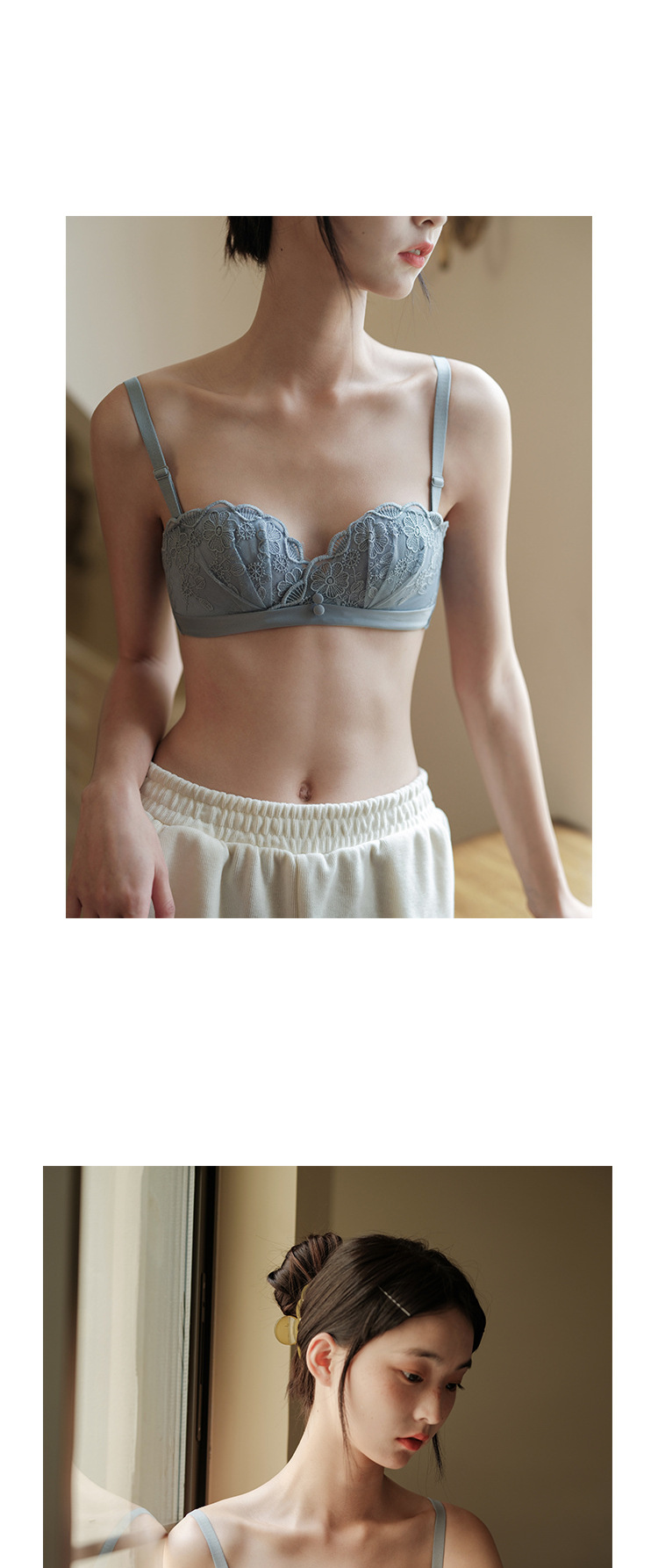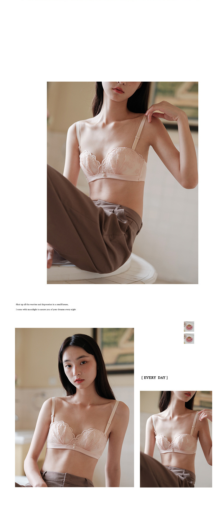夏季蕾丝半杯内衣女薄款无肩带微聚拢无钢圈胸罩性感舒适透气文胸