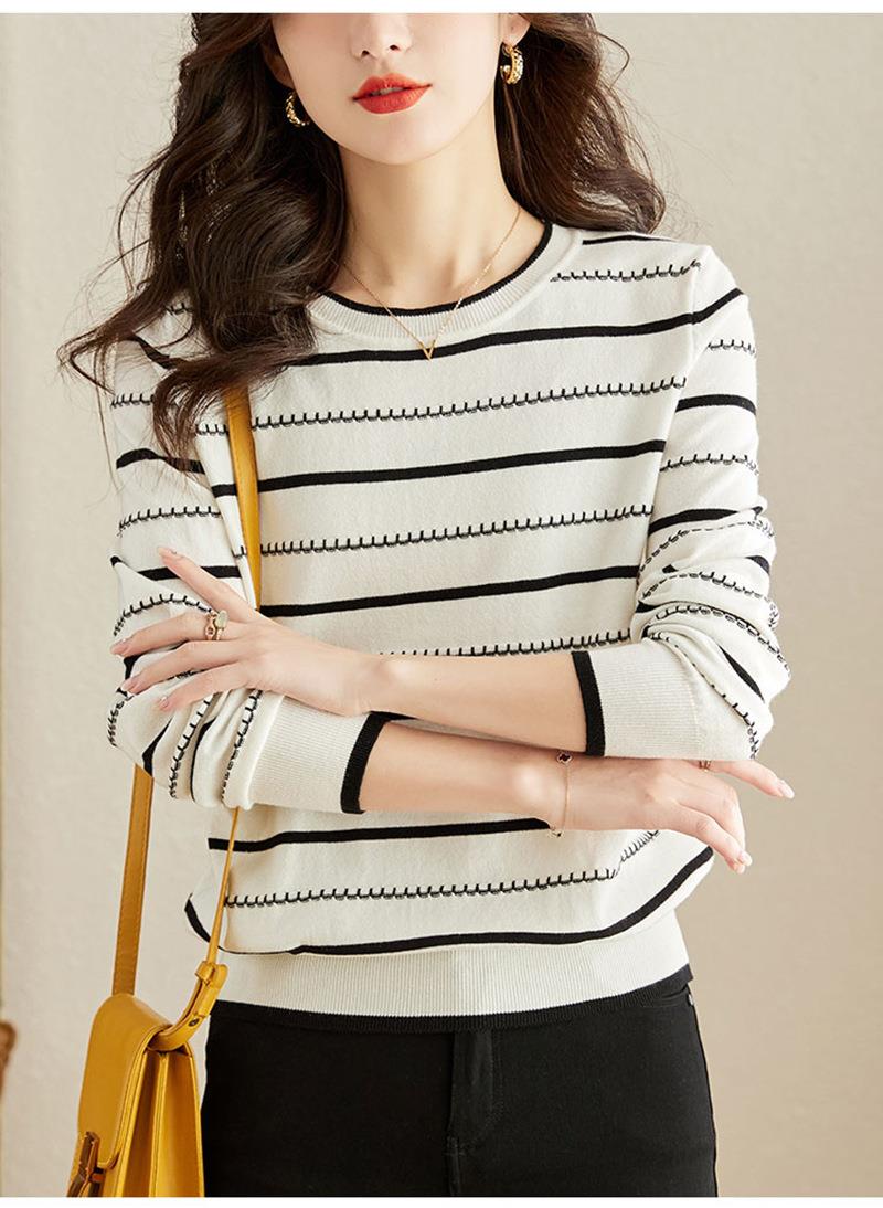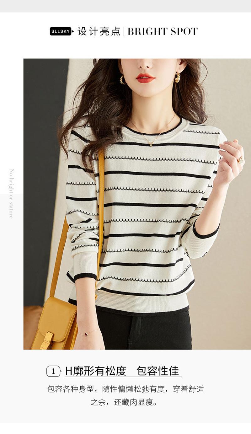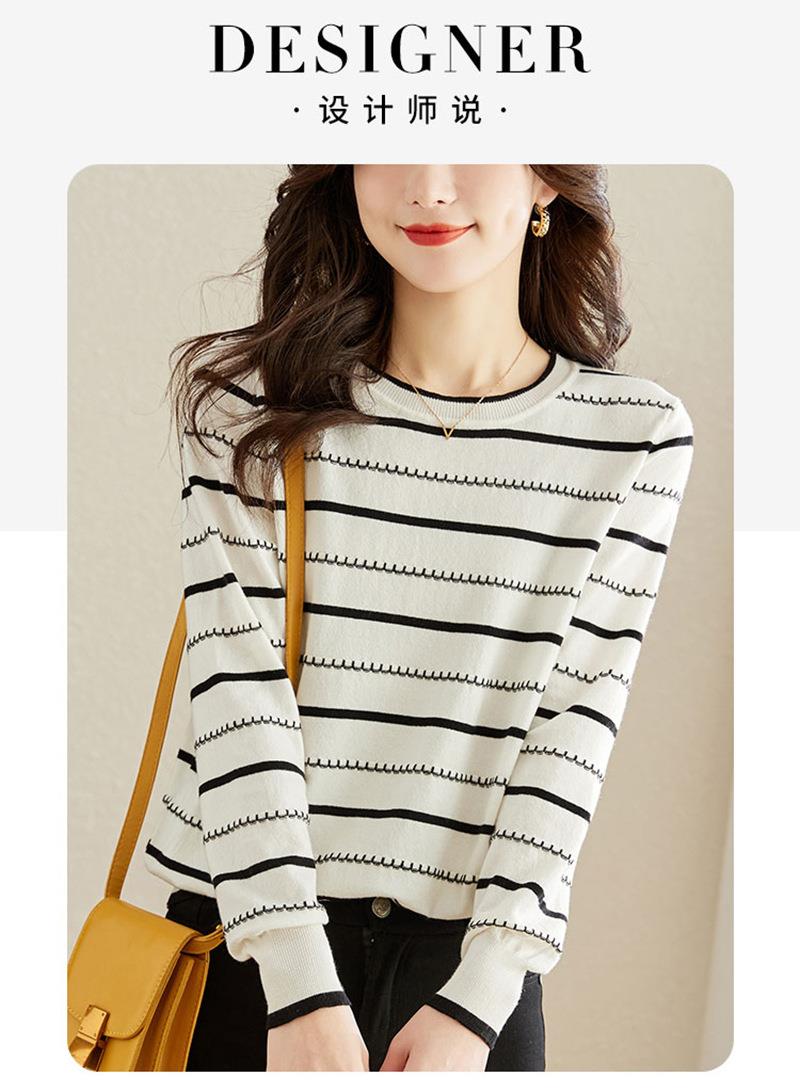 条纹针织衫女长袖春季2023新款洋气毛衣春秋打底衫宽松女人味上衣