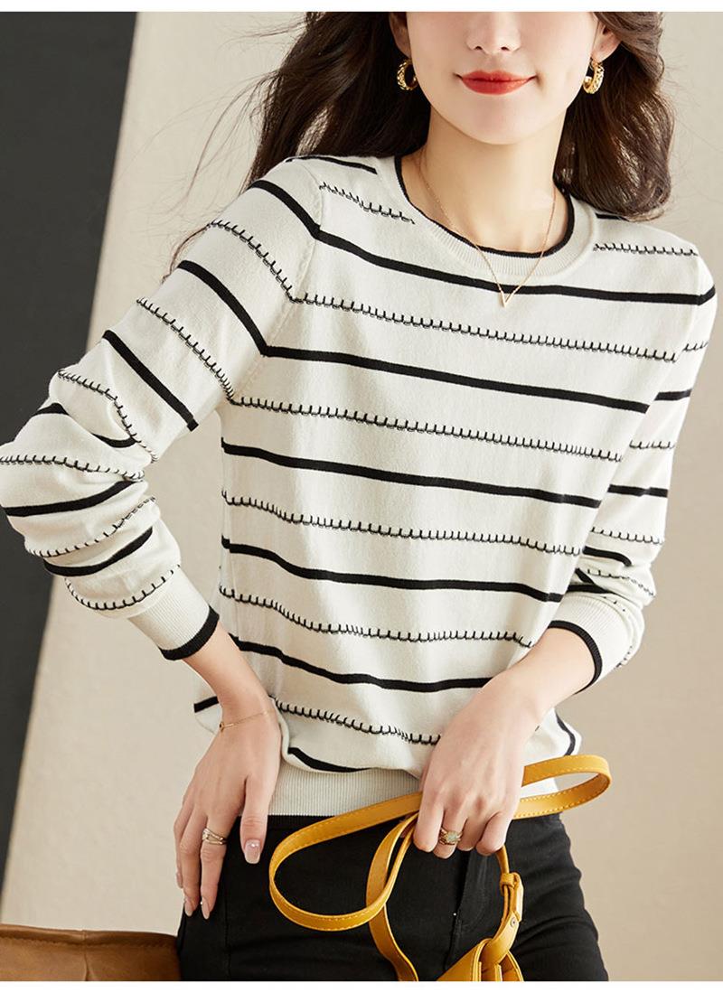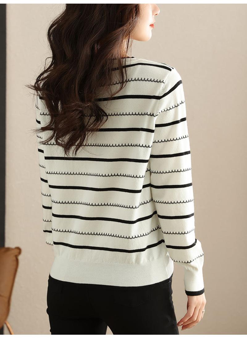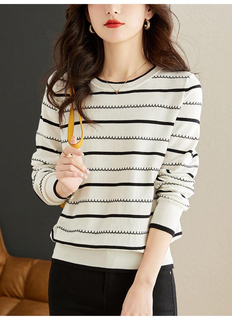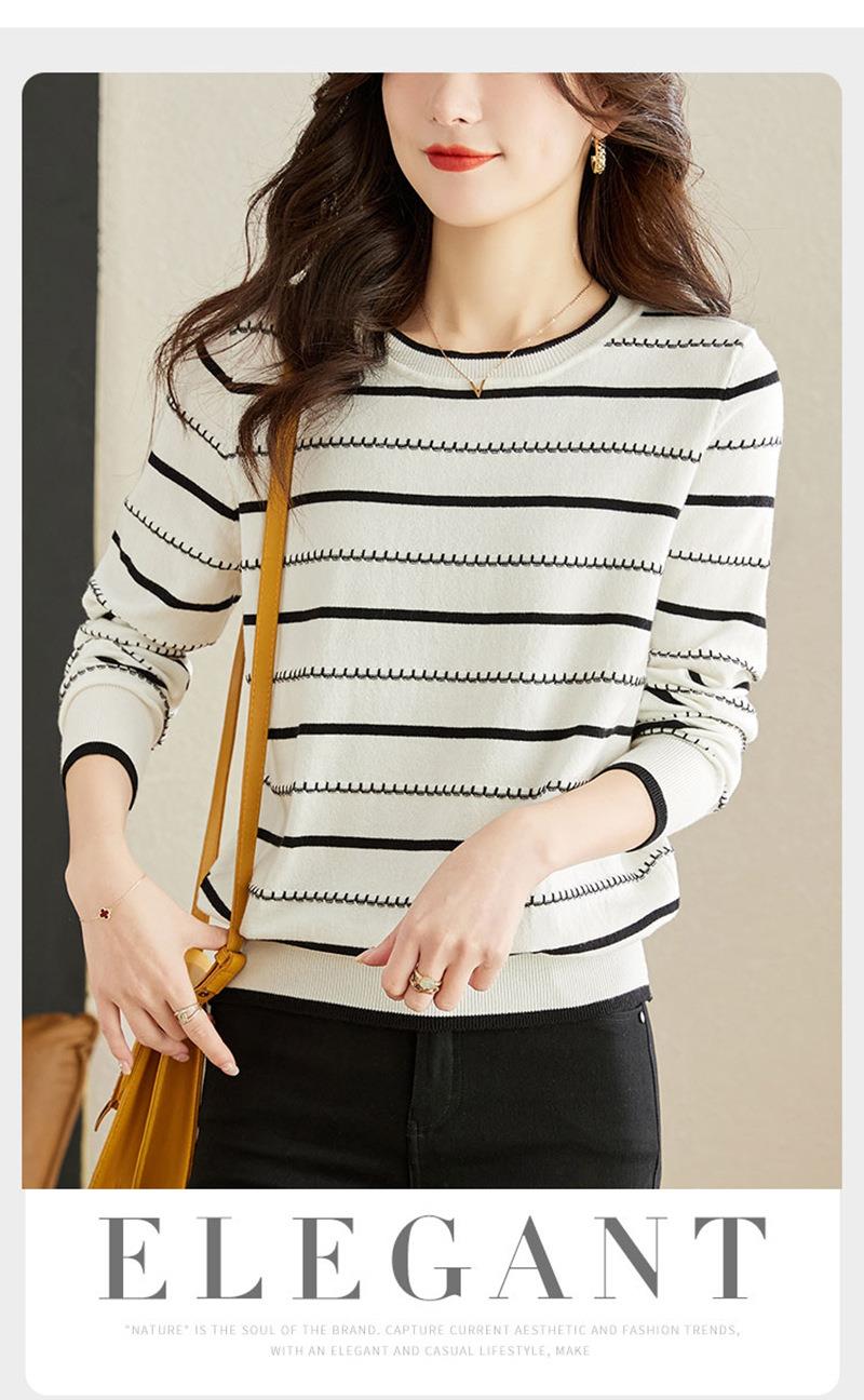 条纹针织衫女长袖春季2023新款洋气毛衣春秋打底衫宽松女人味上衣